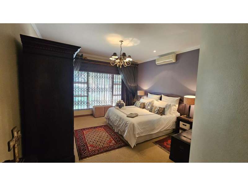 IMMACULATE PROPERTY WITH REMARKABLE ARCHITECTURE IN A HIGHLY DESIRABLE AREA!!! The property is situated close to all major shopping malls, filling stations, churches, schools and other amenities. Extras to this jewel are the following: 2 x Fire places (living area, main bedroom) 6 x Air conditioners (4 x bedrooms, living area, patio) Water tank with pressure pump Build-in Generator Pool Pump Room 3 x bathrooms have infra heating All curtains and blinds are included in the price DON'T MISS OUT ON THIS EXQUISITE PROPERTY - CALL ME TODAY FOR A VIEWING APPOINTMENT!!