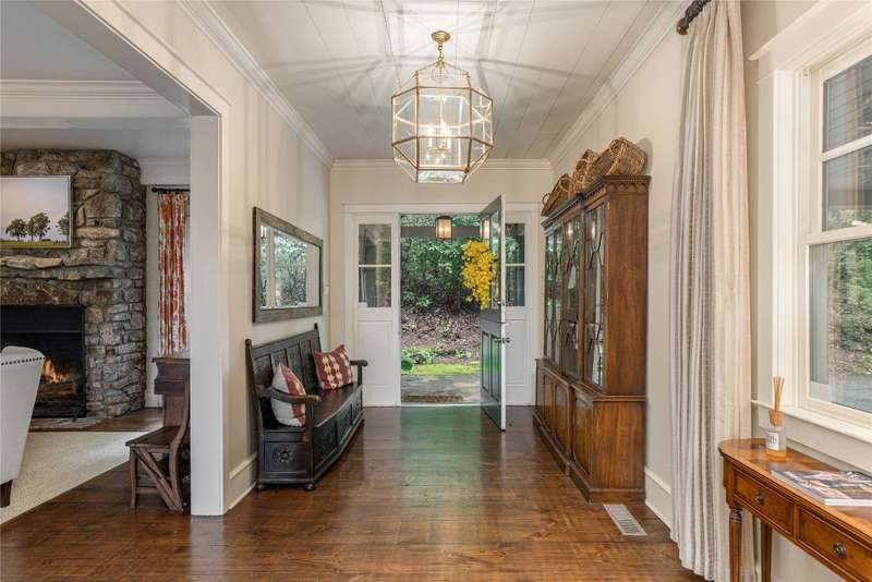 Nestled in the coveted Chattooga Club, one of the most sought-after communities, this delightful, fully furnished home (with few exceptions) combines charm, comfort, and stunning mountain views. Ideally located five minutes from the vibrant town of Cashiers - with its shops, restaurants, brewery, and picturesque Village Green - this property offers the perfect blend of privacy and convenience. Designed with spaciousness and comfort in mind, this home boasts multiple ensuite bedrooms, ensuring privacy and relaxation for family and guests. The inviting great room features soaring ceilings, a beautiful stone fireplace with a gas starter, and an open-concept design that flows seamlessly into the dining area - ideal for intimate gatherings and larger entertaining. The galley kitchen, a dream for the home chef, is complemented by a covered porch with its own wood-burning fireplace, perfect for year-round enjoyment. The primary suite is a true sanctuary, offering a private sitting area with built-in bookcases, a luxurious bathroom with a garden tub, a separate shower, dual vanities, and a spacious walk-in closet. Upstairs, additional sitting areas, a media room/study, and generously sized guest rooms with their own ensuite bathrooms ensure comfort and privacy for all. Step outside to take in the breathtaking views of Rock Mountain and Chimney Top, two of Cashiers' most iconic vistas. The expansive deck and covered porch provide the ideal setting to unwind and savor the beauty of the home's surroundings. The property is beautifully landscaped, with a moss garden adding to the serene and tranquil atmosphere. Additional features include a circular driveway, a porte cochere, ample guest parking, and a generator for added peace of mind. The home's cedar shake siding and stone accents create a welcoming curb appeal, while the interior boasts hardwood floors, generous closet space, and plenty of storage. As an invited member of Chattooga Club, enjoy a wealth of amenities, including fine dining, croquet, tennis, pickleball, bocce ball, a putting green, spa treatments, and a heated saline pool with a covered pavilion. Families can take advantage of children's play areas, and members can relax at Mac's View scenic overlook and the Victory residential garden. This exceptional home offers the perfect combination of privacy, space, and mountain living - minutes from Cashiers.