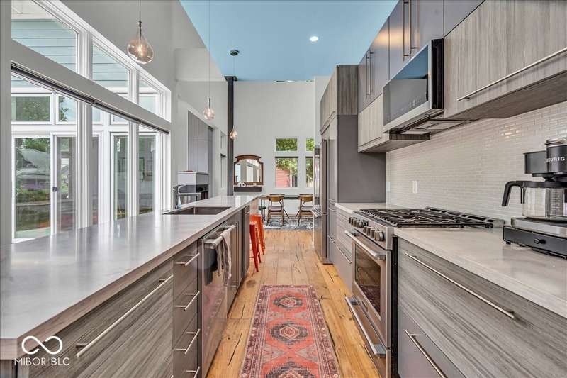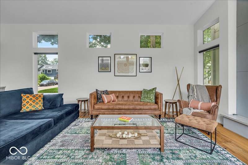 Welcome home to this beautifully furnished, newer construction residence, walkable in minutes to the renowned BOTTLEWORKS and FACTORY ARTS DISTRICTS of Indianapolis! Sojourn to 8th Day Distillery, Centerpoint Brewing, Sidedoor Bagel, the Bottleworks Hotel, the Garage Food Hall, Modita and more, within steps of your sweet front porch. This truly impressive home COMES FULLY FURNISHED and boasts an open-concept floor plan with sleek finishes, soaring ceilings and streams of natural light. Well-appointed chef's kitchen is complete with stainless steel appliances, sparkling countertops and a large island perfect for entertaining. Convenient main floor auxiliary bedroom offers plenty of space for family, guests or even a home office. Upstairs, the primary suite is a true retreat, boasting a generous sitting area and spa-like ensuite bath. Lower level is perfect for movie nights and gaming and hosts a third bedroom for ultimate versatility. Outside, enjoy ample space to relax with friends under the stars around the cozy gas firepit. Tandem 2-car garage provides room for all your toys. With its unbeatable location, you'll have effortless access to gourmet restaurants, local indie shops and enthralling entertainment. Don't miss out on the opportunity to call this contemporary gem your new home!