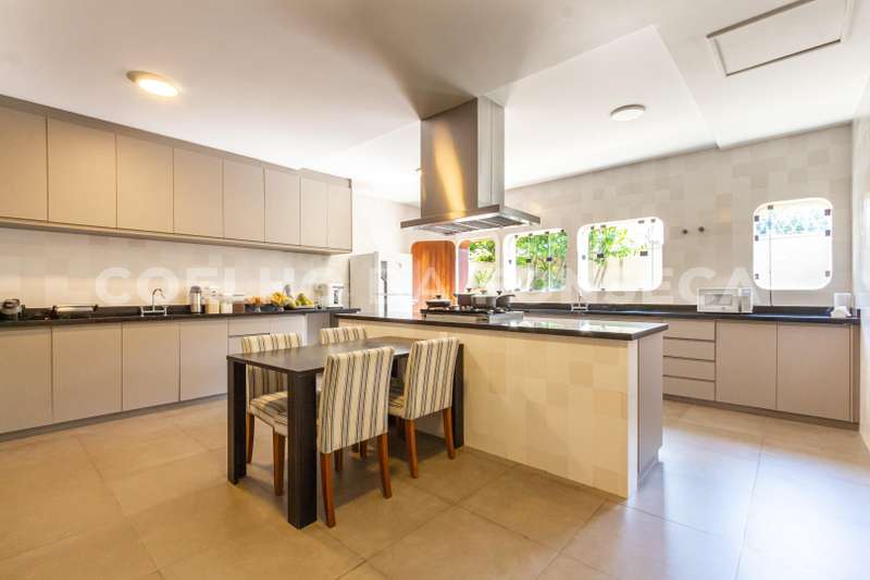 Linda casa com seu living muito amplo e iluminado. Sua cozinha é extremamente ampla. Suas 4 suítes com porta balcão e varanda. Na parte de lazer, vc conta com sala de TV, 1 suíte de hóspede, salão de jogos e sauna.....além de um espaço gourmet completo integrado a hidrtomassagem, jardim e piscina externa.