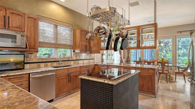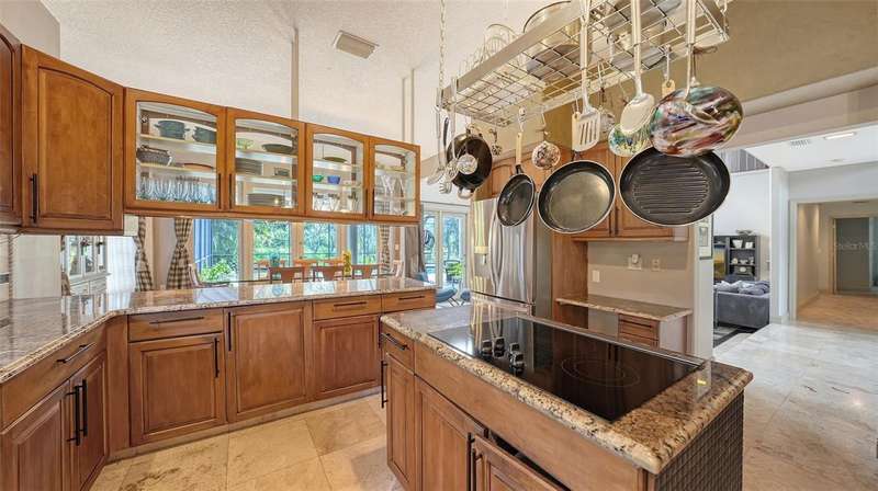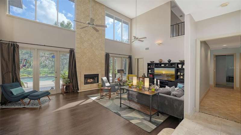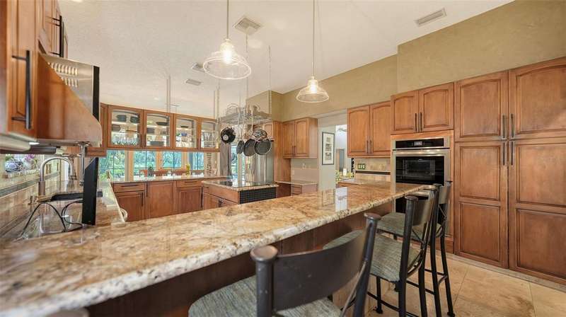 Unique, first time on the market home with private lot - 1.34 acres. Located in River Club (no CDD), this home is just waiting for its next owner to make it theirs. Home was custom built with over 4,0000 sq ft, 4 bedrooms, 3 1/2 half baths, large great room, office, dining room, bonus room, storage room, 3 car garage and large lanai with pool. The upstairs master bedroom retreat has two walk-in closets with built-ins and private deck that was stained and rescreened in 2023. Large Master bathroom with lime stone flooring and two new sinks. Also, upstairs is a bonus room with Brizan Hickory Engineered Hardwood flooring and large storage room. Downstairs there are three other bedrooms. Bedroom two and three has a Jack-n-Jill bathroom, Bedroom four has an en-suite bathroom. All three bedrooms downstairs have new ceiling fans. Kitchen offers travertine flooring, Newer Stainless-Steel appliances, granite counter tops, double oven, and island with range. Great room has Brizan Hickory Engineered Hardwood flooring, wood burning fireplace, and wet bar with newer refrigerator. Laundry room comes with LG washer/dryer, sink and plenty of cabinets and closet. House also offers central vacuum, on demand whole house hot water, hook-up in garage for gas generator, and large lanai with salt water pool that was rescreened in 2023. Ages: water heater 2020, one 3-ton 15 seer AC 6/2024, two 2-ton 14 seer ACs 12/2019, and roof 4/2019.