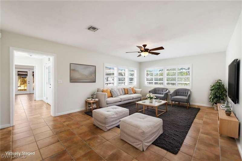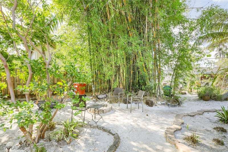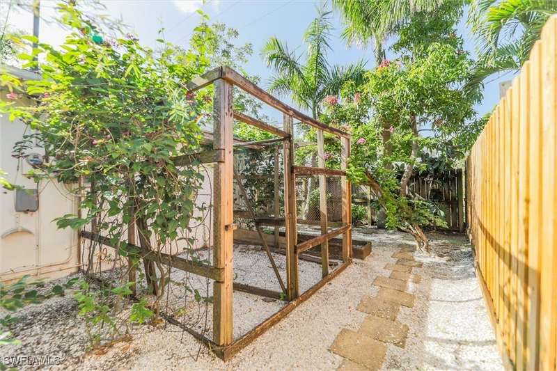 This charming home is in the heart of it all! Nestled just off iconic McGregor Blvd and backing up to the 13th hole of Fort Myers Country Club, this well-loved home puts you in one of the most walkable, bike-friendly neighborhoods in the city. Zoned for Allen Park Elementary and Fort Myers High, and just minutes to downtown and the Edison Ford Estates, the location is unbeatable. Inside, the split floor plan offers privacy and functionality, making it perfect for shared living or accommodating guests. Plantation shutters, mature tropical landscaping (including a stunning bamboo grove), and multiple pergola-covered seating areas create a peaceful, private retreat. Out back, you'll find a private patio, storage shed, chicken coop - yes, you can have fresh eggs daily! There's even room for a pool if you're looking to add your own splash of luxury. Whether it's Halloween trick-or-treating, Fourth of July fireworks, or holiday lights, this neighborhood shines year-round with friendly neighbors, dog parks, and sidewalk-lined streets. Move in before the holidays and discover why Maravilla Ave is one of Fort Myers' best-kept secrets.