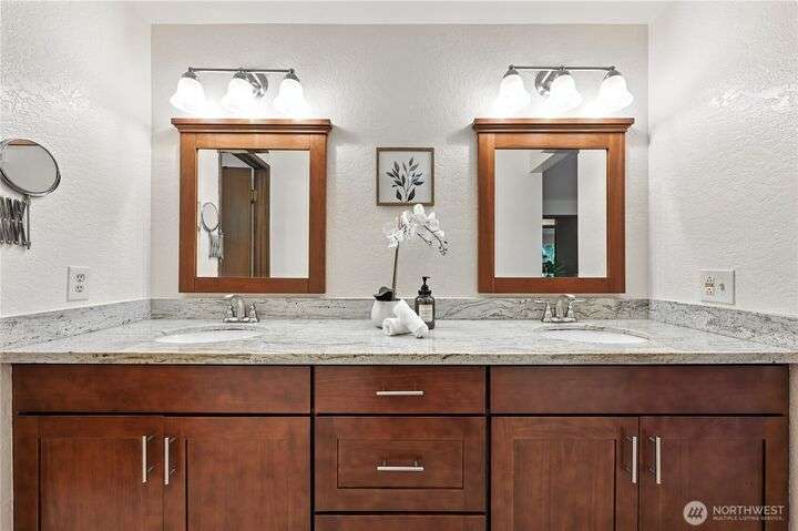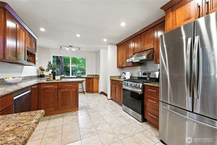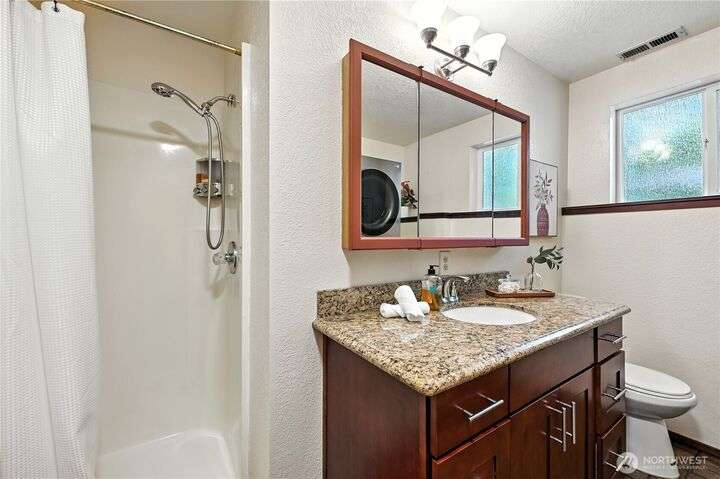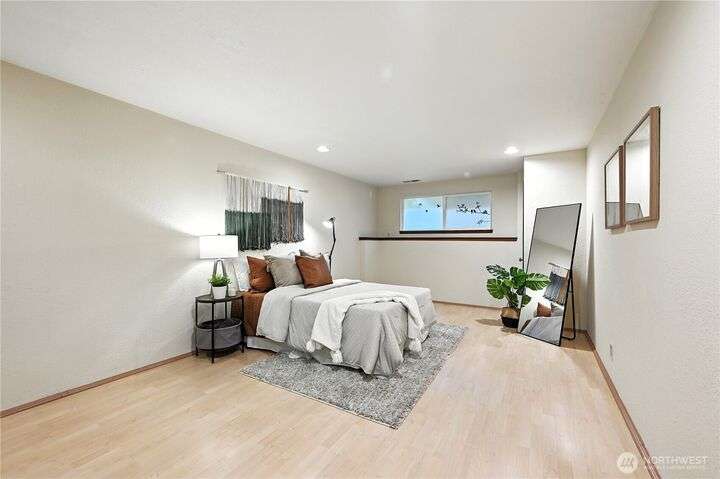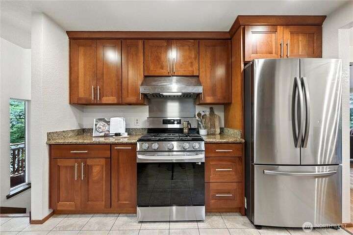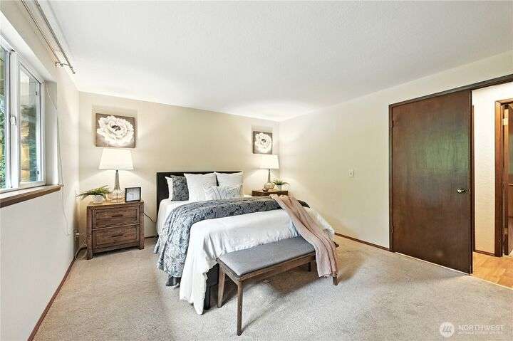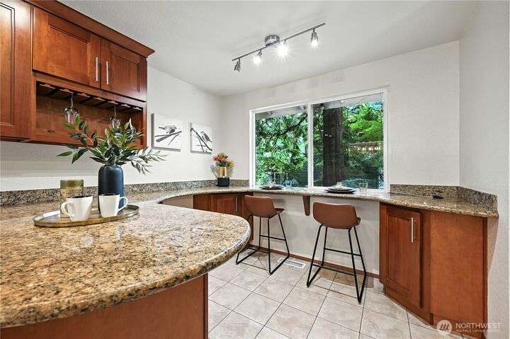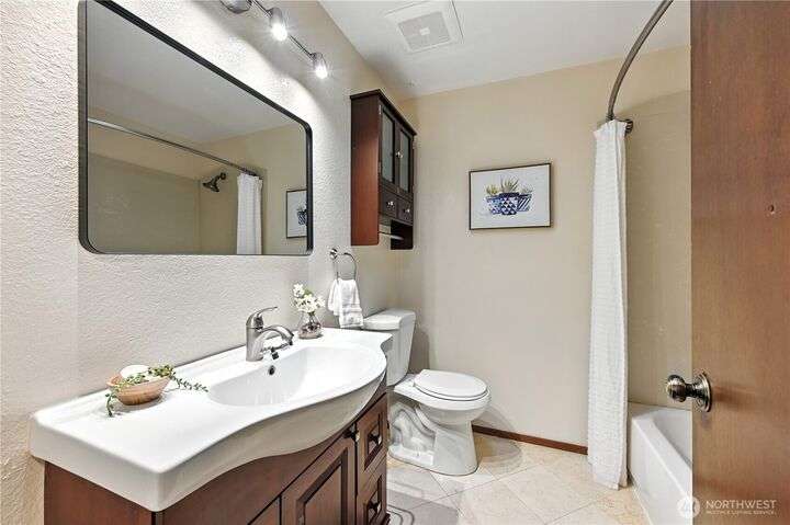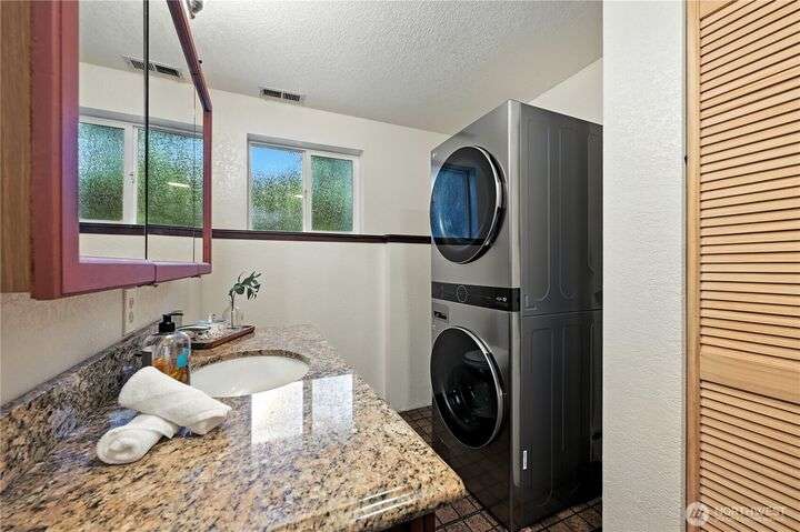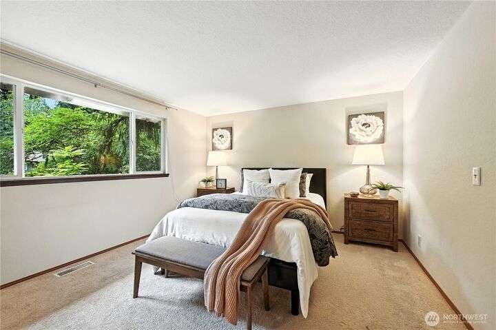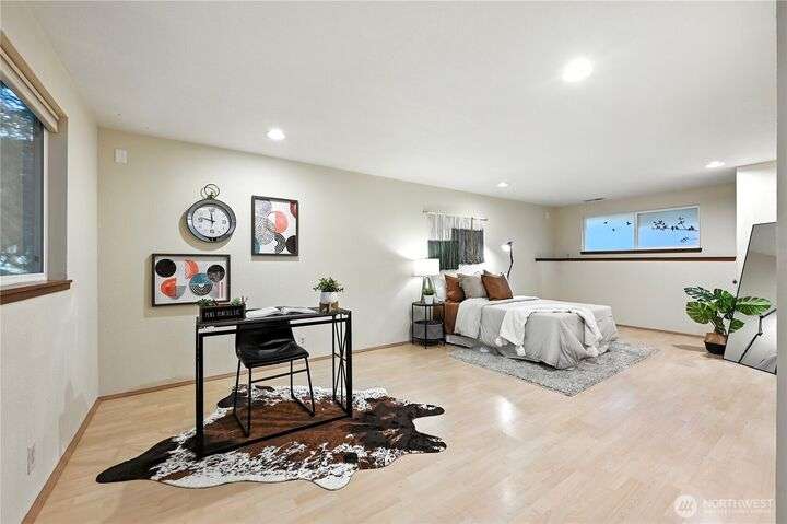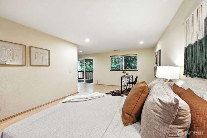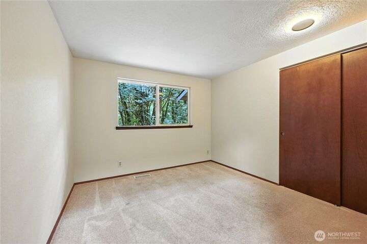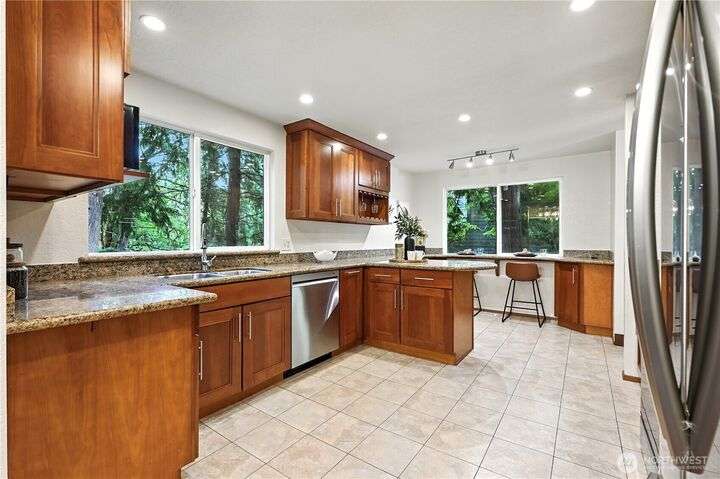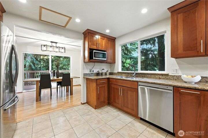 Perched above a wooded expanse, this Lake Forest Park sanctuary feels like a modern treehouse—where forest views, birdsong, and soothing sounds from McAleer Creek invite daily connection with nature. Vaulted ceilings and light-filled spaces offer peace and perspective. Chef’s kitchen w/granite counters NEW stainless appliances. Primary suite w/walk-in closet. Two more bedrooms & full bath on main. Finished daylight basement w/family/4th bedroom, wood stove, ¾ bath, new LG washer/dryer. New gas furnace, New tankless water heater, ERV ventilators, R-30 insulation. Garden space modernized shed & attached 2-car garage, near the LFP Town Center, Metro-Access. Lake WA beach rights via LFP Civic Club. Highly regarded Shoreline SD. Pre-Inspected!