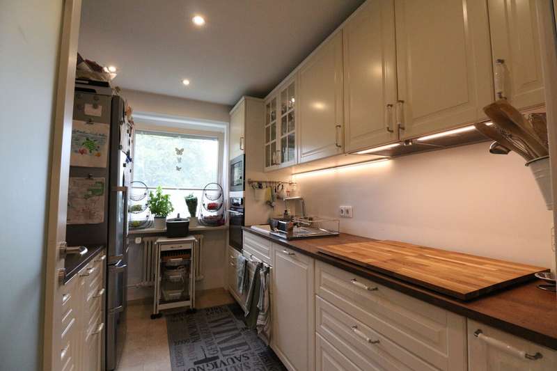 This attractively designed, high-quality condominium on the 1st floor is located in a well-kept 9-party multi-family house built in 1977, which is characterized by a special degree of modernization. With a living space of approx. 86.23 m², this property offers a total of 4 well-designed rooms with a variety of uses for couples, families or people looking for additional space for work or hobbies. The apartment has been rented since 01.05.2023. The monthly basic rent is 1,625.00 euros + 10 euros for the outside parking space, plus ancillary costs of approx. 200.00 euros. The unit is therefore suitable for interested parties looking for a solid rented property for long-term asset protection or owner-occupiers. The apartment was completely modernized in 2015 as part of a core refurbishment. The entire electrical system and all water pipes were replaced. The result is bright rooms and a contemporary ambience characterized by high-quality furnishings. The open-plan living and dining area as well as the bedrooms boast real wood parquet flooring, which creates a pleasant living atmosphere and harmoniously complements the large-format natural stone floors. Large windows let in plenty of natural light, creating a friendly and inviting atmosphere. As part of the renovation in 2015, all windows were replaced with triple-glazed plastic windows with electric shutters. The separate kitchen offers space for modern fittings and plenty of storage space. In addition to the spacious living room, there are three bedrooms that can be used individually as bedrooms, guest rooms or studies. Particularly noteworthy is the bathroom, which - like the guest WC - has been fitted with high-quality natural stone floors and walls. Here you will find both a bathtub and a separate shower to ensure comfort in everyday life. The modern central heating system based on geothermal energy, which was installed in 2023, ensures pleasant temperatures all year round. Hot water is also supplied by an efficient solar thermal system, which was also replaced in 2023. This not only contributes to a high level of living comfort, but also to the energy efficiency of the property. External facade insulation and a flat roof renovation were carried out in 2010. The house is in a well-kept condition and is continuously maintained. A small, well-kept communal garden is available to residents in front of the house. The location in the immediate vicinity of the Bürgerpark recreational area in Ismaning is particularly attractive, with its extensive green spaces, walking and cycle paths, inviting you to spend relaxing hours outdoors and further enhancing the quality of living. Anyone looking for a stylishly designed, well-kept and modernized apartment with high-quality fixtures and fittings in a pleasant location will find an attractive offer here. We would be happy to show you this property in more detail during a personal viewing. We look forward to hearing from you.