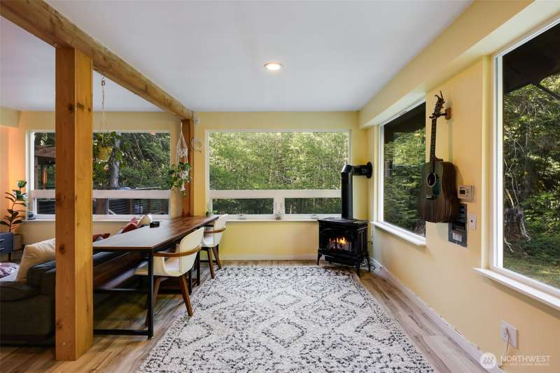 Perfect Gateway to getaway! Equipped & fully furnished ready for you to move in! Surrounded by captivating scenery On a double lot, the property offers a sanctuary for relaxation or spend your days hiking and exploring. Spacious upper loft/bedroom for guests, office or craft area.The expansive deck, gracefully and privately nestled among the trees, with outstanding views is a tranquil escape from the everyday hustle. With a reliable solar power system, propane fireplace & a brand-new backup generator, you can rest easy knowing you'll never be left in the dark or cold. All furnishings included with sale. Situated in a gated community, you'll find the balance and the serene solitude you crave. Ideal Investment, personal use or both.