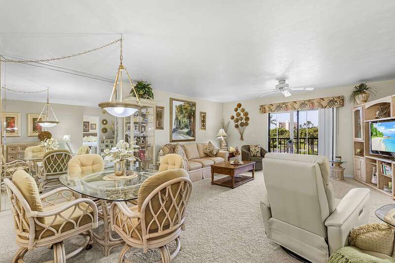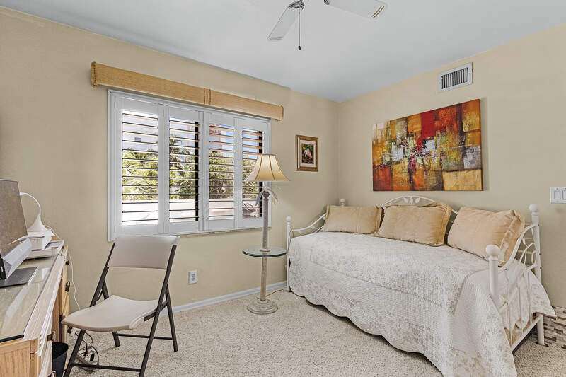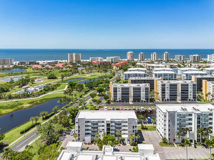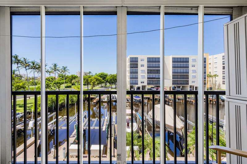 2 bed/2 bath condo in Casa Marina! Wonderful unobstructed views of the canal and EBIA walking path. This light and bright condo features a spacious living room with open dining room. There are 2 separate lanai's with metal shutters. The primary bedroom has a large walk-in closet and en-suite as well as private lanai and laundry room with new washer and dryer. The split 2nd bedroom and bathroom is perfect for privacy for guests. Enjoy morning coffee or an evening beverage watching the dolphins and manatees swim and play right from the comfort of this condo. Gulf facing making evening sunsets a delight. Under building parking and secure foyer for added security. Casa Marina is pet friendly. Community pool and EBIA amenities include: Deeded Beach Access, Beach Parking, Tennis, Pickleball, Bocce Ball, Walking Paths, Chipping Greens, Driving Range and Fishing Pier, Boat slips available for purchase or lease for Bay Beach owners. Located on the South end of Fort Myers Beach close to restaurants, shopping, lovers key state park and a quick drive to Bonita, Naples and RSW Airport.