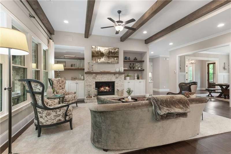 Dreaming of your own tennis court, basketball court, or just room to roam? This gorgeous Milton modern farmhouse sits on 3.3 acres at the end of a quiet cul-de-sac. Inside, soaring wood beams, a wall of windows, and custom built-ins frame the fireside family room. The bright, open kitchen wows with quartz counters, custom cabinetry, and a walk-in pantry. Around the corner, theres a spacious drop zoneperfect for keeping life organized, with a cubby for everyone! Upstairs offers the ultimate layoutthree ensuite bedrooms, a media room, and a dreamy primary suite that feels like a retreat, complete with a spa bath and custom closet. Step outside to a covered deck with fireplace, tongue & groove ceiling, and an in ground firepit perfect for smores. All-brick exterior, cedar columns, and unbeatable locationjust 2 miles to dining, shopping, and top schools. You couldnt build this home today at this pricedont let it slip away.