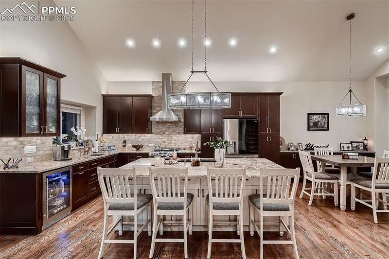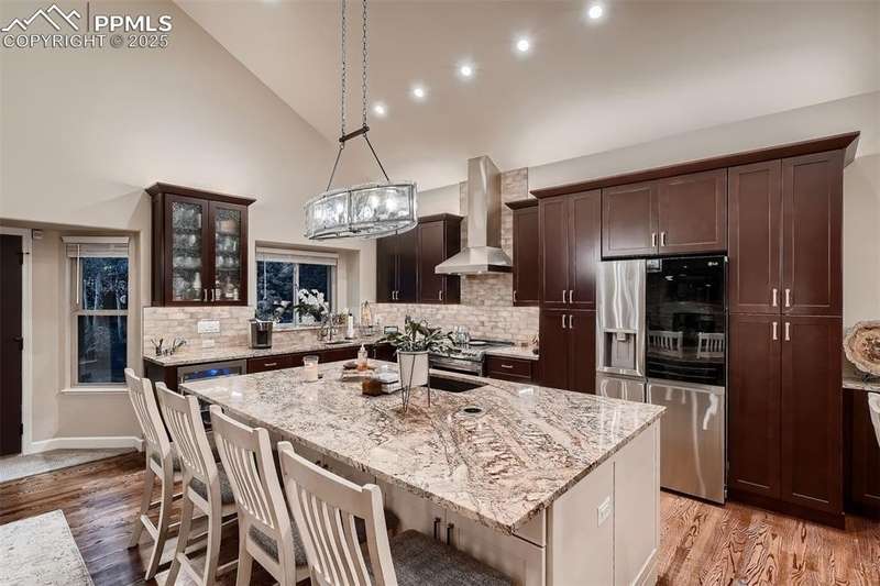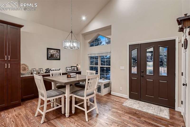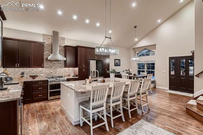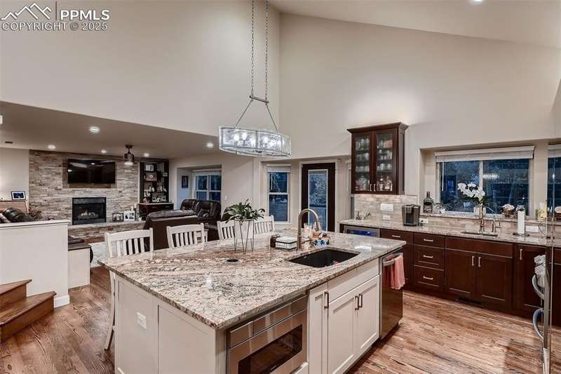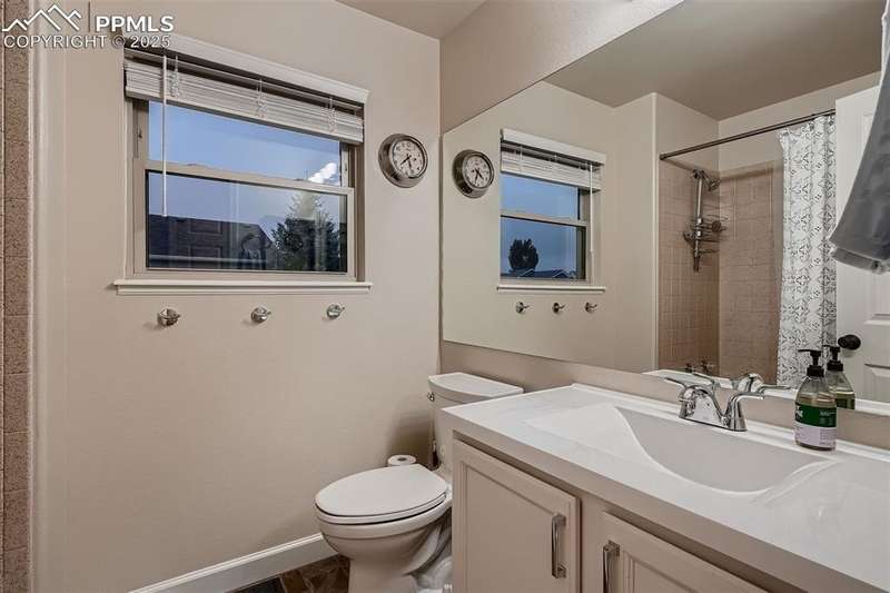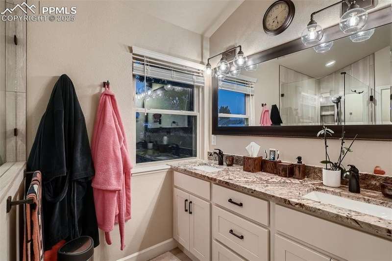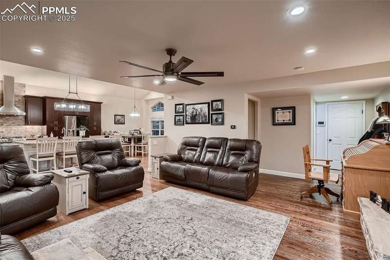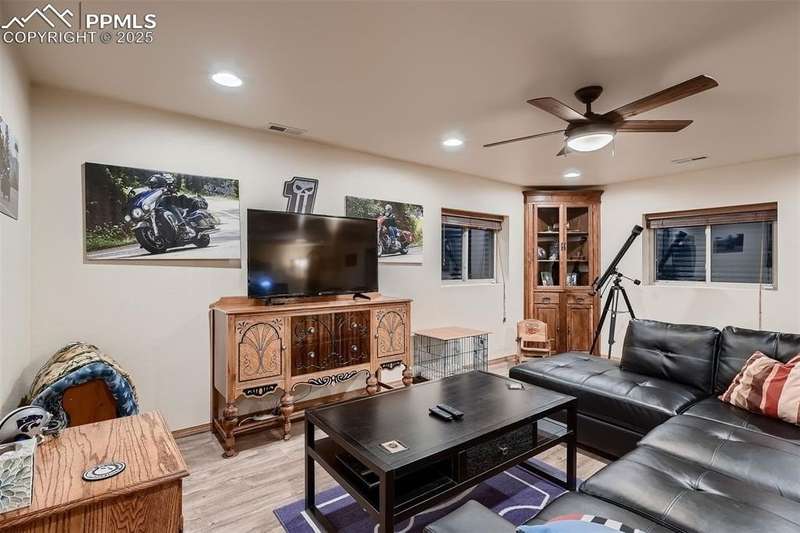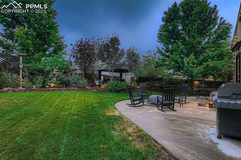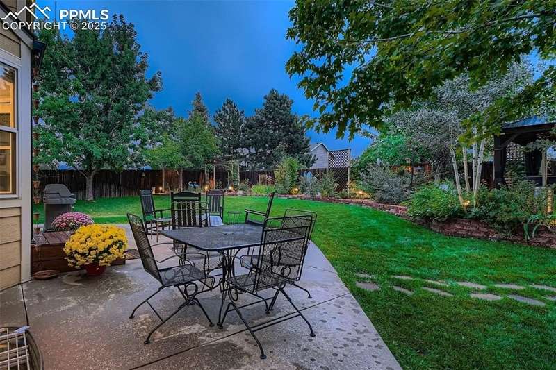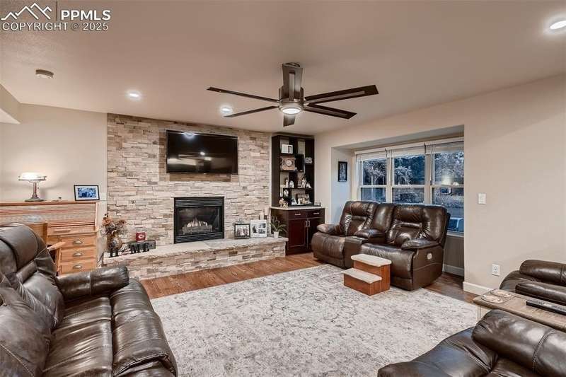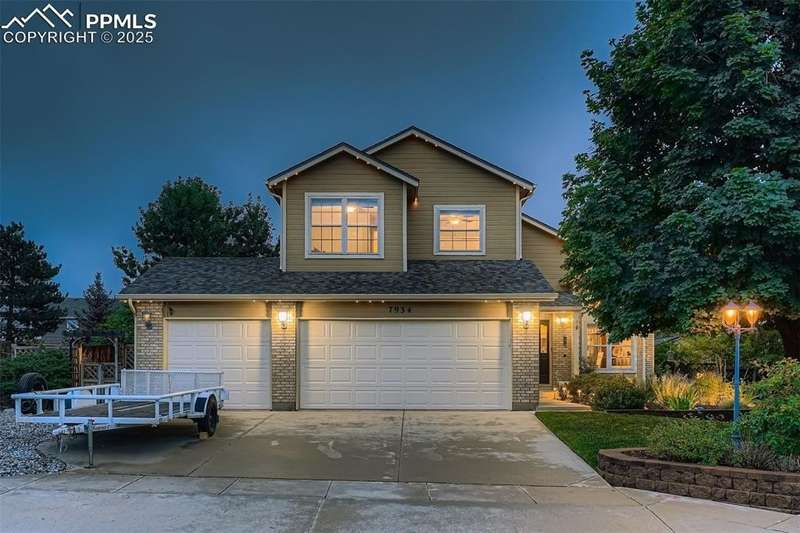 Gorgeous 2-Story with Pikes Peak Views & Park-Like Setting! Welcome to this beautifully updated 4 bedroom, 4 bath home set on a spacious lot with a true park-like feel and breathtaking views of Pikes Peak. Located in the sought after District 20 school area, this home blends modern upgrades with timeless comfort. Step inside to discover gleaming hardwood floors throughout and a thoughtfully designed floor plan. The recently remodeled kitchen/dining room is a true showpiece, featuring custom cabinetry, a large island with built-in storage and power bank, prep sink with disposal, instant hot water, and stunning finishes—perfect for the home chef! With an open concept and vaulted ceilings, the main floor is great for entertaining. The primary bedroom with en suite bath is spacious and private with the two secondary bedrooms on the opposite side of the floor separated by a full bath. The basement is builder finished with a large family room with vinyl flooring, another bedroom and 3/4 bath. Outside, your backyard retreat awaits! Entertain or unwind under the pergola with hot tub, relax on the patio, or simply enjoy the lush landscaping and outdoor lighting. Plus, the whole-house trim light package makes it easy to decorate for any season with the touch of a button! Enjoy year-round comfort with a brand-new furnace and A/C (2024), and a new roof (2023). The home also includes a 3-car fully finished garage with abundant shelving, ideal for vehicles, hobbies, and storage. This home truly has it all: space, comfort, updates, and unmatched outdoor beauty!