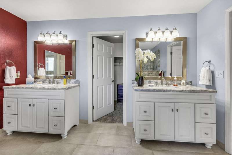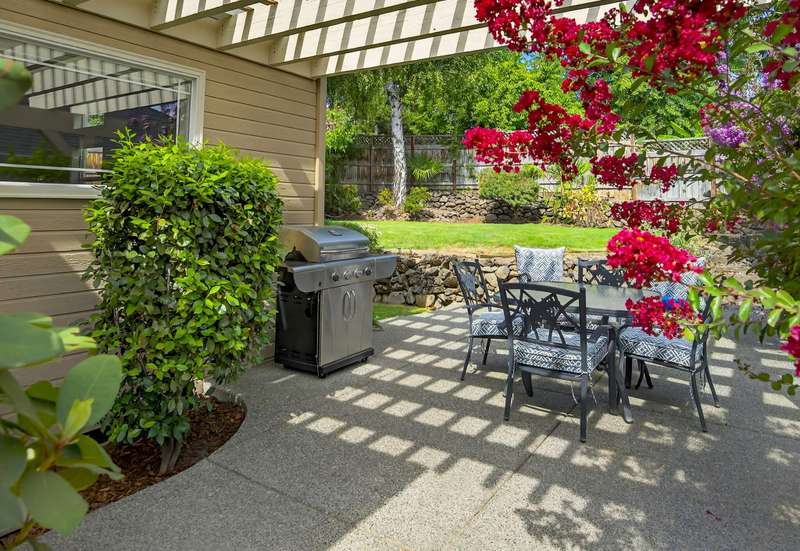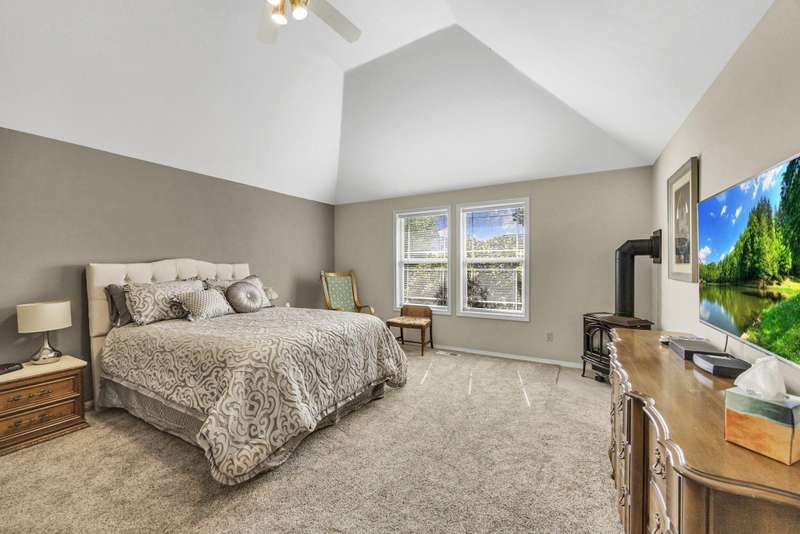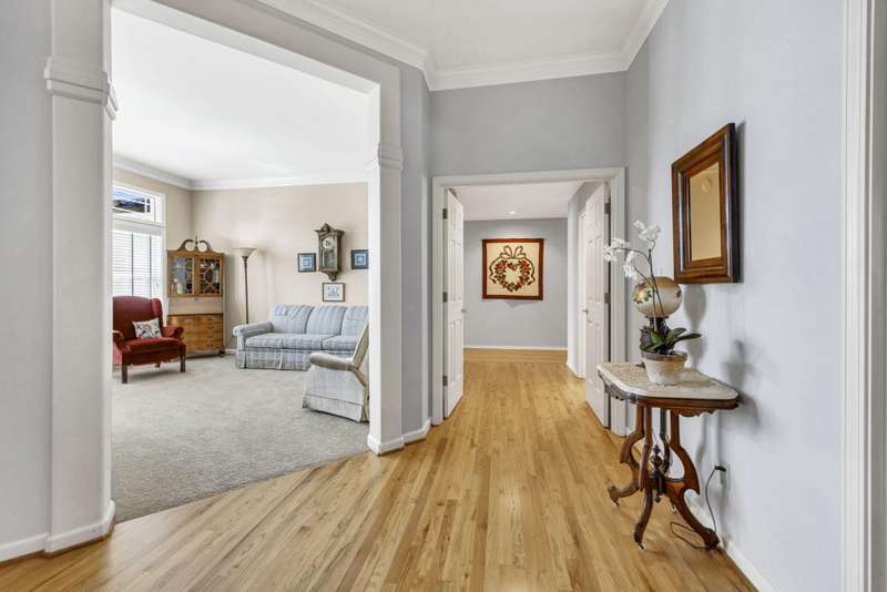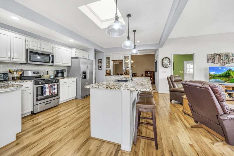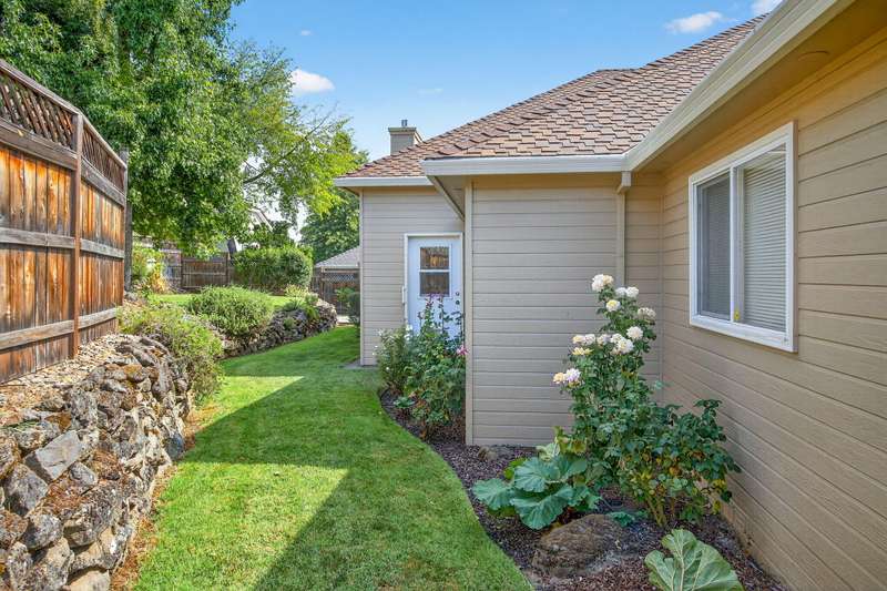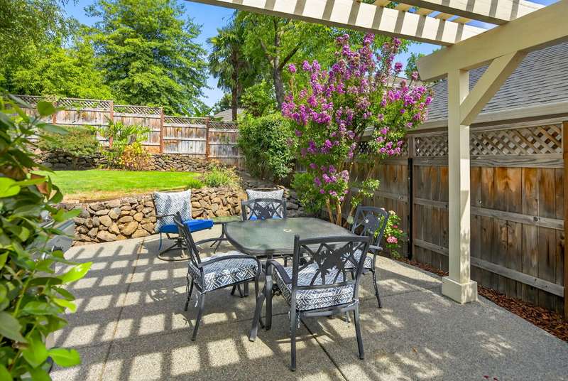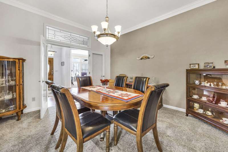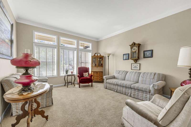 This beautifully maintained single-level home offers a timeless and functional layout. Inside, you'll find both a formal living room and a separate family room, a dedicated office, and an open-concept island kitchen with a generous walk-in pantry. Hardwood flooring runs throughout the main living areas. The bathrooms have been updated, with the primary bath featuring a large and beautiful walk-in shower, dual sinks, and heated floors. The spacious primary suite includes vaulted ceilings, a small fireplace and walk-in closet. Energy efficiency is a highlight—paid free and clear, the solar panels keep the average electric bill at $18 or less. The home also includes a durable 50-year roof, a newer HVAC system, and two brand-new garage doors with openers. Enjoy the private backyard retreat with a charming pergola-covered patio, perfect for outdoor entertaining.