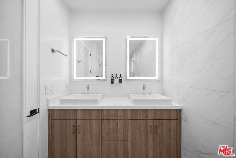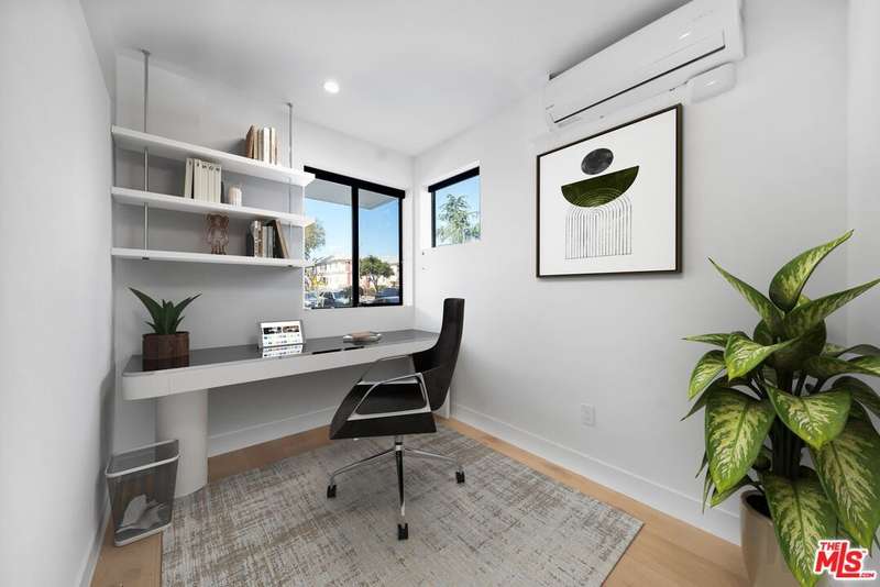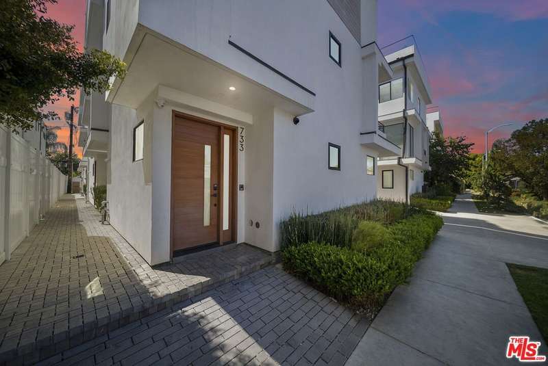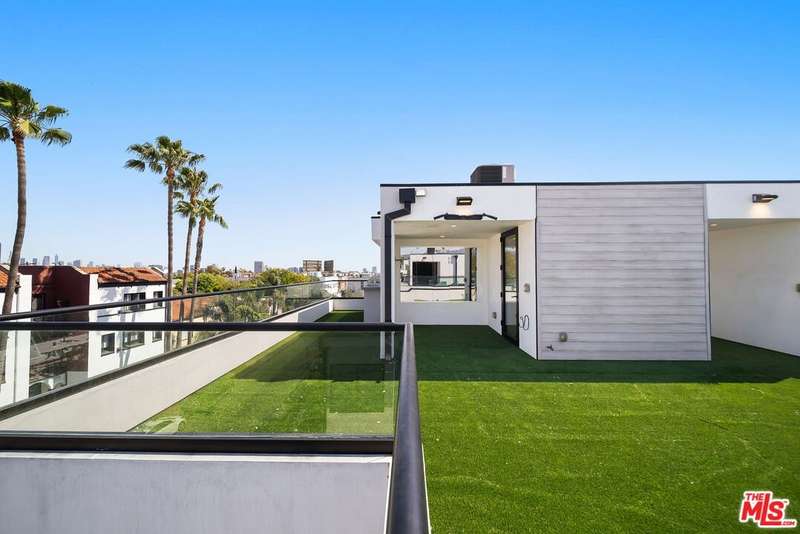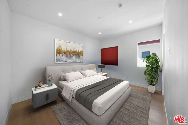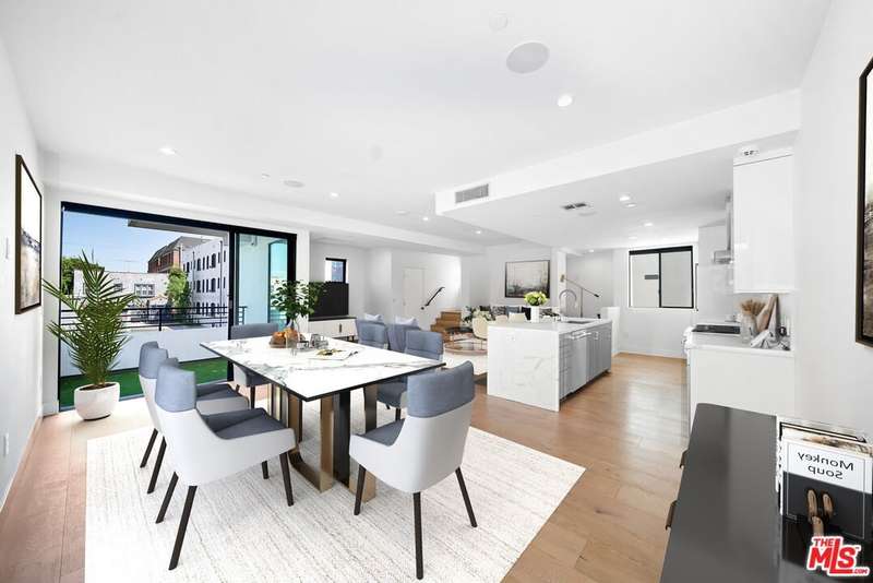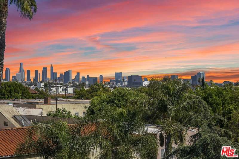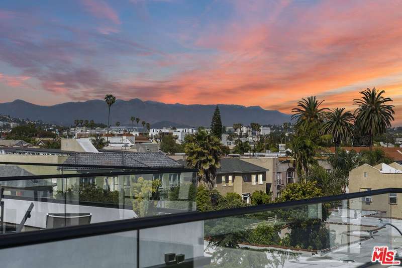 PRICE REDUCED! Newer Construction 3BR/4BA Corner Unit with Rooftop Deck + Iconic Views! Modern home located in the heart of Hollywood's Studio District. Built in 2018, this spacious home features an open-concept floor plan with natural hardwood floors, recessed lighting, and abundant natural light. The main level includes a versatile bedroom/office, powder room, and direct access to a private 2-car garage.The second level opens to a large great room and chef's kitchen with quartz center island, stainless steel appliances, gas range, and built-in ceiling speakers. Three additional en-suite bedrooms are located on the upper levels, each with generous closet space and updated bathrooms. Smart home features include app/voice-controlled lighting, in-ceiling speaker system with 4 zones and individual amp controls, MyQ smart garage access, and security cameras at all entry points. The private rooftop deck offers wrap-around VIEWS of the Hollywood Sign and Downtown LA, complete with a built-in BBQ and multiple seating areas. Two guest parking spaces included. Prime location near Netflix HQ, Paramount, Sunset Gower, Raleigh Studios, and Larchmont Village.