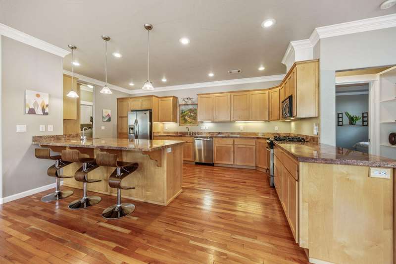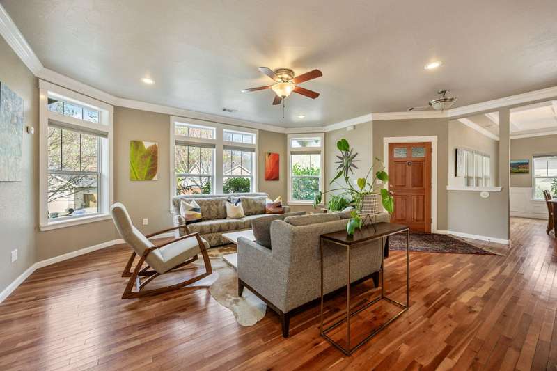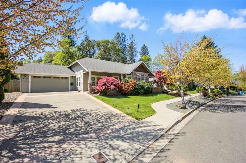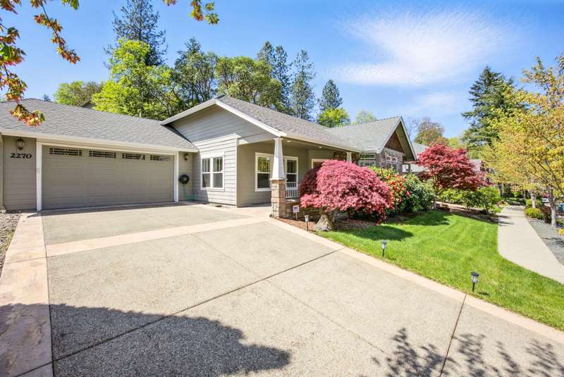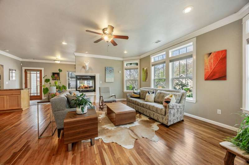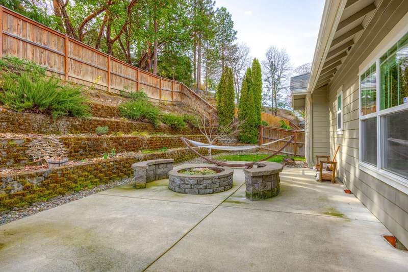 Beautiful single-level 2309 sq ft executive home in prestigious Meadow Wood Estates. This home features an open floor plan that is both comfortable and functional. Large great room that is perfect for entertaining, features hardwood floors, 3 sided glass gas fireplace, breakfast nook and high ceilings. Kitchen features stainless appliances, lots of storage, beautiful granite counters, prep sink and a large breakfast bar. The sunny formal dining room has crown molding, tall coffered ceilings, and wainscoting. The primary suite offers access to a private patio, high ceilings, walk-in closet and a large bathroom with double vanities, shower and jetted soaking tub. Two additional bedrooms one with back patio access, a guest bath and spacious laundry room round out the features. Private backyard has a fire pit, partially covered patio and lawn area for relaxing with friends. Close to shopping and medical.