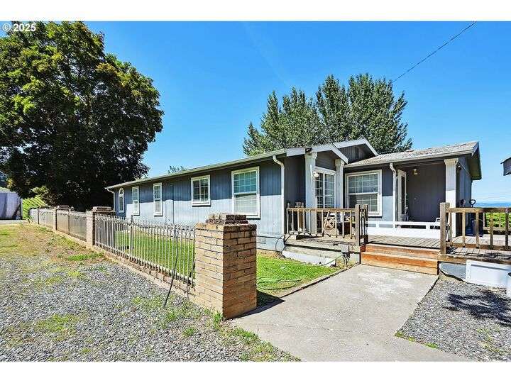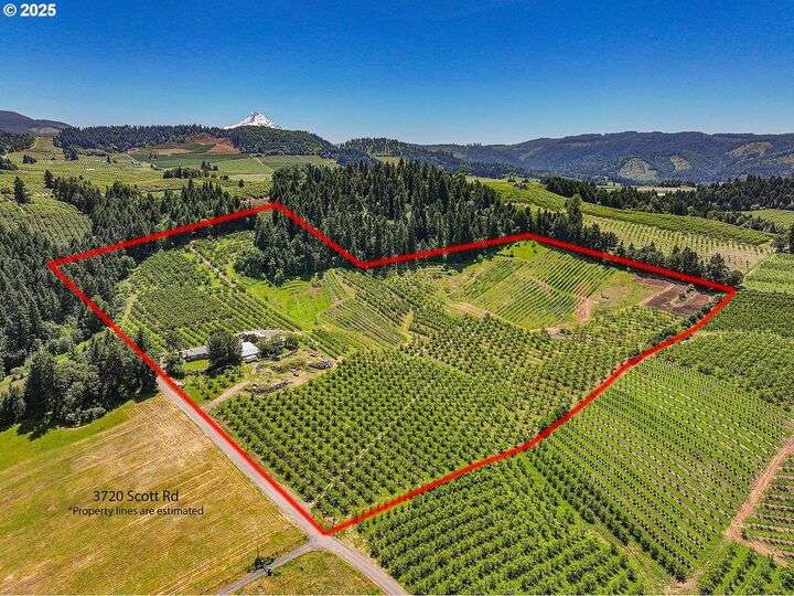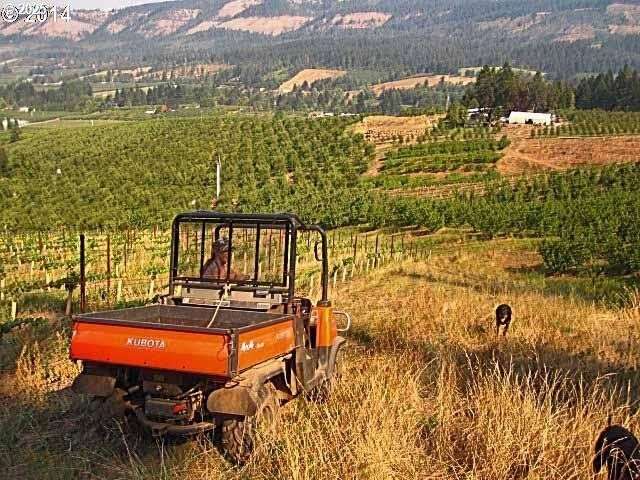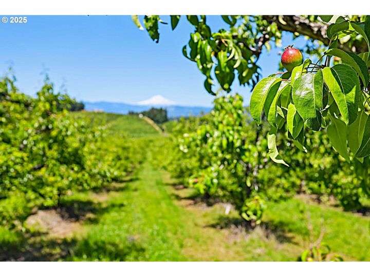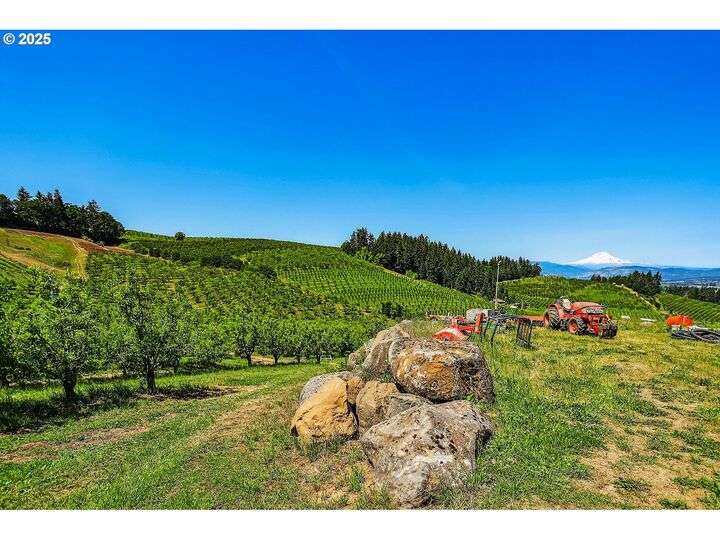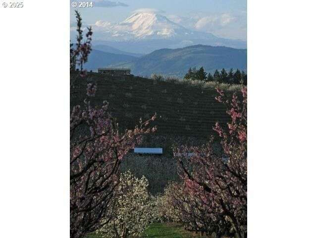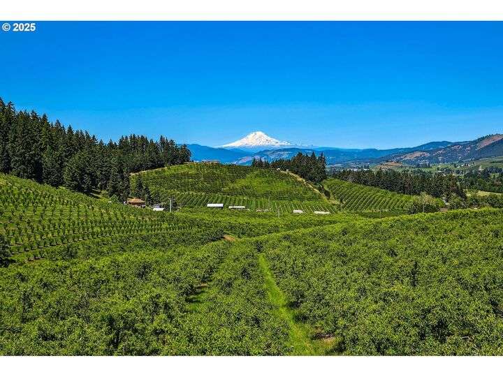 East facing orchard 12 minutes from Hood River of 32.5 acres Epic home site leveled w/bouldered retaining wall viewing Mount Adams and the valley from the top of Scott Road, fully irrigated, planted in anjou, asian, and bartlett pears, grapes, peaches and cherries (plantings inventory not available yet). Owner's house is 1968 square feet double wide and managers house is older double wide 1344 sq.ft. Walk in cooler, barn/shop, (equipment list for sale available. Humbling view of Valley, Mount Adams, from the last home/orchard. Currently farmed by manager of 15 years. 30 acres of verified water rights.