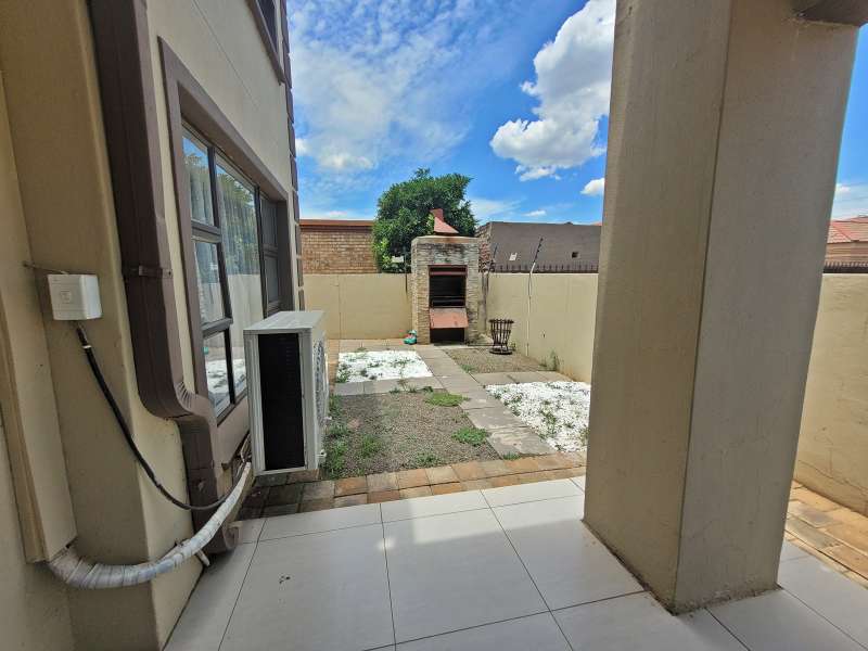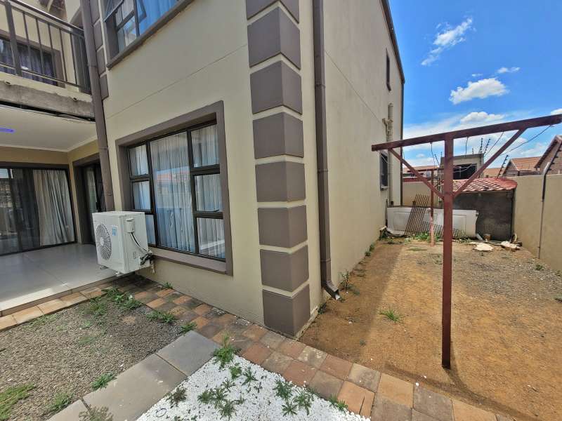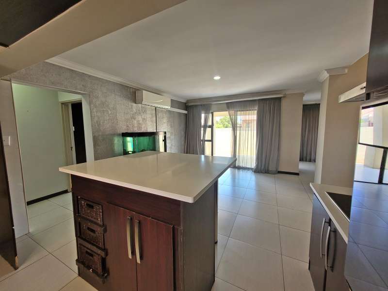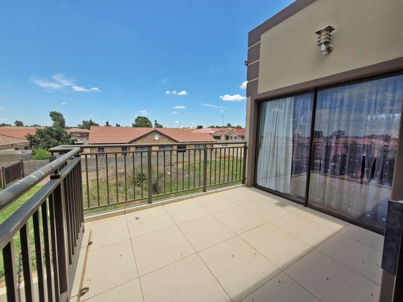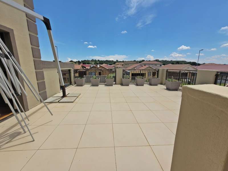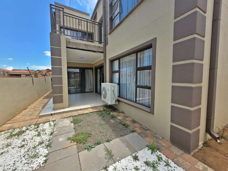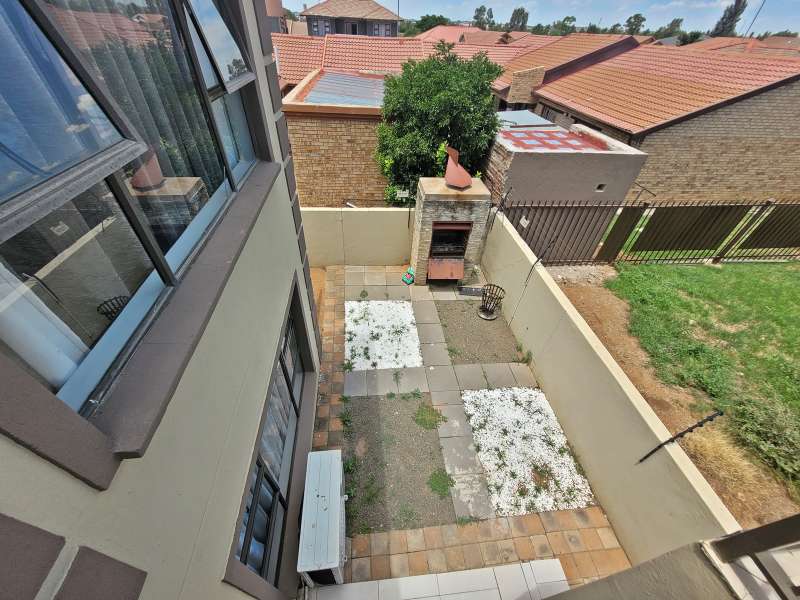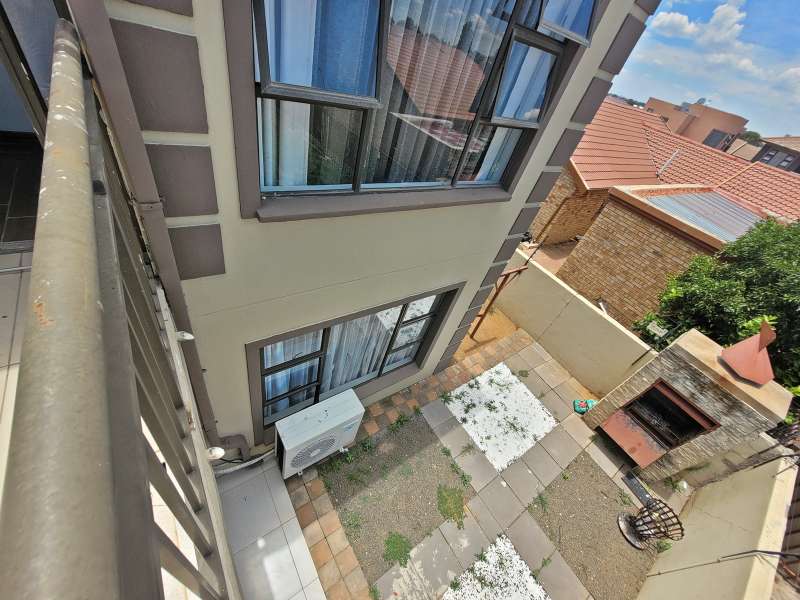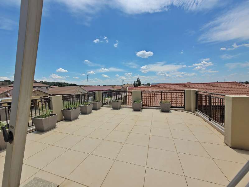 This mini mansion just hit the market and has plenty to offer. Open plan lounge area, dining and kitchen area that flows into each other. The spacious kitchen is fitted with Cherry wood cupboards, granite tops and an eye level oven. A separate scullery makes cleaning easy. The 2 downstairs bedrooms are fitted with built-in-cupboards . A guest bathroom serves the downstairs bedrooms and guests. On the upper level you are spoiled with a pajama lounge or can easily be converted into a second lounge. A balcony that gets flooded with sunshine and offers you impressive views. The 2 upstairs bedrooms are well sized with the main having its own private balcony as well as an en-suite bathroom. An additional guest bathroom is in place upstairs. Also offers: • Study • Pre-paid water and electricity • Built-in braai • Irrigation system • Double garage Call today for a private viewing!!!