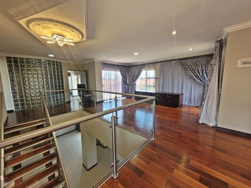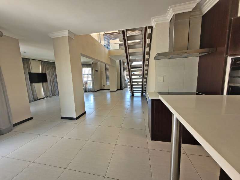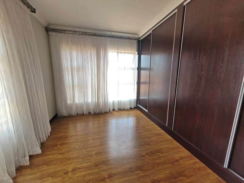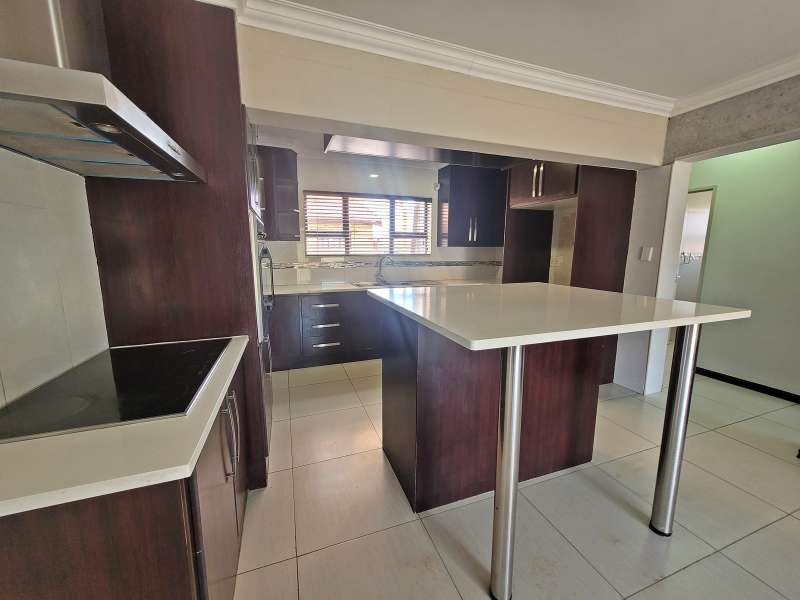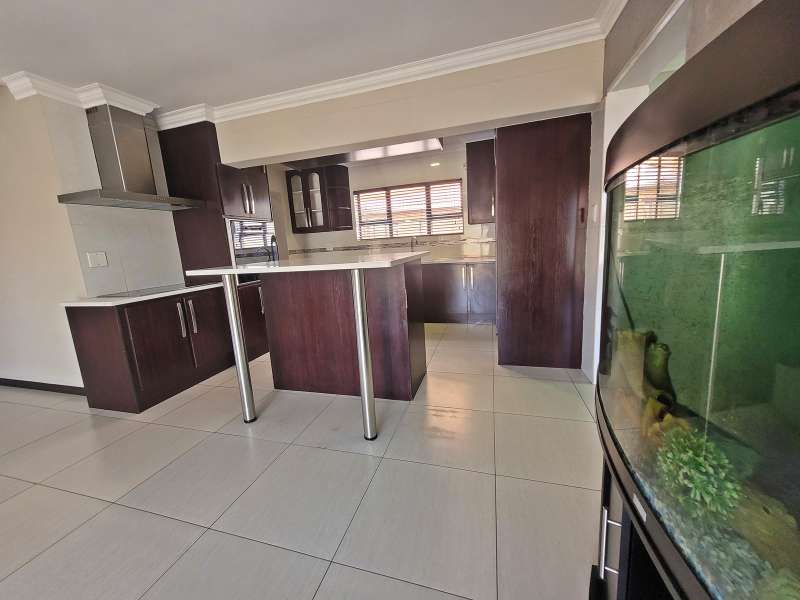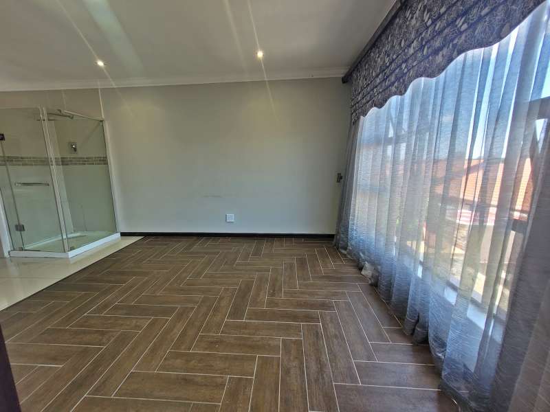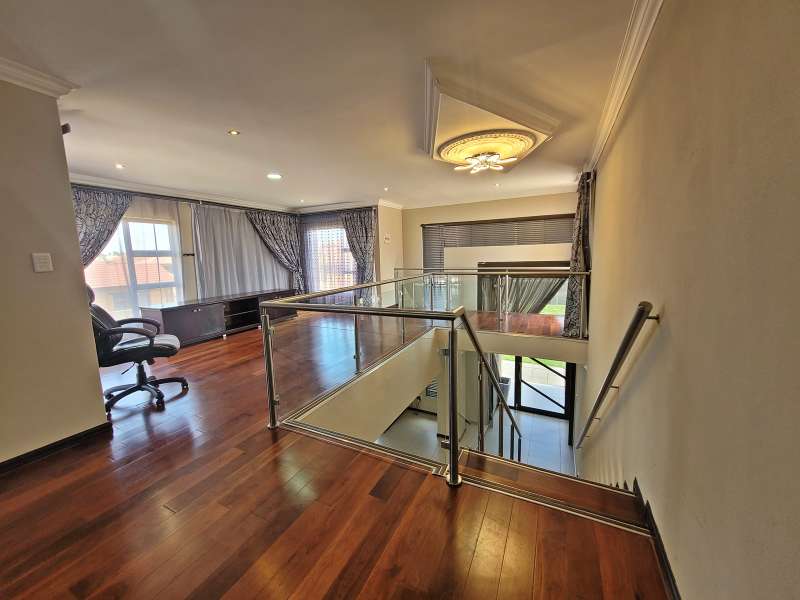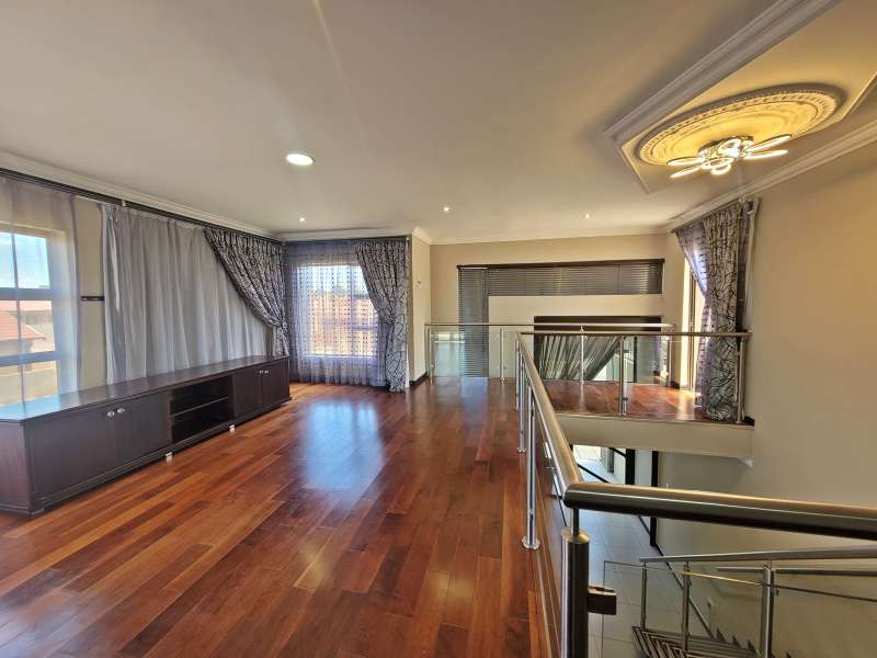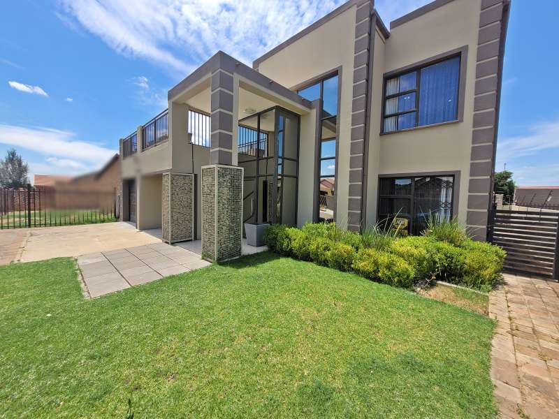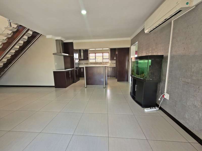This mini mansion just hit the market and has plenty to offer. Open plan lounge area, dining and kitchen area that flows into each other. The spacious kitchen is fitted with Cherry wood cupboards, granite tops and an eye level oven. A separate scullery makes cleaning easy. The 2 downstairs bedrooms are fitted with built-in-cupboards . A guest bathroom serves the downstairs bedrooms and guests. On the upper level you are spoiled with a pajama lounge or can easily be converted into a second lounge. A balcony that gets flooded with sunshine and offers you impressive views. The 2 upstairs bedrooms are well sized with the main having its own private balcony as well as an en-suite bathroom. An additional guest bathroom is in place upstairs. Also offers: • Study • Pre-paid water and electricity • Built-in braai • Irrigation system • Double garage Call today for a private viewing!!!