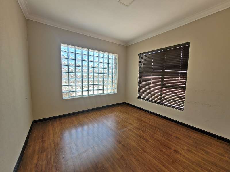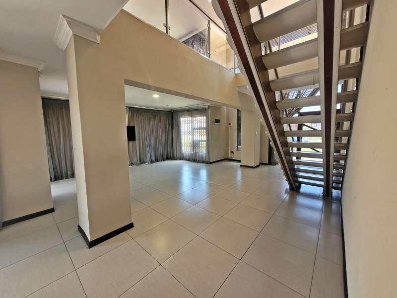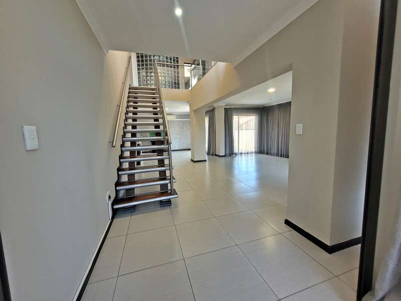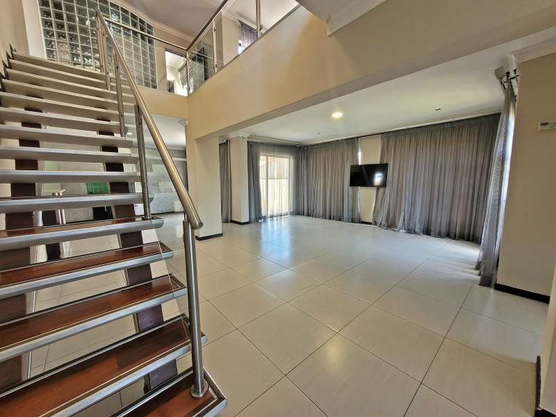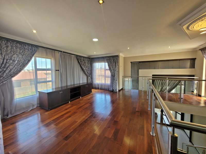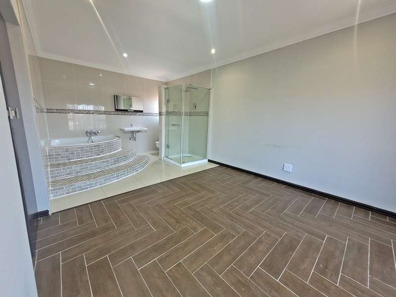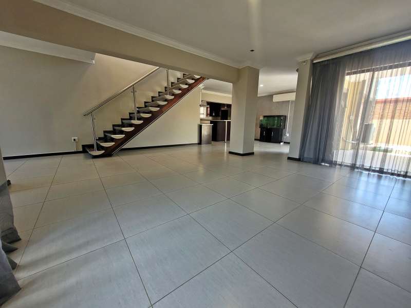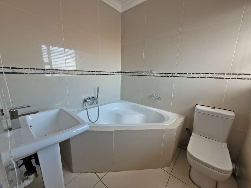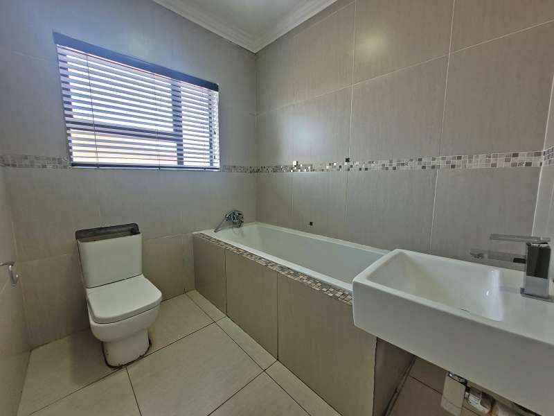 This mini mansion just hit the market and has plenty to offer. Open plan lounge area, dining and kitchen area that flows into each other. The spacious kitchen is fitted with Cherry wood cupboards, granite tops and an eye level oven. A separate scullery makes cleaning easy. The 2 downstairs bedrooms are fitted with built-in-cupboards . A guest bathroom serves the downstairs bedrooms and guests. On the upper level you are spoiled with a pajama lounge or can easily be converted into a second lounge. A balcony that gets flooded with sunshine and offers you impressive views. The 2 upstairs bedrooms are well sized with the main having its own private balcony as well as an en-suite bathroom. An additional guest bathroom is in place upstairs. Also offers: • Study • Pre-paid water and electricity • Built-in braai • Irrigation system • Double garage Call today for a private viewing!!!