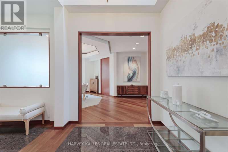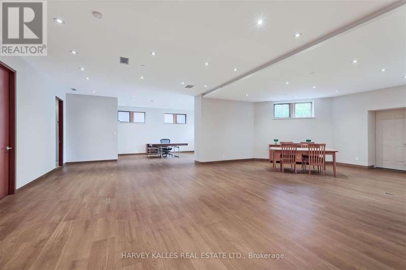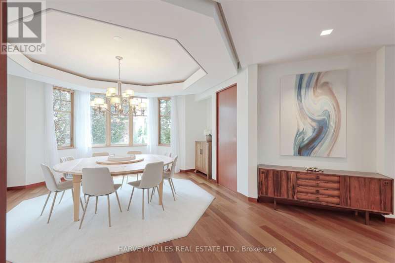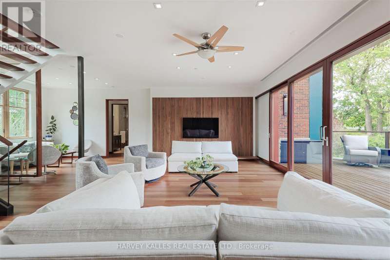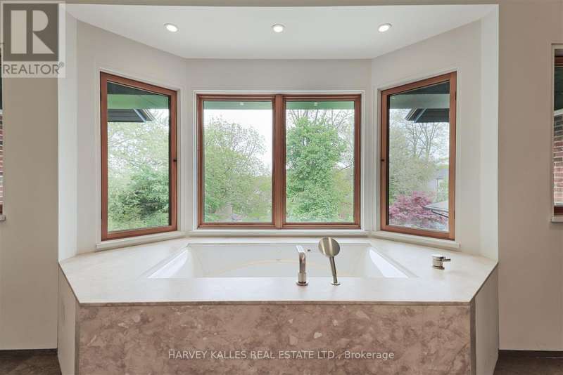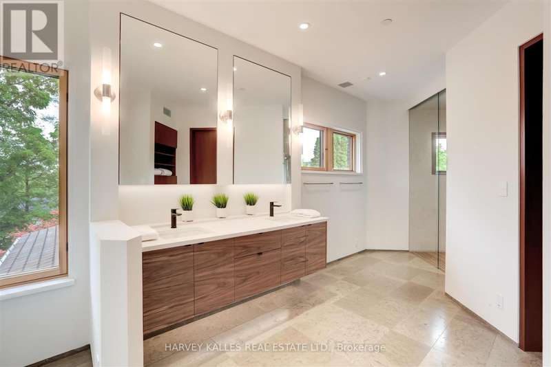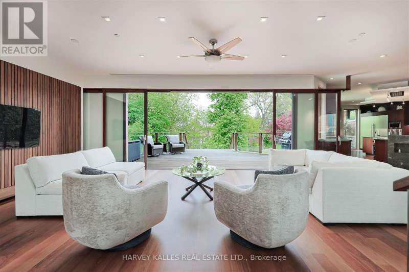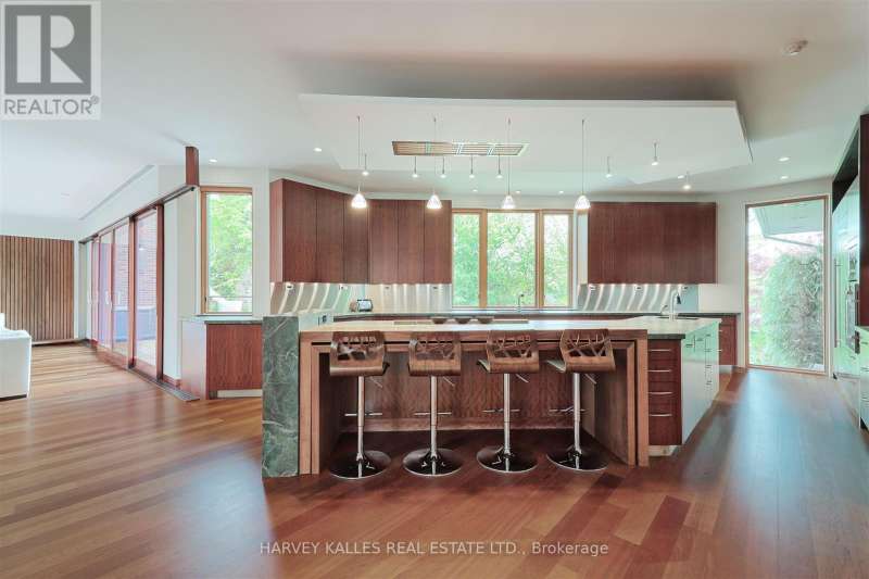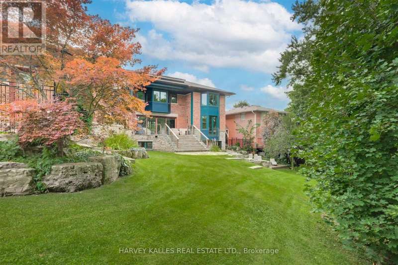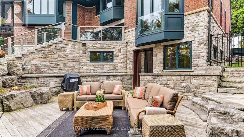 Discover a gem, custom-built as a multi-generational home, offering over 11,000 sq ft of luxurious living space on a rare 125ft double lot at the edge of the Humber Valley in the tree-lined Kingsway neighbourhood. This residence is a statement of contemporary elegance and sophistication, perfect for the discerning family.Inside, experience clean lines and exquisite details that enhance comfortable luxury living, including sound-isolated suites, Jatoba hardwood floors, stunning Persian serpentinite kitchen countertops, and heated stone floors for ultimate comfort.Accessibility is a key feature, with snow melt for the front porch, steps, ramp and driveway, a commercial 4x6 ft elevator, and 4 ft wide hallways to ensure effortless movement throughout the residence.The ground floor features a bright, open-plan living area that seamlessly integrates the chefs kitchen, dining, and living spaces, extending to a partially covered upper deck with a 17ft wide opening. A heated 3-car garage is cleverly positioned at the side of the house.The primary retreat is where luxury meets tranquility, featuring two generous walk-in closets and two ensuites one complete with a massage room and whirlpool tub offering tree-top views. Two additional spacious bedrooms, each with walk-in closets, share a thoughtfully designed bathroom suite with dual sinks, ample storage, and a separate area for added privacy. The oversized fourth bedroom also includes its own ensuite bathroom and walk-in closet, providing comfort and convenience for family or guests.The ground floor bedroom suite with a Juliet balcony offers a perfect retreat for guests.Venture to the finished lower level, where 10+ ft ceilings create a light and airy ambiance.This expansive space features a wide sliding door leading to the lower deck, ideal for entertaining.With multiple entertainment areas, including a stepped home theatre and sprawling park-like backyard, this home is designed for those who appreciate spacious comfort. (id:6370)