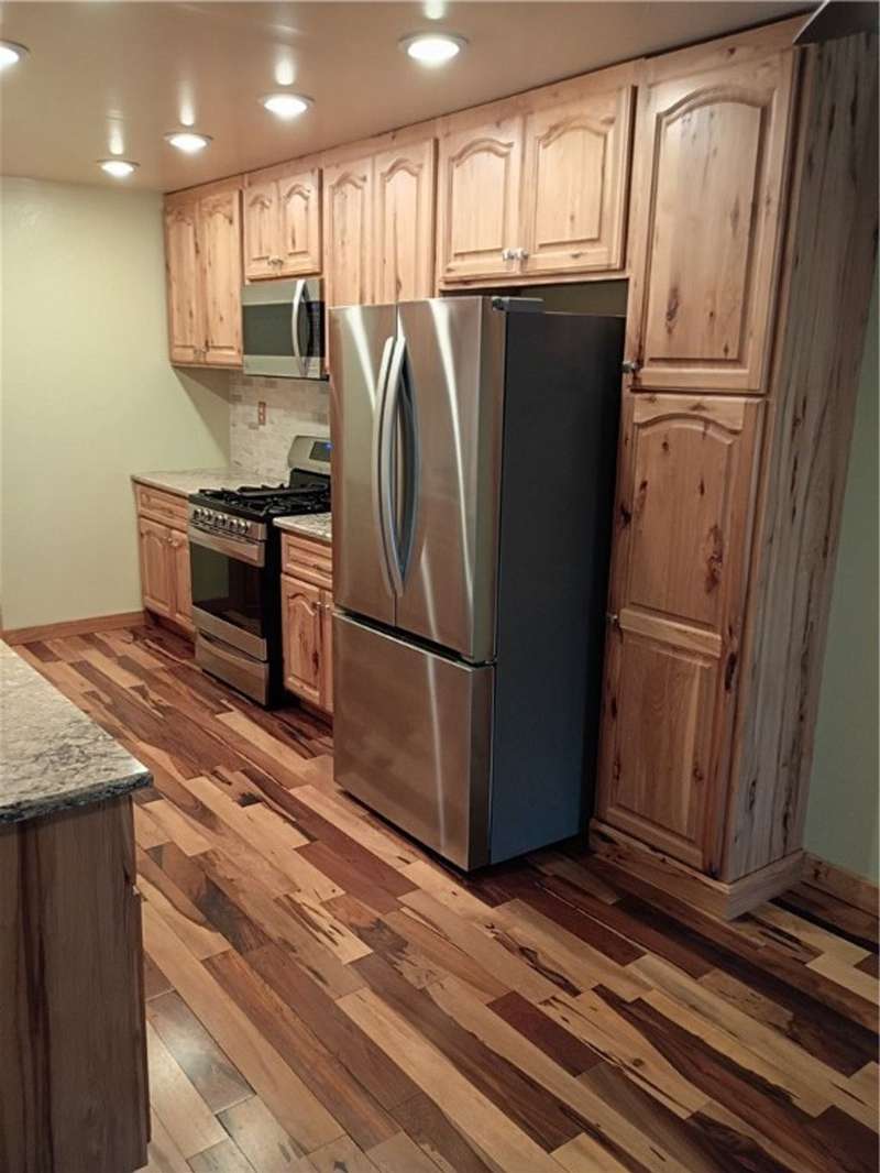 You are not going to want to miss out on this beautiful cottage style home! Enter in through a stunning enclosed porch with porcelain tile flooring. The kitchen features handmade cabinetry with the soft close features and ample space, quartz counter tops and Brazilian pecan hardwood floors. Bathroom with tub and shower combo with glass surround with porcelain tile floors. Spacious Master bedroom with a large closet. Enjoy the finished basement with two rooms that exit into a fenced in rear yard with an 8-foot privacy fence all the way around. Detached one car two story garage. Second story of garage approximately 24' by 12' with French door access.
