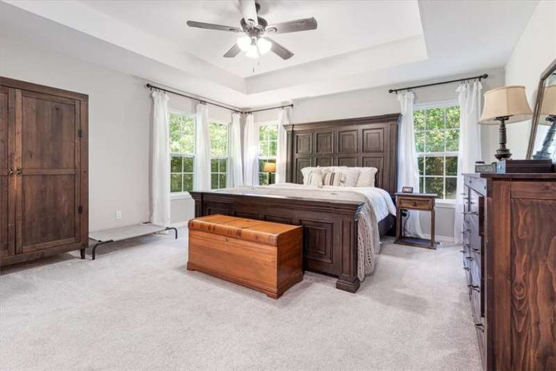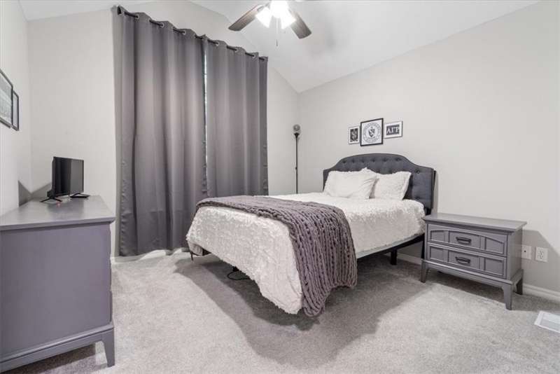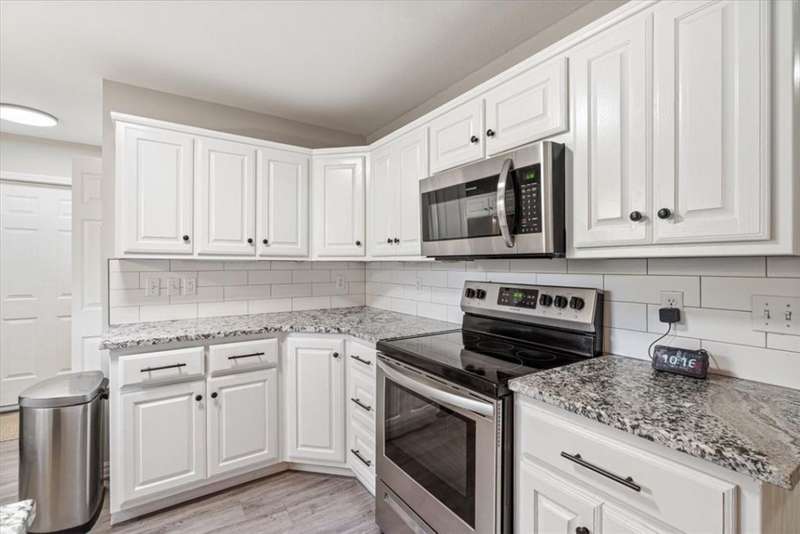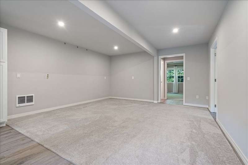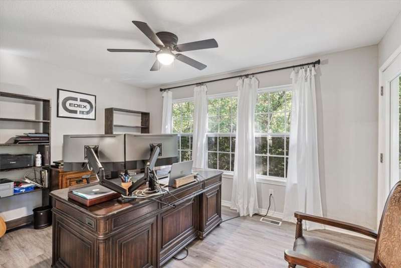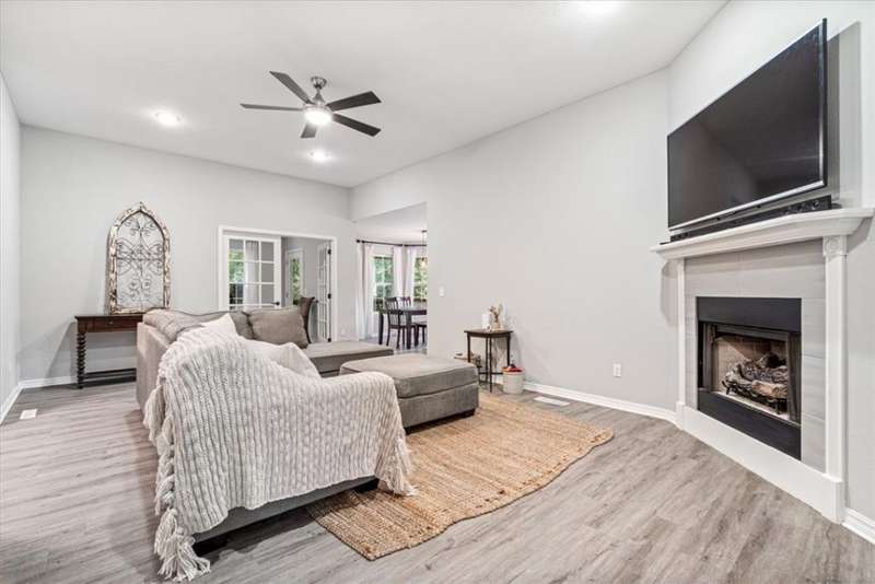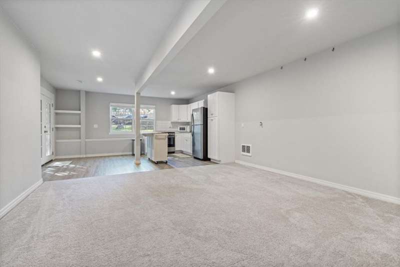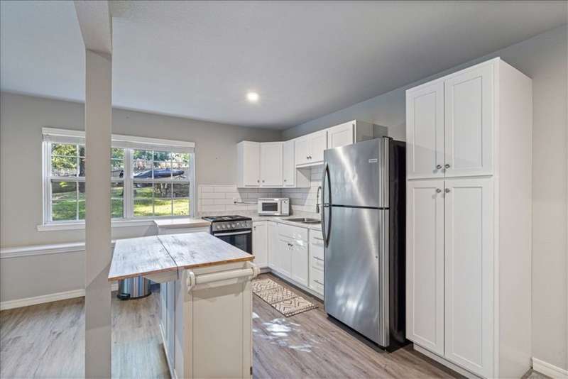 Beautifully situated on two wooded lots at the end of a quiet cul-de-sac, this 4-bedroom, 3-bath home offers 2,774 sq ft of inviting space and privacy just down the road from Back 40 Trail access. The main level features an open living room with fireplace, a spacious kitchen with stainless appliances, bar seating, and dining area, plus a flexible office with deck access. The split-bedroom layout includes a spacious primary suite with dual closets, whirlpool tub, and separate shower, along with a second bedroom and full guest bath. The walk-out basement provides an additional full kitchen, large secondary living area, two bedrooms, and a full bath ideal for guests, extended family, or a home studio. Outdoor spaces include a fire pit and seating area surrounded by trees, offering a peaceful setting for entertaining or relaxing. On sewer, double lot, and ready to enjoy!