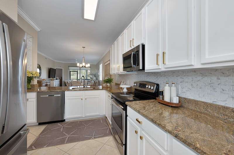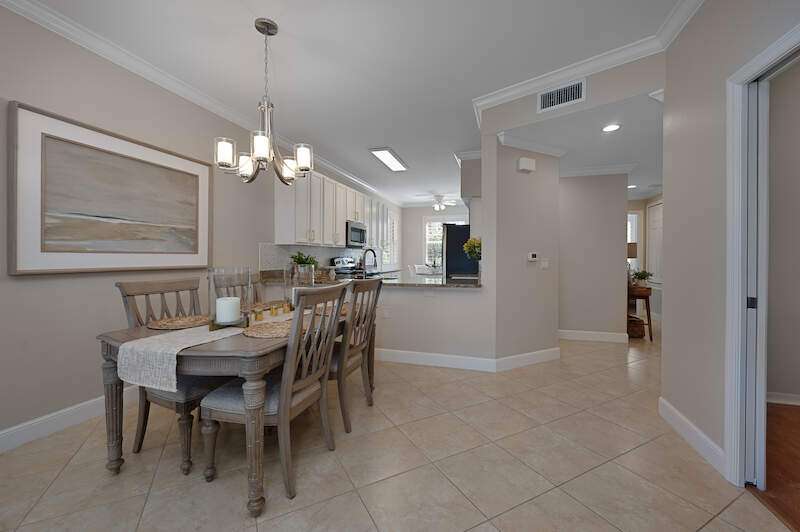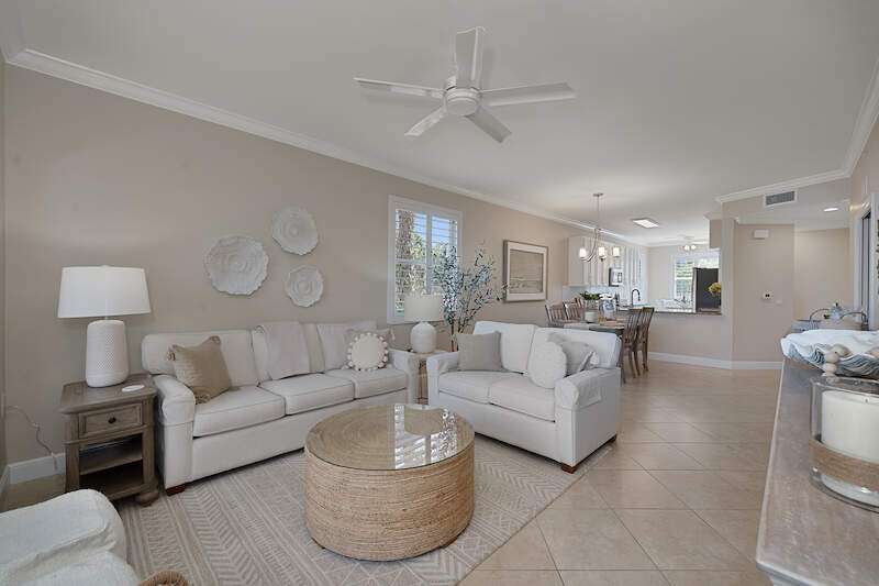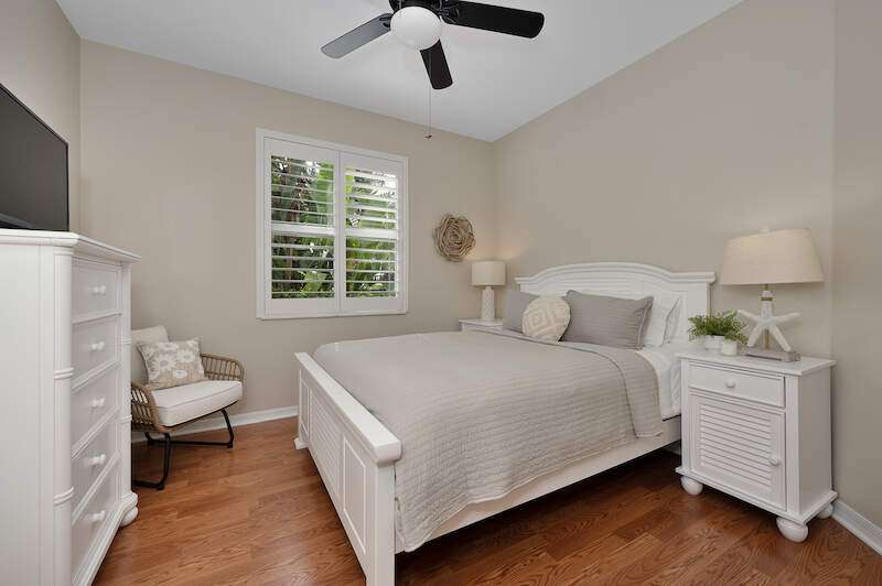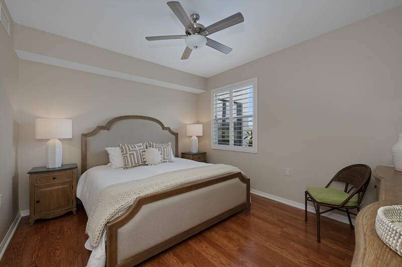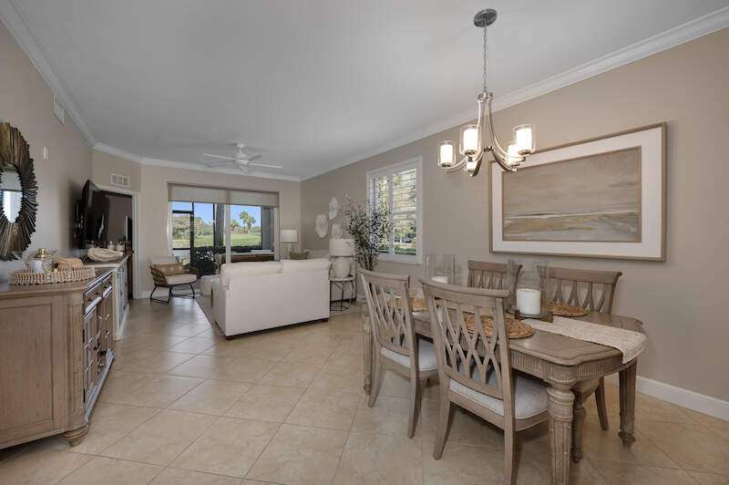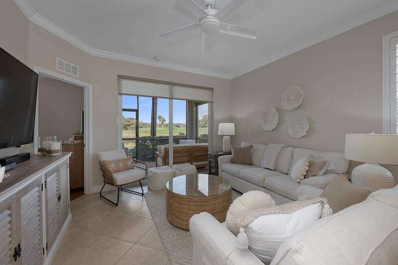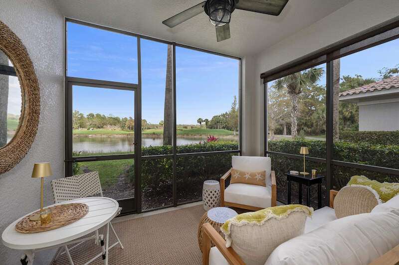 Welcome to this stunning 2-bedroom + den, 2-bathroom condo located in one of the most sought-after luxury golf communities. Offering breathtaking views of the serene lake, pristine golf course, and lush preserve, this home seamlessly blends elegance and comfort. Step inside and be greeted by an open floor plan that's perfect for entertaining, with large end unit windows that allow natural light to flood the space. Plantation shutters throughout. The spacious living area leads to a private screened-in lanai, where you can unwind while enjoying the picturesque surroundings. The open kitchen is a chef's dream, featuring stainless steel appliances, beautiful cabinetry, and a large island for casual dining. The master suite is a true retreat, with ample space, a luxurious en-suite bath, and its own stunning views of the lake and golf course. The second bedroom is equally spacious, while the den offers versatility for an office or additional guest space. Featuring wood floors in both bedrooms and hard surface flooring throughout. Situated in Heritage Bay with access to community amenities including a 27-hole championship course, a world-class clubhouse, Grille Room Restaurant & Bar, and formal dining room, 7 HAR-TRU tennis courts, pickleball courts, four quiet satellite pools, state-of-the-art fitness center, full-time activities director & clubhouse, bike and walking paths. Just minutes from fine dining, shopping, and entertainment. Experience the perfect blend of leisure and luxury in this exceptional condo, where every day feels like a vacation. Whether you're a golfer or a nature lover, this location offers something for everyone. Don't miss the opportunity to make this exquisite condo your own private paradise.