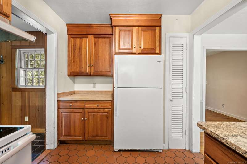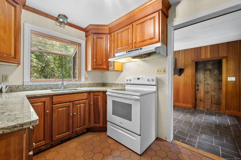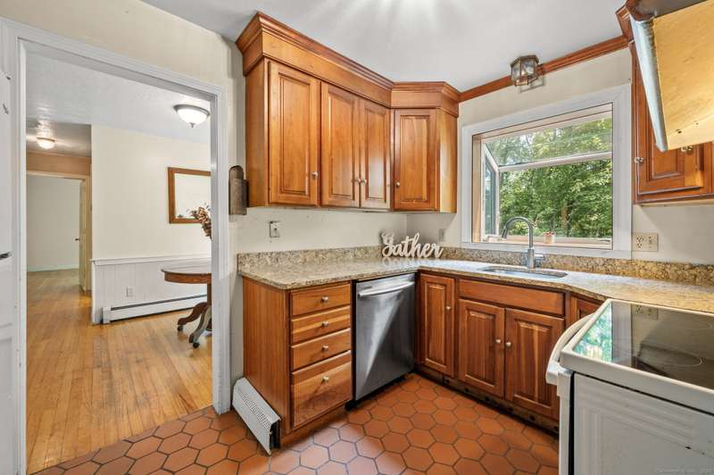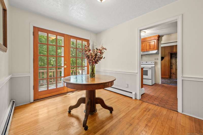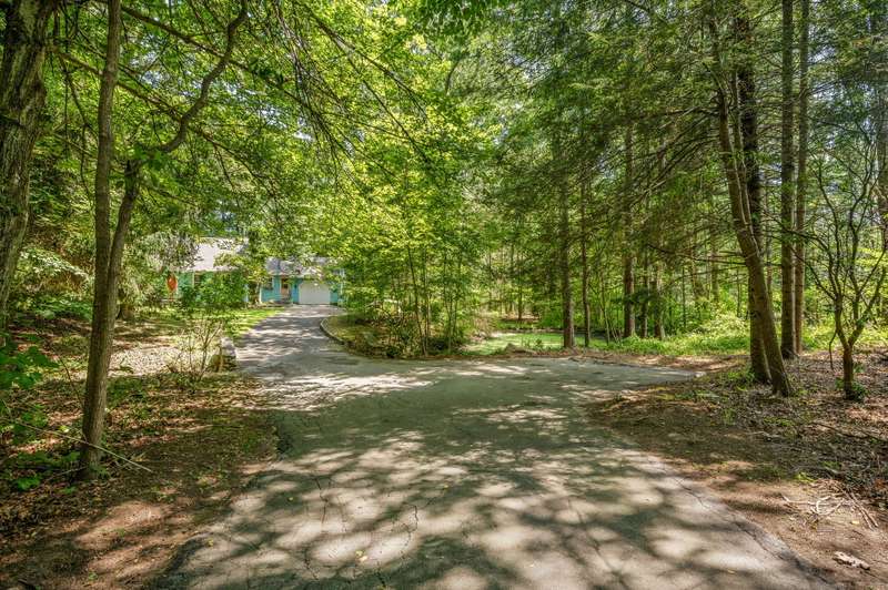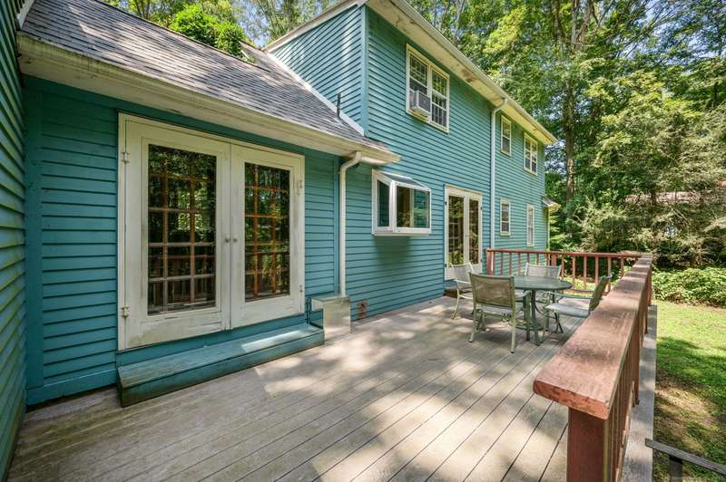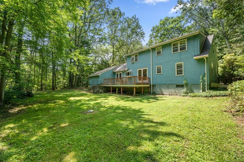 Your Peaceful Retreat Awaits. Tucked away in a serene setting, this charming Cape Cod-style home offers the perfect blend of comfort, character, and privacy. Featuring three bedrooms and two full baths, it's ready for the next family to make it their own. As you wind down the meandering driveway, you'll pass a picturesque pond - ideal for outdoor fun, quiet reflection, or simply soaking in the natural beauty of the property. Step inside to discover a warm, fireplaced family room, a first-floor bedroom, and a spacious eat-in kitchen with direct access to the back deck - perfect for entertaining or enjoying peaceful mornings. A full bathroom completes the main level. Upstairs, you'll find two additional bedrooms and another full bath, offering ample space for family or guests. The partially finished basement includes a walkout hatchway, providing great potential for extra living space, a home gym, or hobby area. If you're looking for a tranquil home with charm, nature, and flexibility -