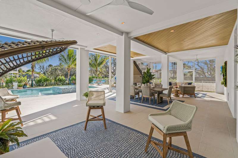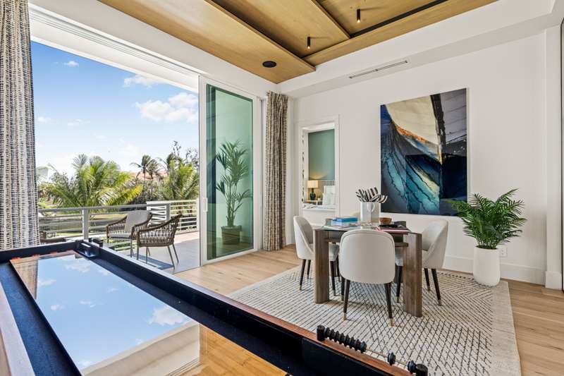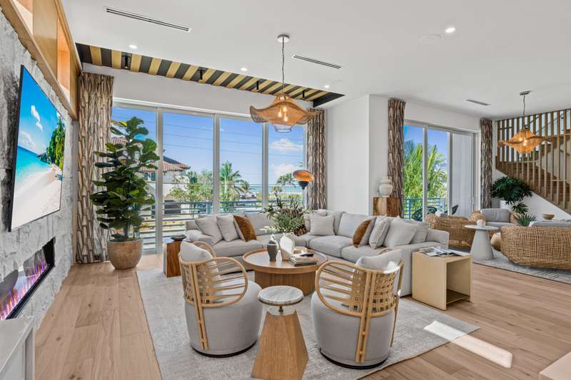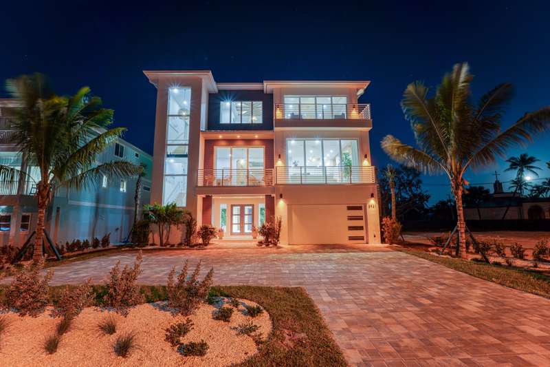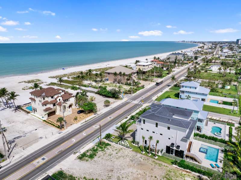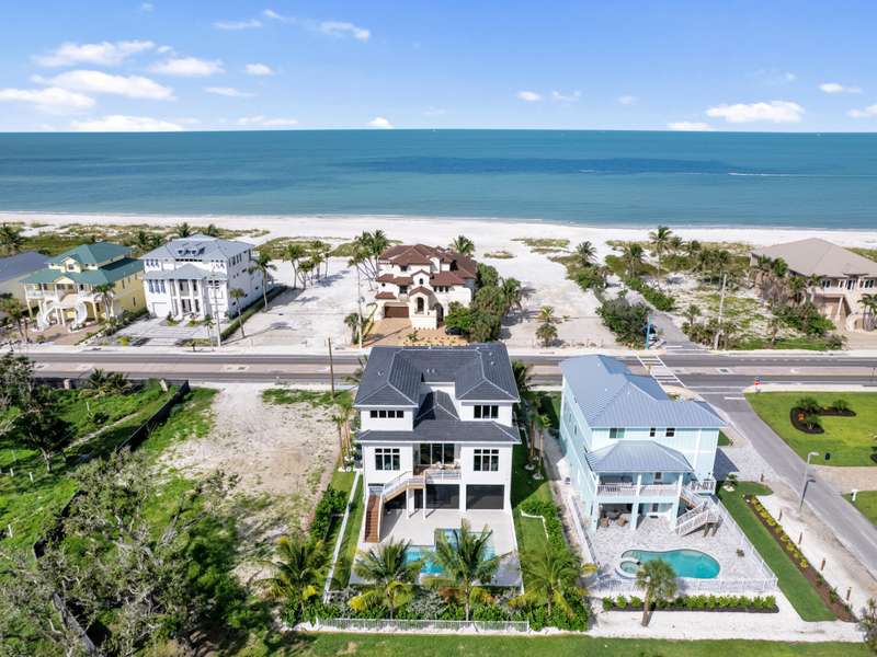 Overlooking the pristine sands of Fort Myers Beach, this BRAND NEW custom-built 3 story home by Imperial Homes offers the perfect blend of contemporary architecture and classic coastal charm. Designed as the ultimate luxury retreat, this 4,392 sq. ft. residence features 4 bedrooms and 4.5 bathrooms, with every detail thoughtfully curated to maximize panoramic Island/Gulf views, comfort, and elegance. Offered FULLY FURNISHED with design by Clive Daniel Home’s Sherie Weidner, the interiors reflect a modern take on “coastal vacation,” incorporating light natural woods, glass, and stone to create a truly unique and sophisticated atmosphere. From the moment you step inside, the open-concept layout captivates with high-end finishes, vaulted ceilings, and seamless indoor-outdoor integration. Floor-to-ceiling windows and multiple balconies frame breathtaking Gulf vistas, while the state-of-the-art chef’s kitchen, complete with top-tier appliances, a spacious island, and custom cabinetry, is ideal for both entertaining and everyday living. The luxurious primary suite serves as a private sanctuary, featuring a spa-like bathroom, walk-in closets, and a serene balcony. A separate game room, a striking rock wall fireplace, and a stylish martini lounge add to the home’s standout design. Outdoor living is elevated with a covered lanai, resort-style pool with spa, and beach access across the street, creating the ultimate setting for relaxation. Smart home technology allows for effortless control of lighting, climate, and security, ensuring modern convenience. Hurricane-resistant construction, impact-resistant windows, reinforced structural elements, and elevated foundations, this home is designed to withstand Florida’s weather. Energy-efficient features, including high-efficiency HVAC systems and smart irrigation, enhance sustainability without compromising luxury. This stunning home is a rare opportunity to own a piece of paradise on Fort Myers Beach in one of the best residential locations on the island! Ask about $300,000 Leaseback offered by builder!