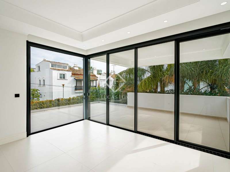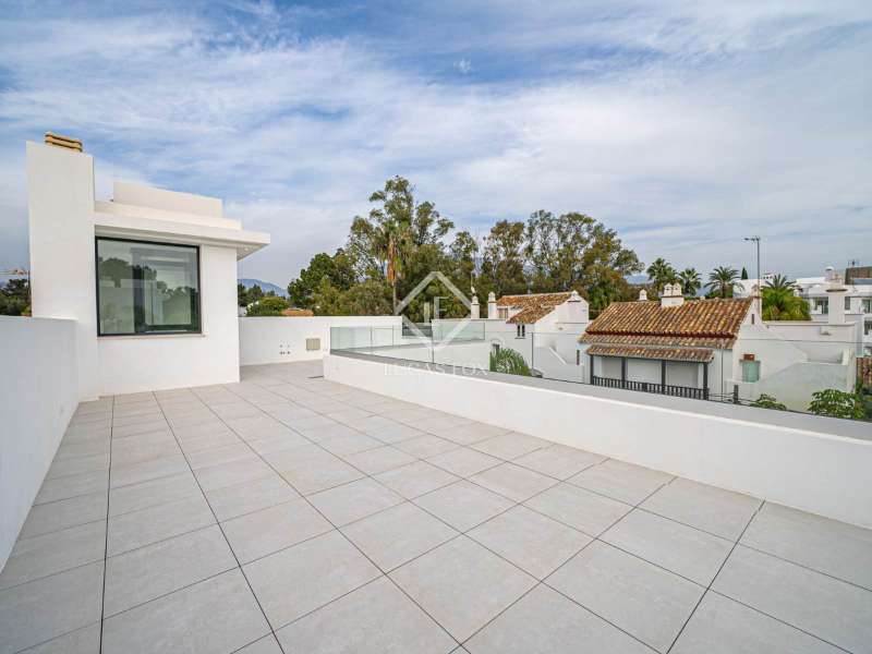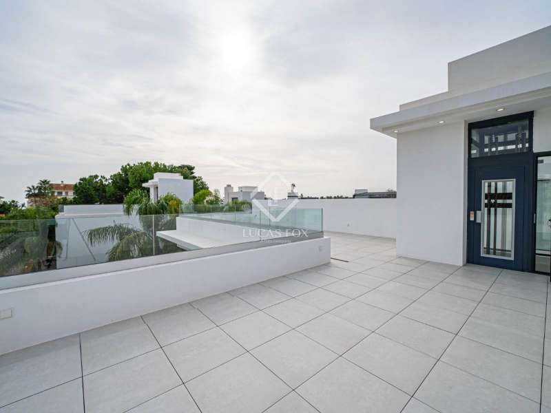 This stunning 4-bedroom villa in Rio Verde Playa offers a perfect blend of luxury and convenience. Located just 100 metres from the beach and a short walk to Puerto Banús, it provides easy access to Marbella's vibrant lifestyle. The villa spans four levels, connected by a private lift, and features spacious terraces on each floor, ideal for outdoor living. The open-plan living area, modern kitchen, and private garden with a swimming pool create an inviting atmosphere. Additional amenities include a rooftop solarium with panoramic sea views, a basement with a cinema room, and a garage for two cars. This property is perfect for those seeking a luxurious home in a prime location. Please contact us for further information.