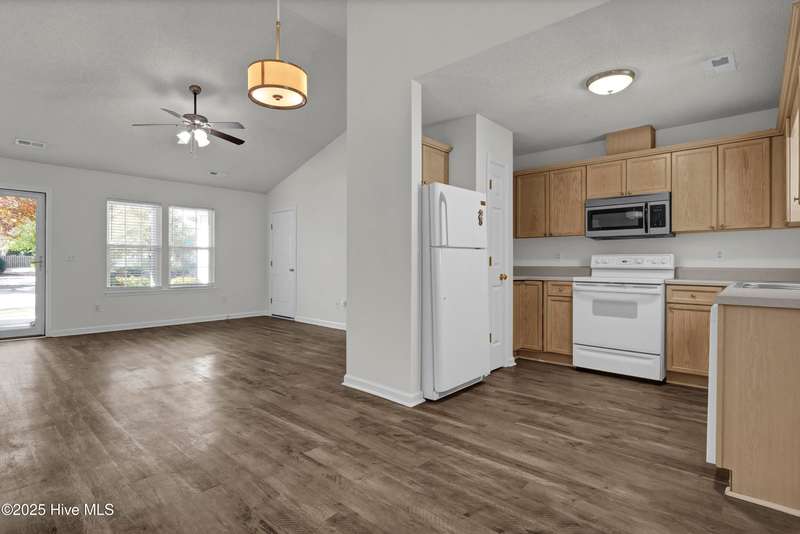 Located off Gordon Road, adjacent to the tranquil charm of Lewis Farms & the recreational amenities of Ogden Park, this inviting 3 bedroom, 2 bath home on Farrington Farms Road offers over 1,200 square feet of comfortable, single-level living. Fresh interior paint & luxury vinyl plank flooring throughout the main living areas & baths give the home a clean, modern feel.The split-bedroom floor plan provides privacy for the primary suite, while the secondary bedrooms offer flexibility for guests, a home office, or hobbies. Vaulted ceilings in the living room & primary bedroom enhance the spacious, airy atmosphere. The fully privacy-fenced backyard with firepit is perfect for outdoor entertaining or quiet relaxation. And the one-car garage provides convenience, plus additional attic storage overhead. Recent updates include a new built-in microwave, updated guest bath flooring, lighting, & vanity, & fresh paint throughout, ensuring this home is move-in ready. Enjoy afternoon walks along the sidewalk-lined streets of Farrington Farms & direct sidewalk access entrance to Ogden Park, directly adjacent to Farrington Farms, where walking trails, sports fields, and open green spaces await. Nearby, Lewis Farms offers fresh local produce and seasonal family events, while Mayfaire Town Center provides an array of shopping, grocery, and dining options just minutes away. Exciting new commercial developmentsThe Avenue and Center Pointare also underway, soon expanding the area's lifestyle conveniences even further. Looking ahead, major Gordon Road improvements are already in progress, bringing expanded lanes, new bike trails, and enhanced connectivity to Highway 17, I-40, Downtown Wilmington, and area beachesmaking both commuting and recreation more enjoyable.With thoughtful updates, a practical layout, and a location poised for growth, this Farrington Farms home perfectly blends comfort, convenience, and opportunity in one of Wilmington's most desirable areas.