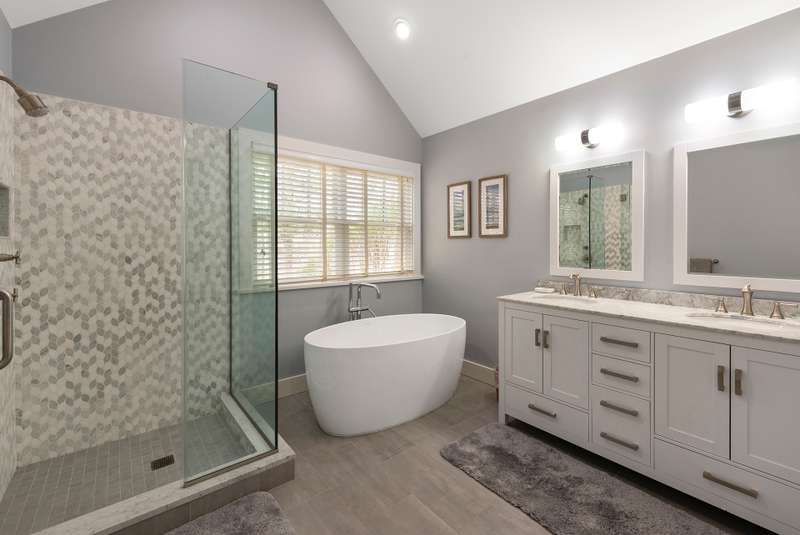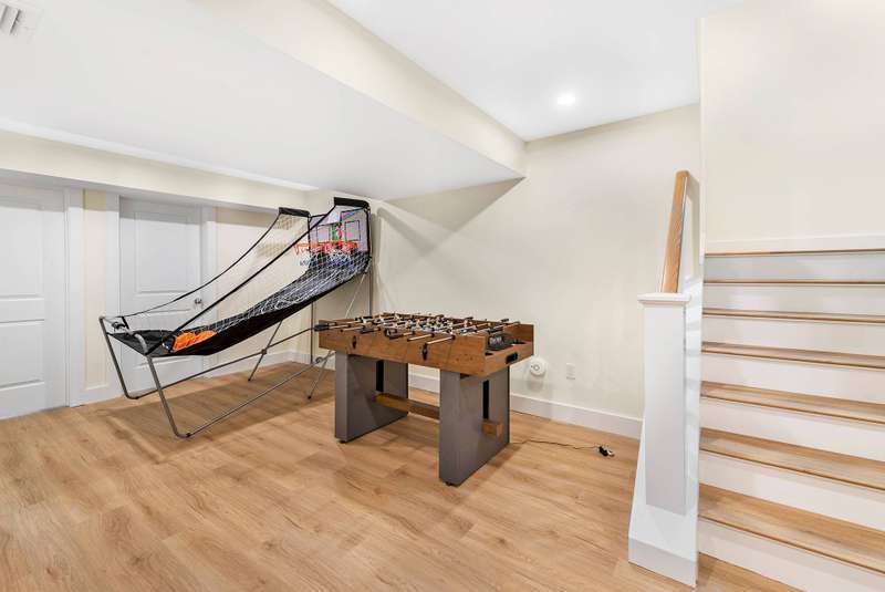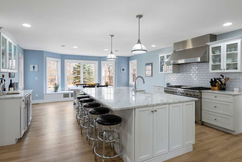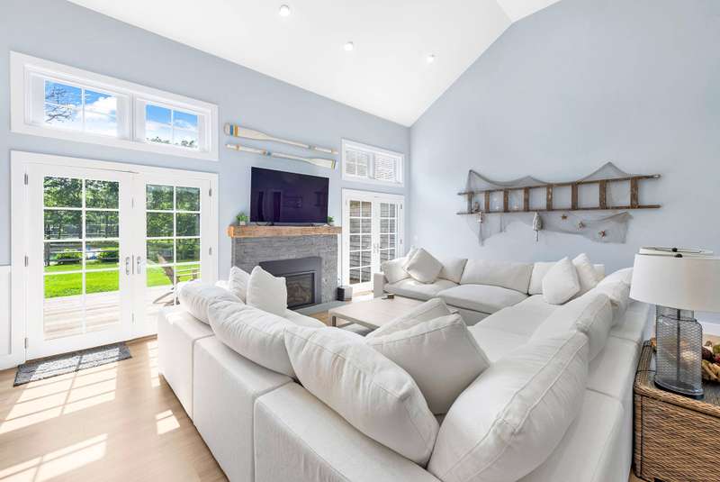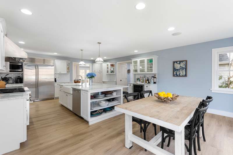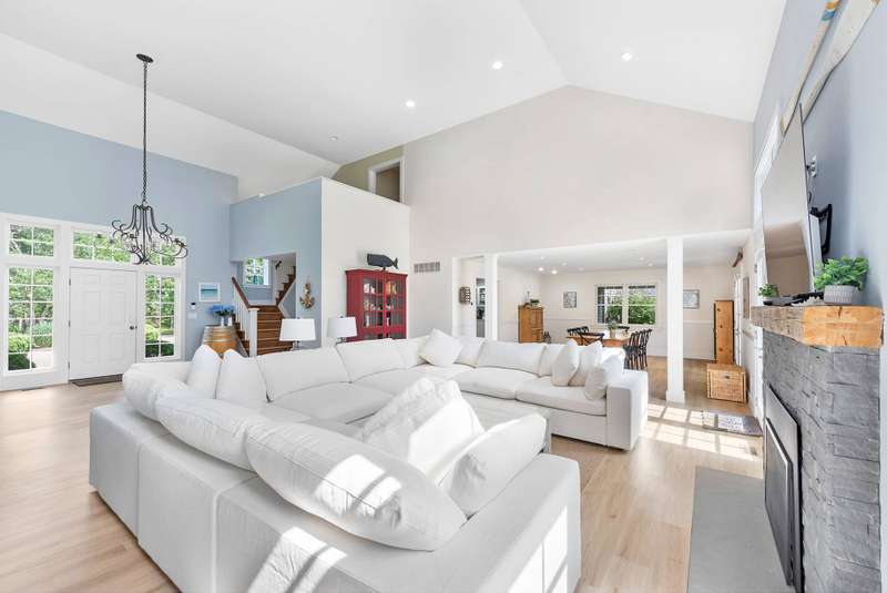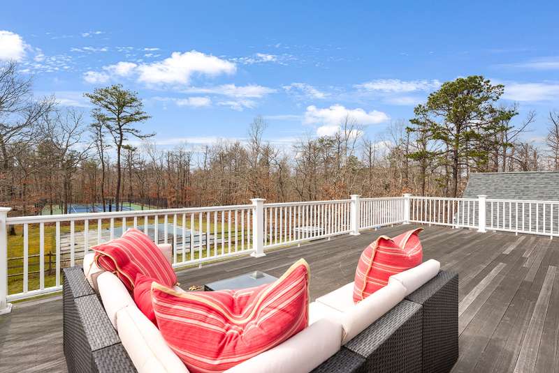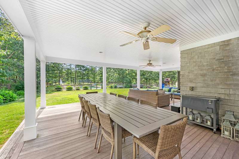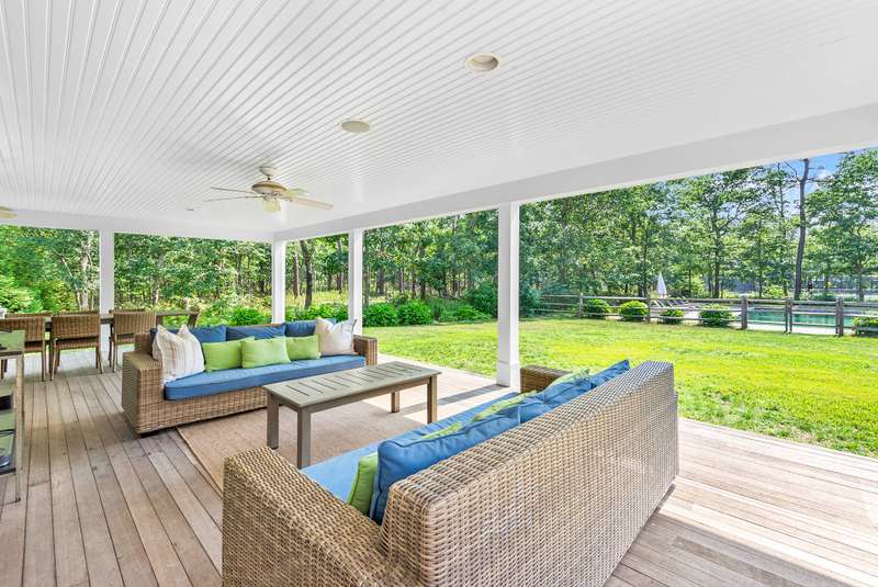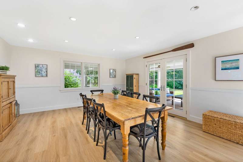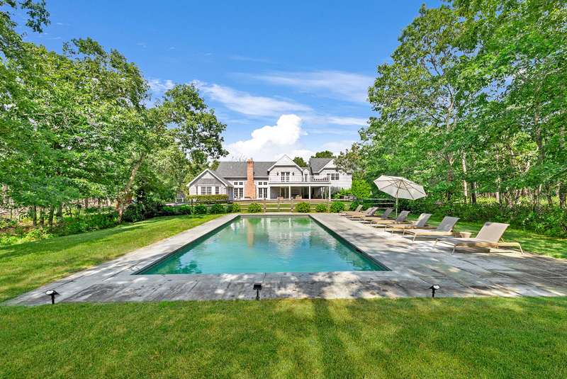 Rental Reg. # 24-1034. Privacy abounds in this beautifully renovated Wainscott traditional home. Sited on 5.5 acres with deco turf tennis/basketball. This 4500 Sq ft with 2500 sq ft lower level, 7 bedroom, 6.5 bath home is the perfect summer rental. As you enter the grand open living areas, you are greeted with tons of natural light from a wall of French doors that open to expansive outdoor deck area. The living room flows into dining area and huge eat in renovated chef's kitchen with island seating, marble counter tops, stainless steel appliances, and breakfast area with window seating. Bedrooms and baths consist of a first floor primary suite with vaulted ceilings, access to the backyard and a renovated expansive en -suite bathroom. There is another main floor bedroom as well. The second floor boast an additional primary bedroom with double granite vanity and soaking tub and access to a 2nd floor decked balcony. There are 3 additional oversized en-suite guest bedrooms. The newly finished lower level consists of two more bedrooms, movie/media room and gym. The back deck has expansive covered seating and dining areas with outdoor kitchen with DCS grill that looks onto a beautifully landscaped yard and 20X40 heated gunite swimming pool. Beyond the pool lies the tennis court with basketball net that is perfect for all sports lovers. Other features include a new Jacuzzi, a two-car garage, and an outdoor shower. There's easy access to East Hampton and Sag Harbor villages! Prime location and close proximity to both bay and the ocean beaches. Listing ID: 910462