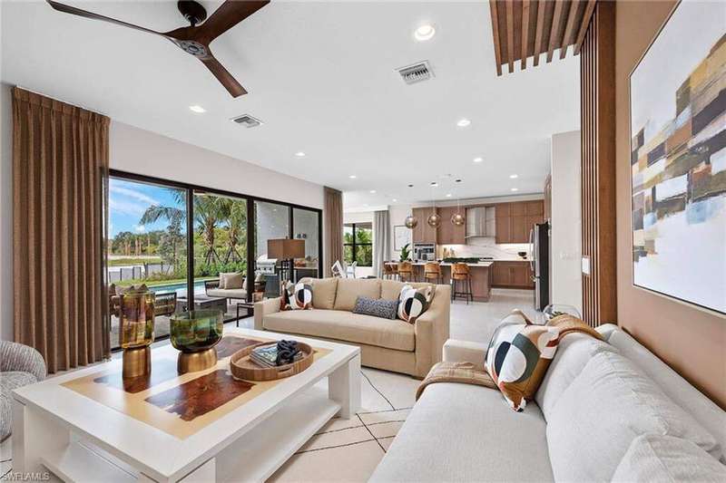 New construction available for August / September Occupancy! This "Cascade" home with Lake View offers Impact Resistant Windows throughout and has 5 Bedrooms plus a Loft, 7 Baths, and a 2-Car Garage, an open kitchen with stainless steel GE Appliances including Gas Cooktop and Quartz Countertops. The master bedroom offers a coffered ceiling, spacious closets and a master bath with separate shower and tub. Other features include: Glass Entry Door, 24 x 24 Tile in Main areas, Wood flooring in Loft, extended width of driveway and more! RiverCreek is Estero's hottest new gated community and features numerous amenities for everyone including a 12,000 square foot Clubhouse with Resort-style pool, event room, fitness center, indoor sports court, tennis, pickleball, basketball and more! Note: Photographs are the Cascade Model, not the actual home.