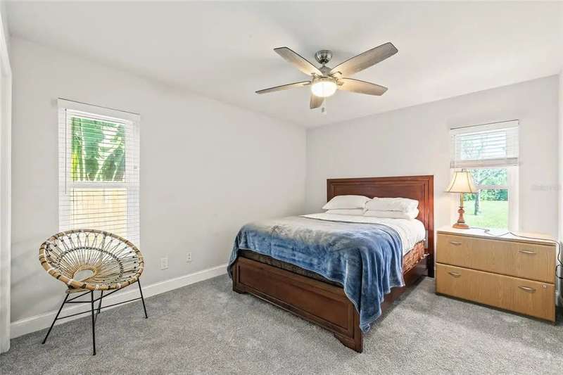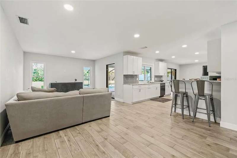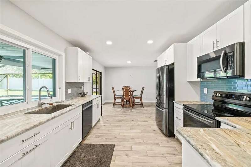 Welcome to 1624 Pine Place, an inviting and updated 2-bedroom, 2-bath home tucked away on a quiet cul-de-sac in the sought-after Windsor Woods neighborhood. This spacious home offers 1,716 square feet of comfortable living space with a thoughtful split floor plan, a fully updated kitchen with modern cabinetry and appliances, a formal dining room, and a light-filled living area featuring crown molding and a charming bay window. The oversized primary suite includes his-and-hers closets and an updated private bathroom with a walk-in shower, while the second bathroom remains in its original, well-kept condition. Step outside to your own private oasis with a large screened-in pool, surrounded by mature trees on a generous .30-acre lot. Most of the windows have been replaced, and the oversized two-car garage provides ample storage. Located in an X flood zone with no history of flooding, this home offers both peace of mind and a wonderful lifestyle in one of the area's most established and welcoming communities, while being only just a short drive to the beach!