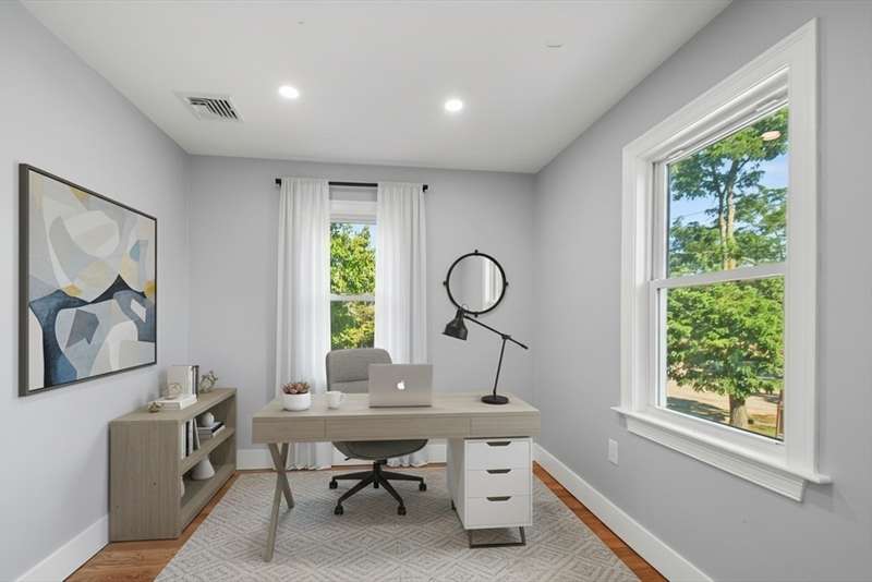 PRICE IMPROVEMENT! Now offered at $799,000 Beautifully Updated Colonial in Prime Wilmington Location! Nestled on a desirable corner lot, this move-in-ready home offers the perfect blend of classic charm and modern updates—just moments from Silver Lake Beach and Fullerton Park, ideal for outdoor enthusiasts and summer fun. Inside find a bright, open-concept main level featuring gleaming HW floors, recessed lighting & a spacious living and dining area perfect for entertaining. The heart of the home is the stunning kitchen, complete with granite countertops, a center island with breakfast bar, SS appliances, and slider leading to a low-maintenance composite deck and fenced backyard—great for gatherings or quiet evenings at home. Upstairs, the private primary suite includes a beautifully appointed bath, while two add'l bedrooms, a full bath & a dedicated home office provide flexible living options for today’s lifestyle. Central air, tank-less hot water & a detached garage! Move in ready!