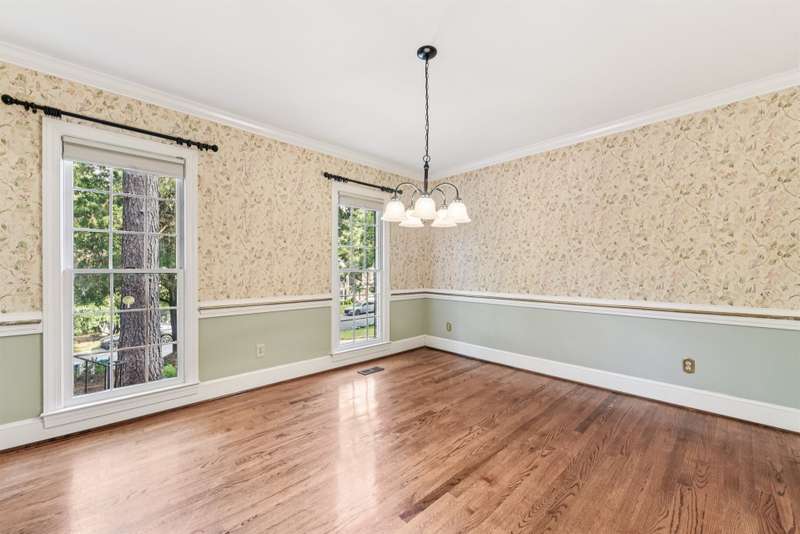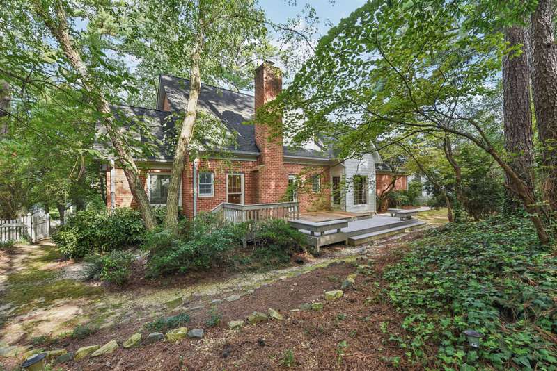 Charming Cape Cod style, full brick home in the heart of Winterbrooke. Conveniently located within minutes to Matthews, the Arboretum, Stonecrest and SouthPark. This home is nestled in mature landscaping with a fully fenced in wooded, private, backyard with large deck. Original hardwood floors throughout the main with carpet in the primary bedroom & tile in the kitchen. Good natural light throughout. Primary bedroom, walk-in closet and on suite on the main! Fireplace in family room, formal dining and eat-in kitchen with laundry and powder room complete the main floor. Two large bedrooms and full bath with a bonus room/4th bedroom make up the upper level. Looking for that cozy cottage feeling? Look no further than this great property just waiting for YOU to make it YOUR OWN! Priced to sell! Washer, dryer and kitchen refrigerator convey with acceptable offer. Two-car garage has plenty of room for trash cans and workspace. Don't miss out on securing this solid home at a FABULOUS price and MAKE IT YOUR OWN!