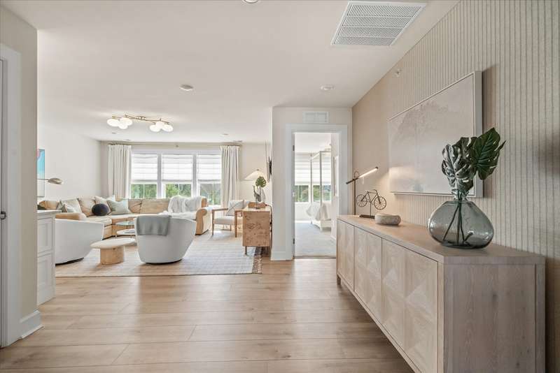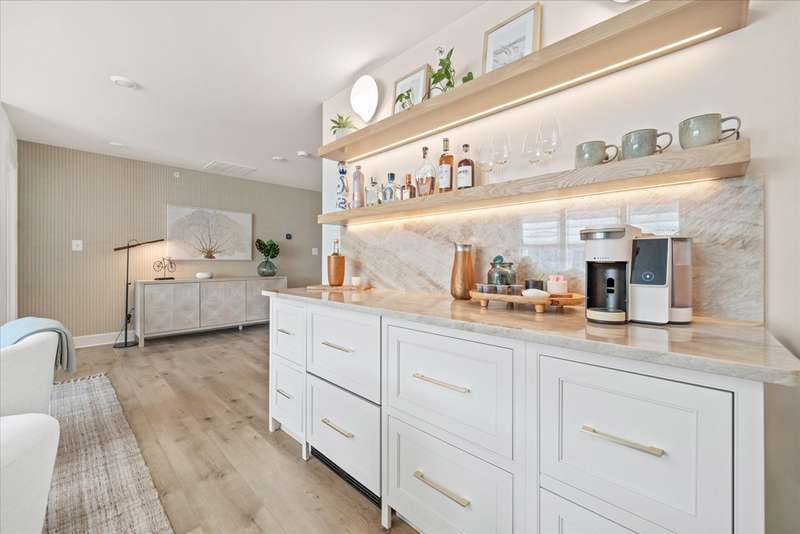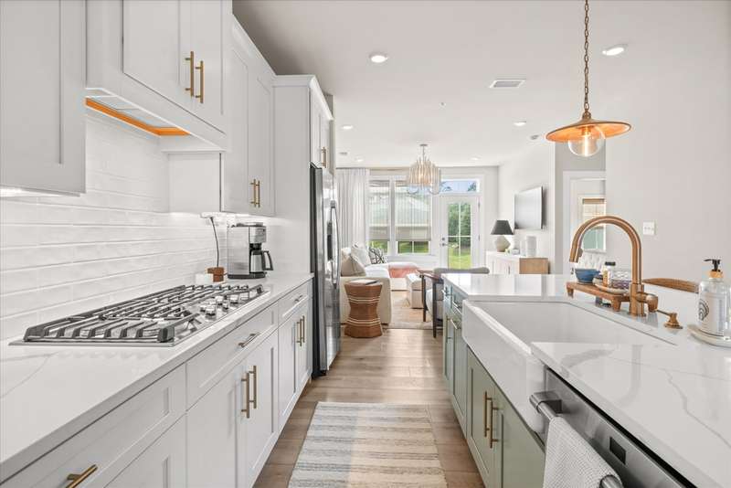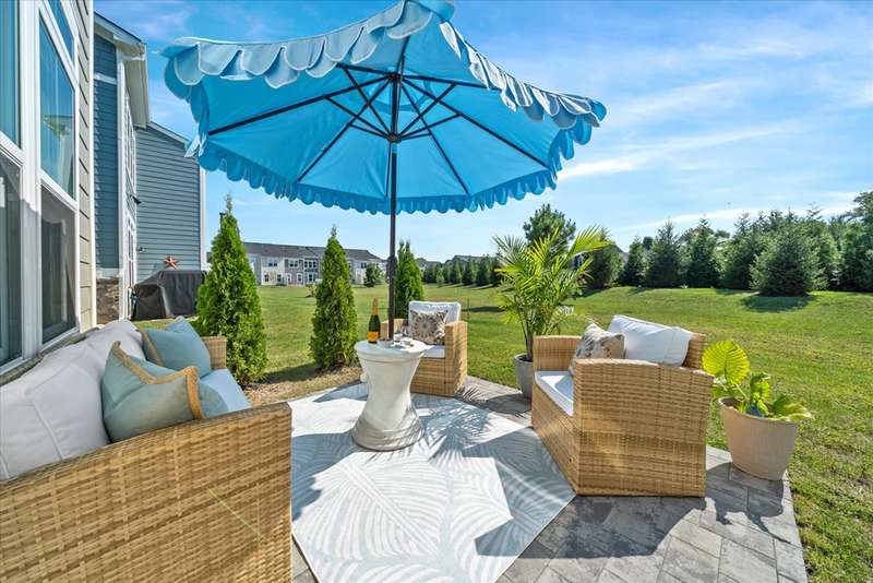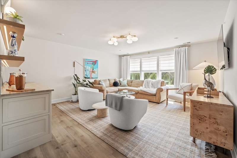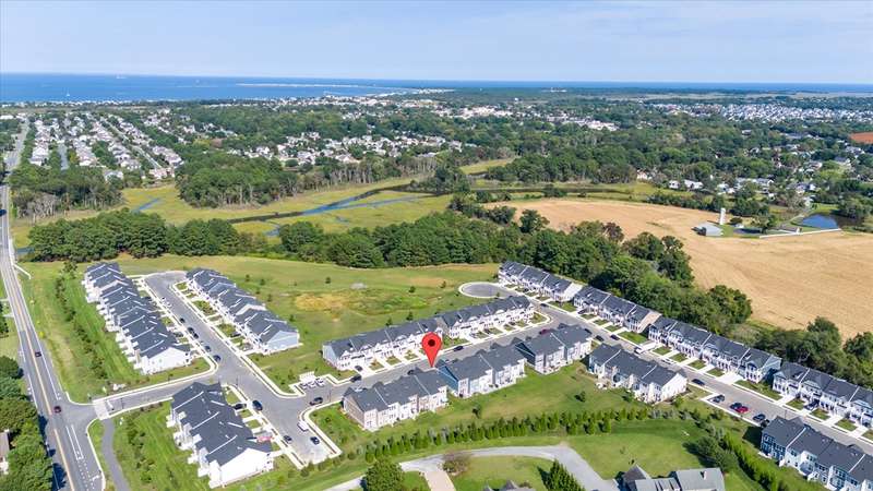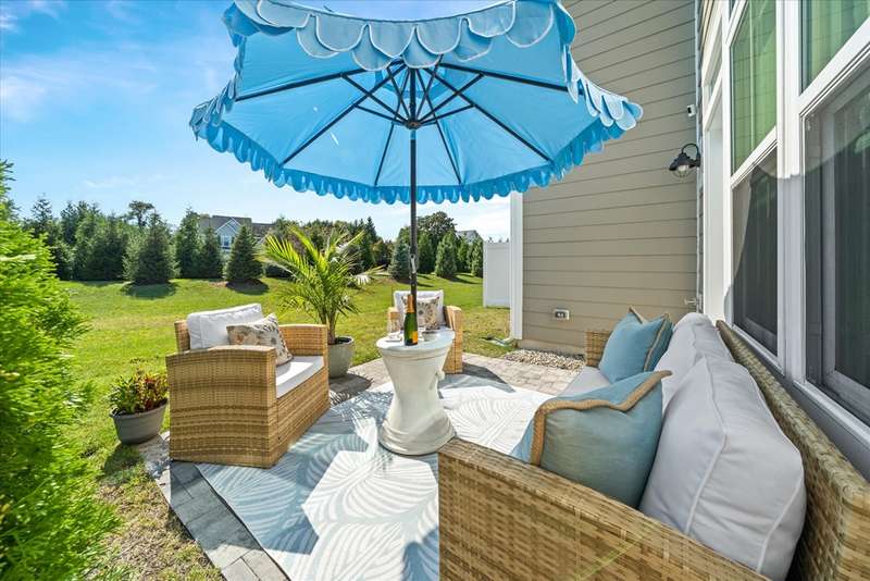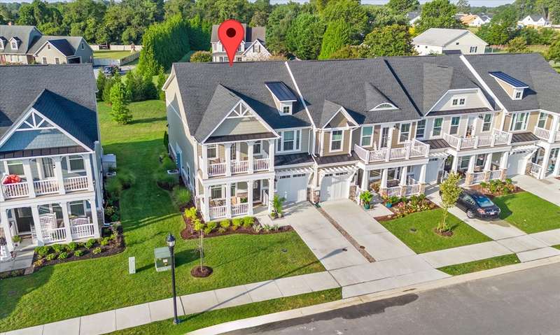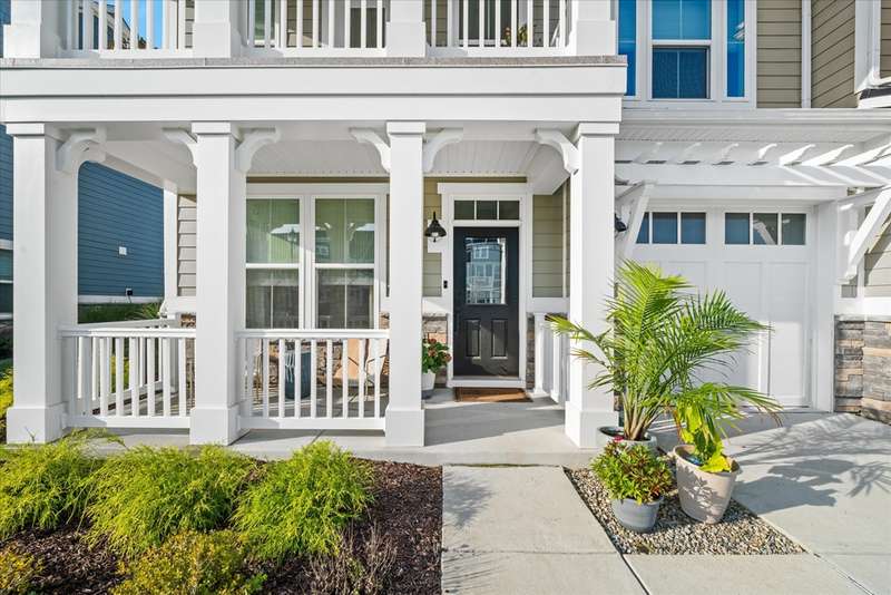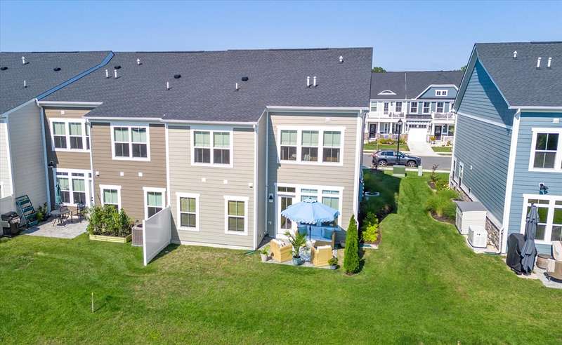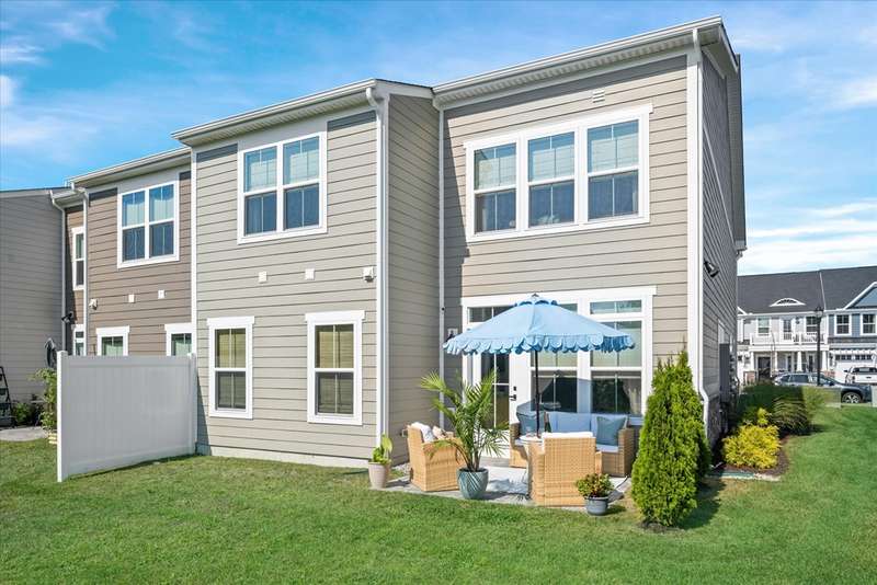 Welcome to Lewes Waterfront Preserve – a newer coastal community East of Route 1! Just one mile from downtown Lewes and minutes to the Breakwater Trail & Cape Henlopen State Park, this coastal retreat offers the perfect balance of convenience and charm. Whether you prefer a scenic walk or a relaxed bike ride, you are moments from the historic district’s boutique shopping, award-winning dining, the canal, and the beach. It’s the ideal location to enjoy everything this beloved beach town has to offer. This beautifully maintained end unit villa shows like a model home, with stunning curb appeal featuring HardiePlank siding, classic front columns, front and second-floor covered balconies perfect for morning coffee or watching the sunrise. Step inside to a bright, open-concept layout filled with natural light from additional windows—each dressed in custom shades and window treatments that are already in place for the next lucky owner. A soothing natural color palette and wide plank luxury vinyl flooring throughout the main living area evoke a relaxed, coastal vibe. The inviting foyer flows seamlessly into a sunny dining area and a chef-inspired kitchen, showcasing upgraded Cafe brand stainless steel appliances, quartz countertops, a timeless backsplash, and ample white shaker cabinetry with stylish hardware. The large center island features a ceramic farmhouse sink and offers the perfect spot for casual gatherings. The spacious living room opens to a charming paver patio and private backyard—ideal for unwinding after a beach day or enjoying a peaceful evening sunset. The main-level primary suite offers comfort and elegance, with a generous walk-in closet and a spa-like bathroom enhanced with designer finishes. A half bath and laundry area complete this level. Upstairs, a stunning oversized great room steals the show—perfect for entertaining family and friends. It features a custom-designed coffee bar with quartz counters, backsplash, built-in shelving with underlighting, and dual beverage drawers for added convenience. Three additional bedrooms and two full baths provide plenty of space for guests. Modern comforts include a tankless water heater, zoned HVAC for personalized climate control, and premium finishes throughout. The HOA fees are only $225 quarter and include lawn care, common area maintenance, trash service and snow removal. The community also offers a jog/walk path. Don't miss your chance to own a low-maintenance coastal villa in one of Lewes' most desirable and walkable locations. Live where others vacation—schedule your private tour today!