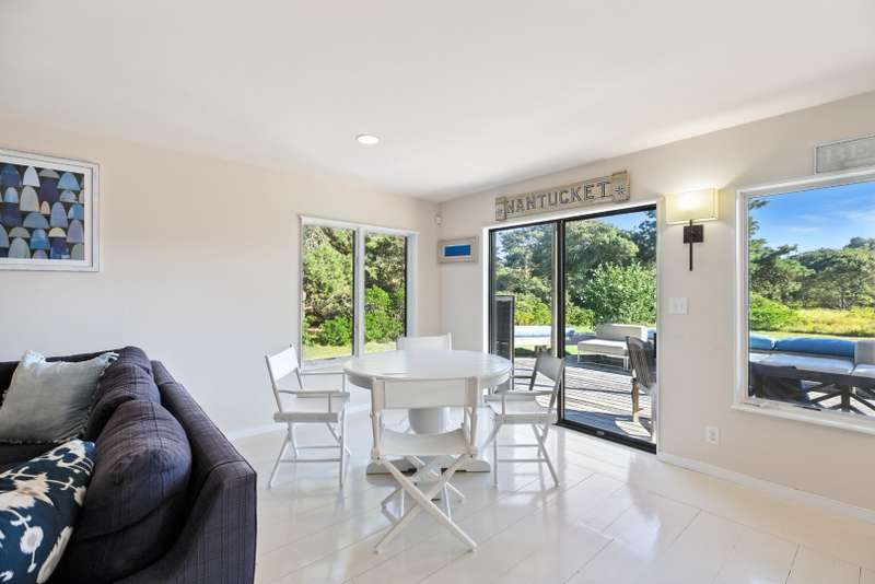 Set on a quiet street in a highly desirable location, this special property offers a rare combination of privacy, natural beauty, and versatile living. With distant ocean views and abutting Land Bank conservation land, it provides direct access to trails leading to Miacomet Pond and one of Nantucket s most pristine beaches. The 4-bedroom, 3-bath main house is designed to maximize light, views, and entertaining. Expansive decks, walls of windows, and a seamless flow between indoors and out make it the perfect setting for gatherings large or small. The 2-bedroom, 2-bath cottage with attached garage adds flexibility, ideal for extended family, guest accommodations, or a rental opportunity. This is not your typical Nantucket home. A refreshing departure in style, it blends light-filled spaces, ocean breezes, and a relaxed coastal lifestyle all within minutes of town yet tucked away in complete privacy.