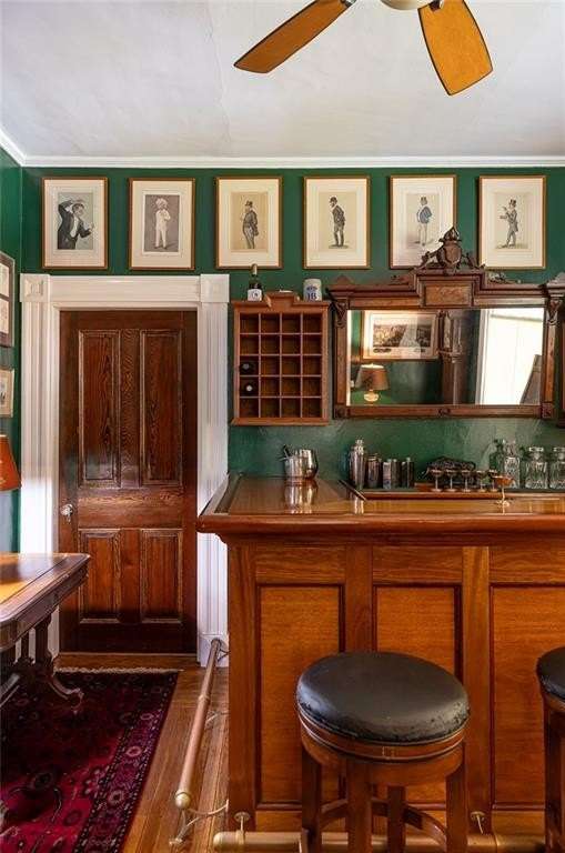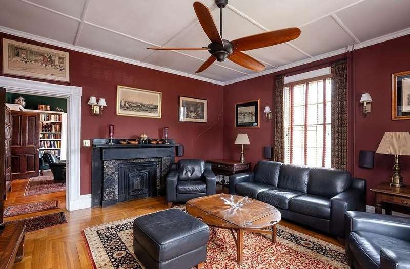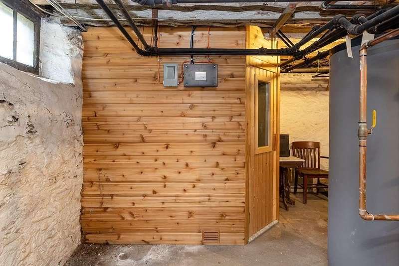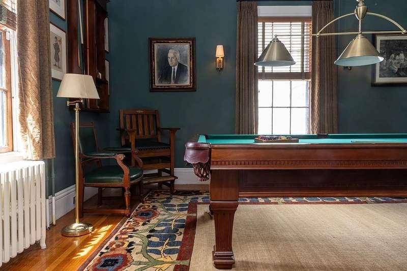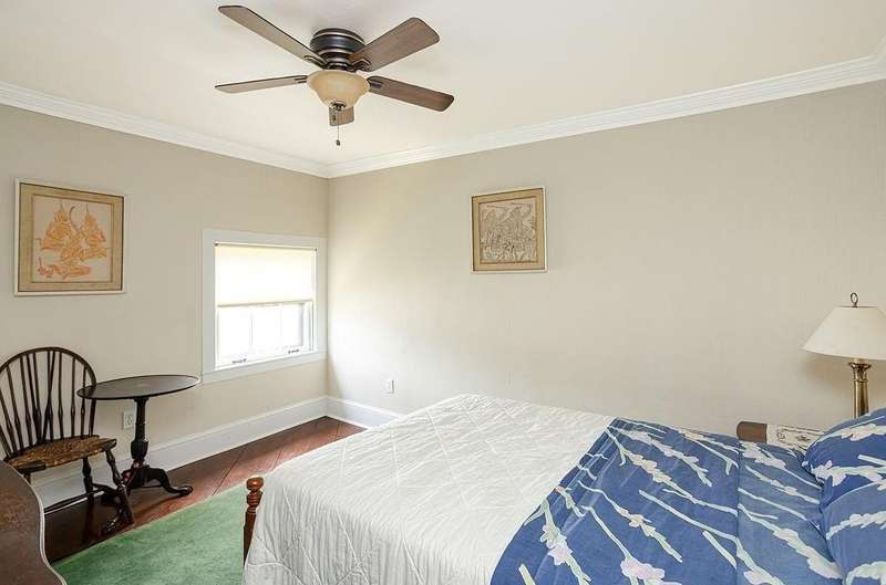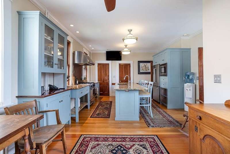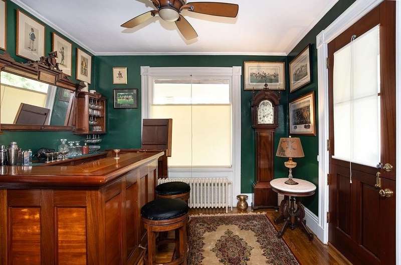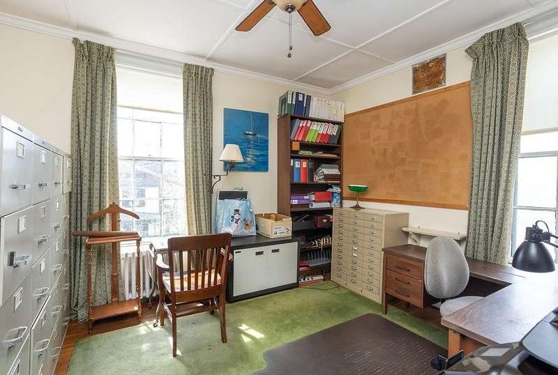 This stately Greek Revival is a commanding presence on Bull Street. Nestled among mature trees in a coveted in-town location, it offers grand proportions and period craftsmanship rarely found today. Built in 1842, Ten Bull St showcases a gracious central foyer, double parlors, a handsome library, three fireplaces, and a club-style bar. Soaring ceilings, oversized windows, and wide hallways reflect the refined aesthetic of mid-nineteenth-century Newport. The recently renovated kitchen, features a center island, quality appliances and a beverage refrigerator. Upstairs, a flexible layout includes parlor, den, office, three bedrooms, and a small kitchen—ideal for extended stays or creative reconfiguration. The third floor offers two additional bedrooms, a full bath, a cedar closet and unfinished space with potential. A gym, full bath and sauna are located in the basement. The 16,270 sq ft yard is partially fenced, with ample room for a pool, gardens, or outdoor entertaining. A two-car detached garage and additional parking are located behind the house at the end of a long gravel driveway. While some updates may be desired to restore it to its full glory, this distinguished property offers high style within easy walking distance to Newport's harbor, shops and restaurants and attractions.