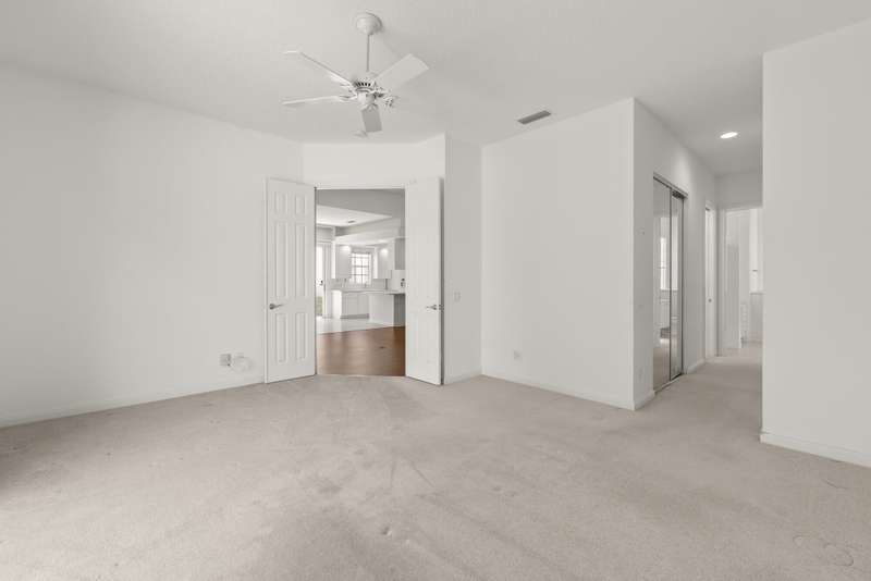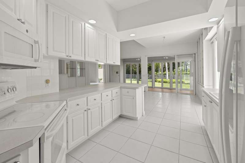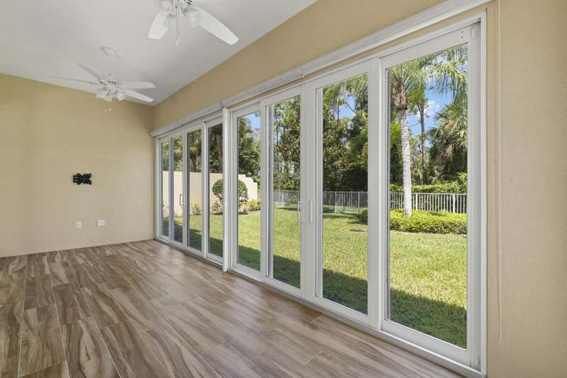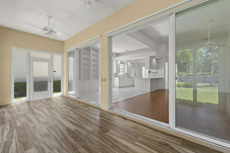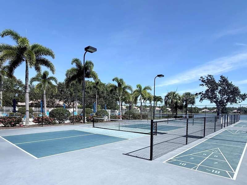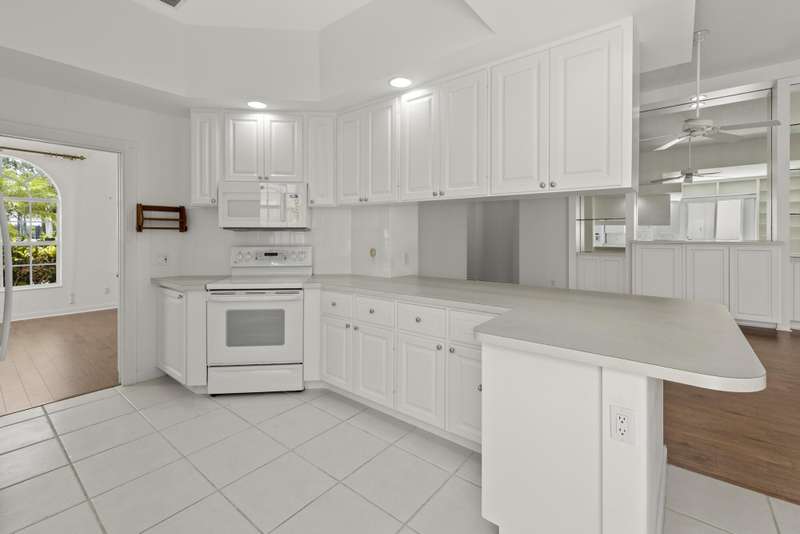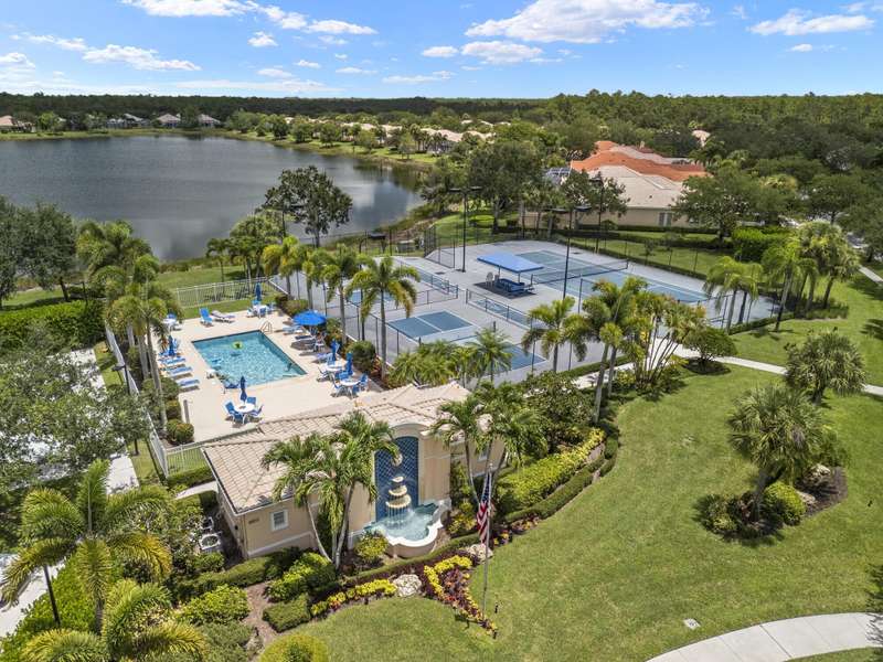 Welcome to Carleton Oaks - a private, gated Mediterraneana'style community offering the resort-style living experience with a clubhouse, community pool, lighted tennis and pickleball courts, playground, well-maintained walking trails surrounding the serene 12-acre lake. This original-pristine canvas features accordion shutters throughout, whole house generator for peace of mind, a separate sunroom with impact windows, fresh exterior paint, 2021 water heater, 2018 AC and NO polybutylene plumbing. The spacious CBS home offers 3 bedrooms with primary bedroom tuck away for privacy, and two original baths providing ample space to create your sanctuary. 8971 Oldham Way offers high vaulted 10a'ft plus ceilings, a den, 2 car air conditioned garage, fenced backyard with a view of lush preserve