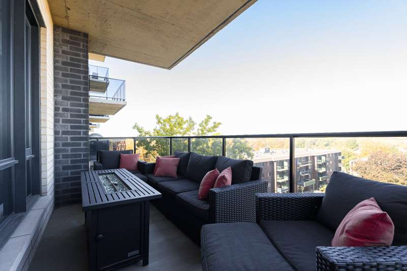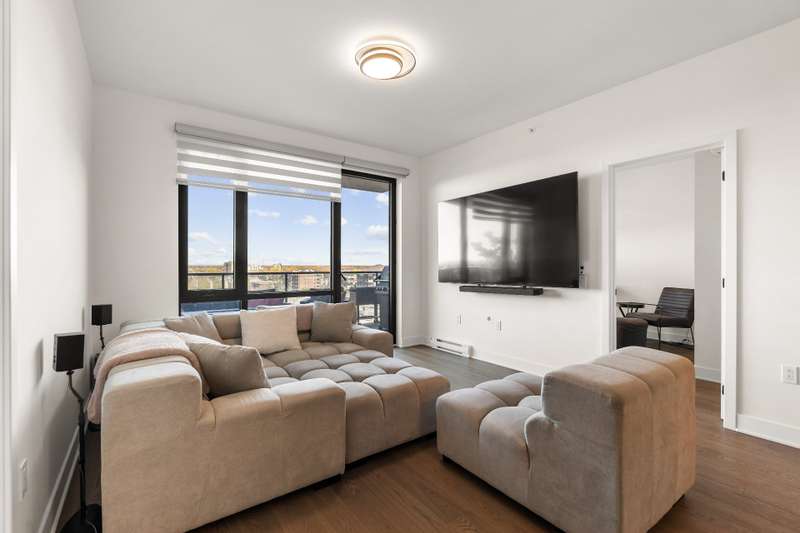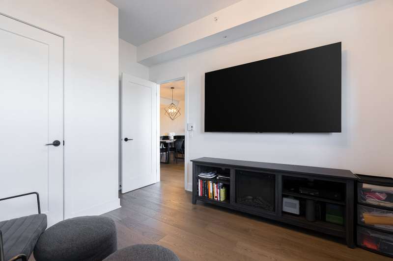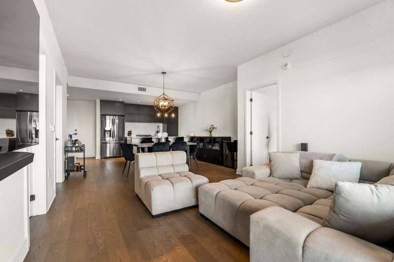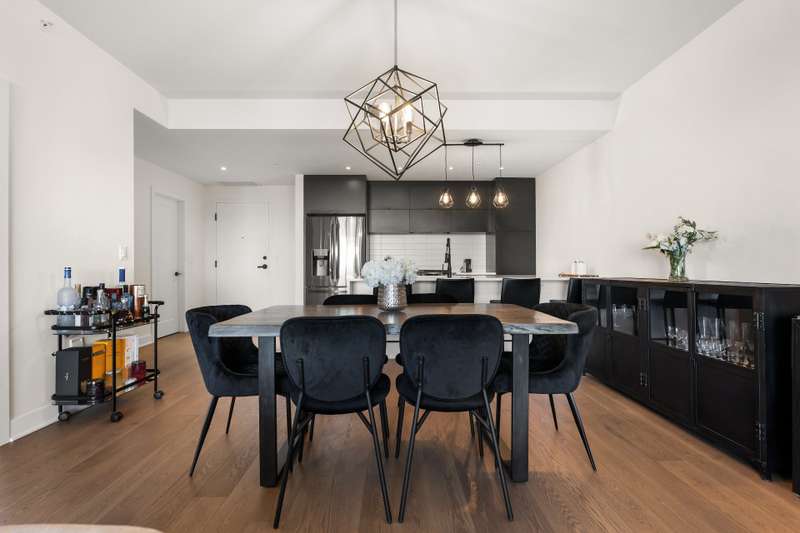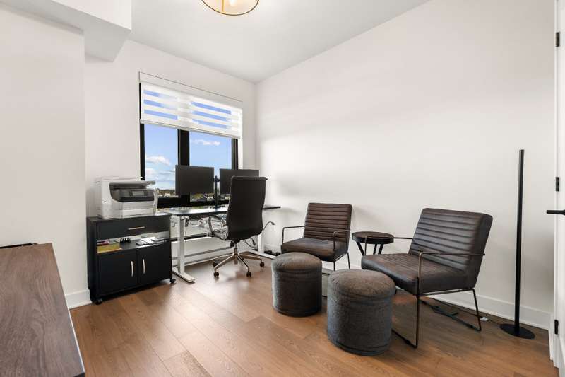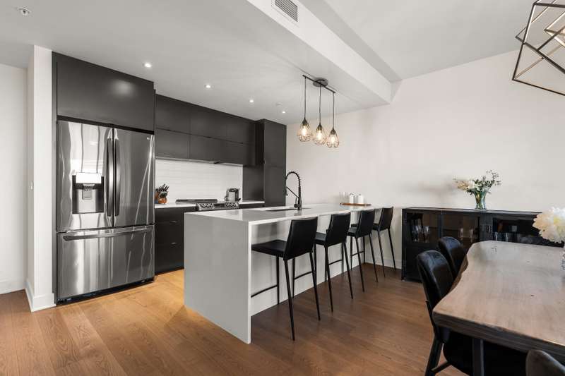 Welcome to The Baldwin! This stunning 6th-floor condo features an open-concept layout with high ceilings, a sleek gourmet kitchen with quartz waterfall island, and a spacious entry closet with separate laundry room. The primary suite offers a custom California Closet and spa-like ensuite. Enjoy a second bedroom/full bathroom, large balcony with unobstructed views, two indoor parking spaces, and a locker. Amenities include a gym, rooftop spa, terrace, common room, EV charging stations, Wi-Fi, and a kids park, among others.