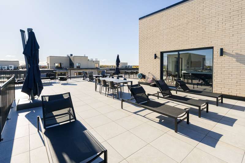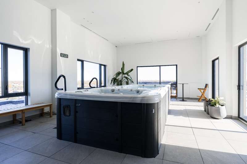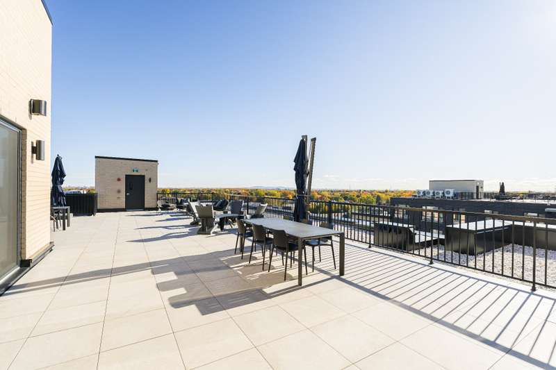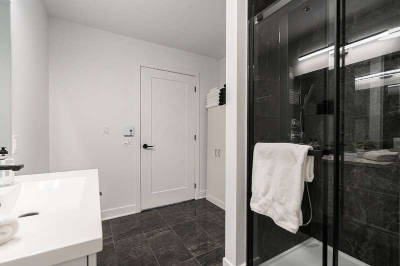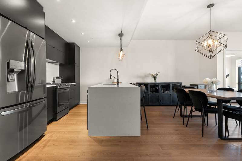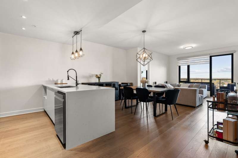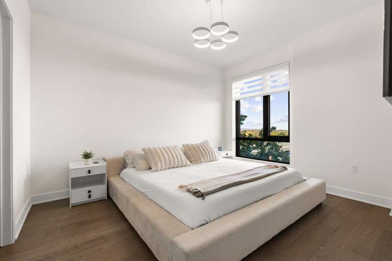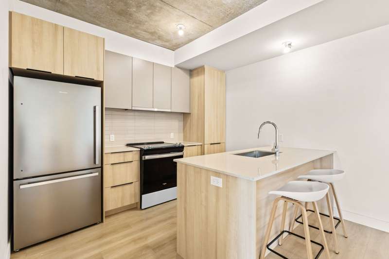 Welcome to The Baldwin! This stunning 6th-floor condo features an open-concept layout with high ceilings, a sleek gourmet kitchen with quartz waterfall island, and a spacious entry closet with separate laundry room. The primary suite offers a custom California Closet and spa-like ensuite. Enjoy a second bedroom/full bathroom, large balcony with unobstructed views, two indoor parking spaces, and a locker. Amenities include a gym, rooftop spa, terrace, common room, EV charging stations, Wi-Fi, and a kids park, among others.