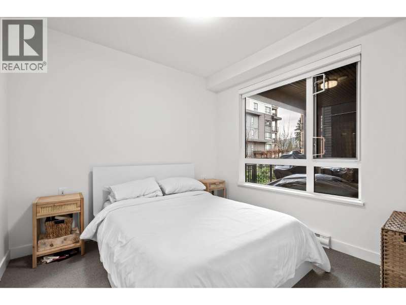 Welcome to The Oaks - a rare, ground-level home featuring two ensuites and one of the largest private patios in the building. This quiet, courtyard-facing 2 bed, 2 bath layout offers excellent bedroom separation and a bright, open-concept living space with 9´ ceilings, full-size appliances, gas stove, and a generous kitchen island. The oversized, walk-out patio is ideal for morning coffee, entertaining, or relaxing in privacy. Enjoy EV-ready parking, a large storage locker, and resort-style amenities: gym, theatre, lounge, BBQ area, playground, and more. Pet-friendly, rentals allowed, and ideally located in a vibrant, super central neighbourhood near Burquitlam SkyTrain, shops, restaurants, parks & SFU. Lots of visitor parking for guests. Don´t miss this one! OPEN HOUSE SUNDAY NOVEMBER 16TH FROM 1-3PM. (id:58403)