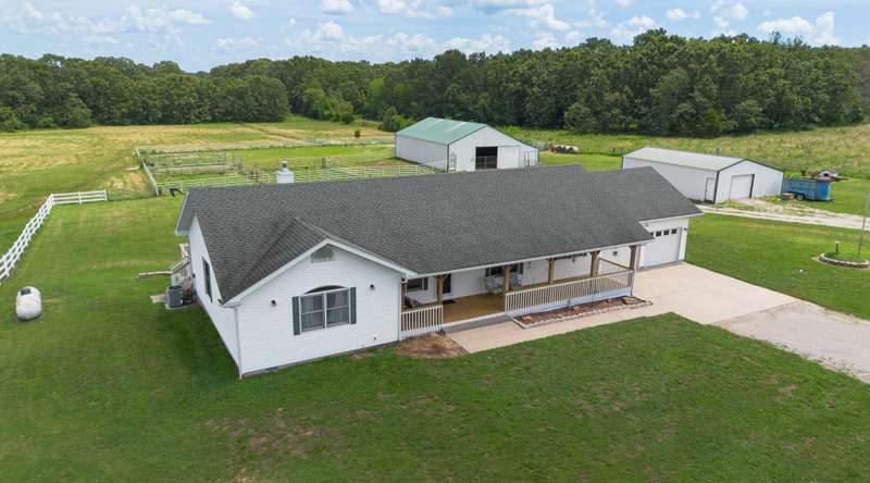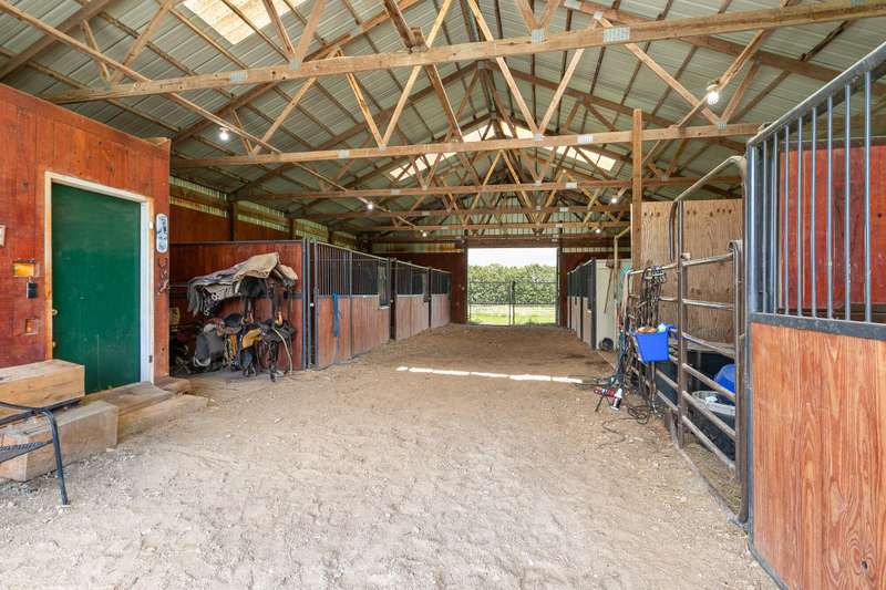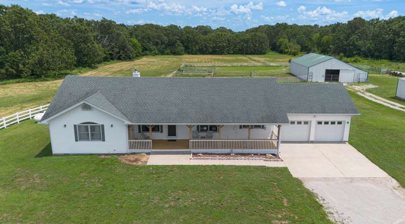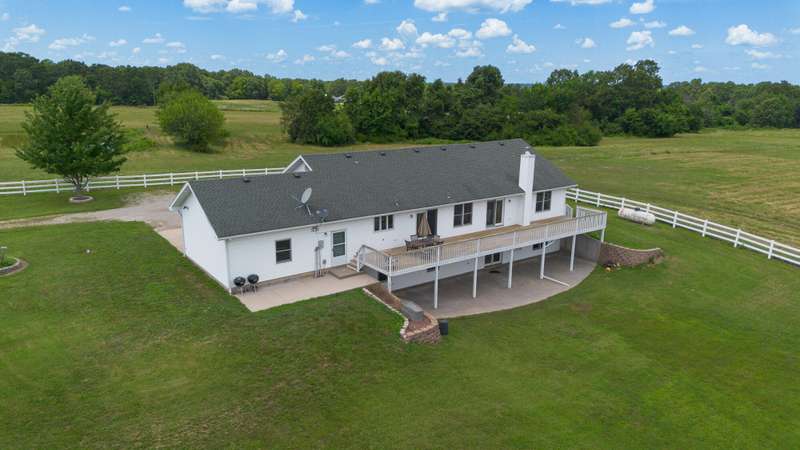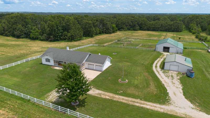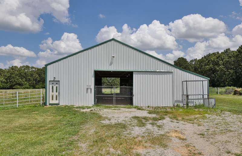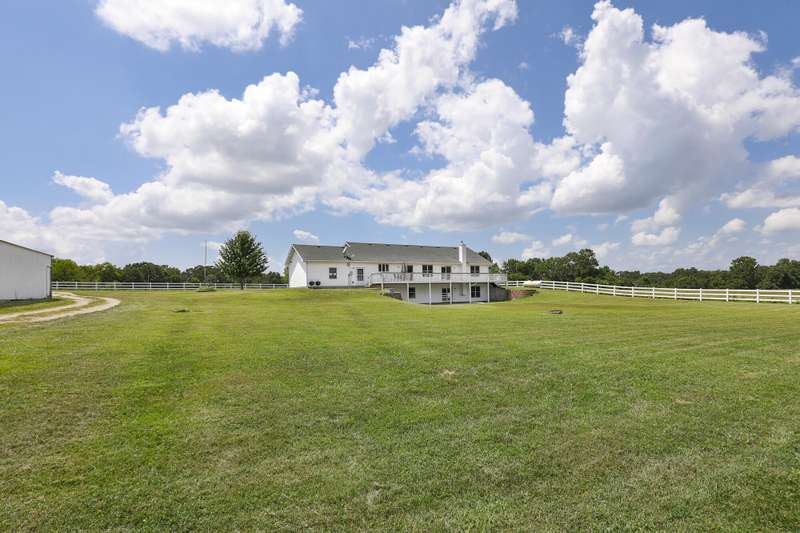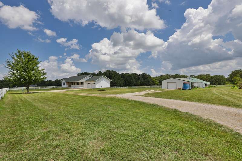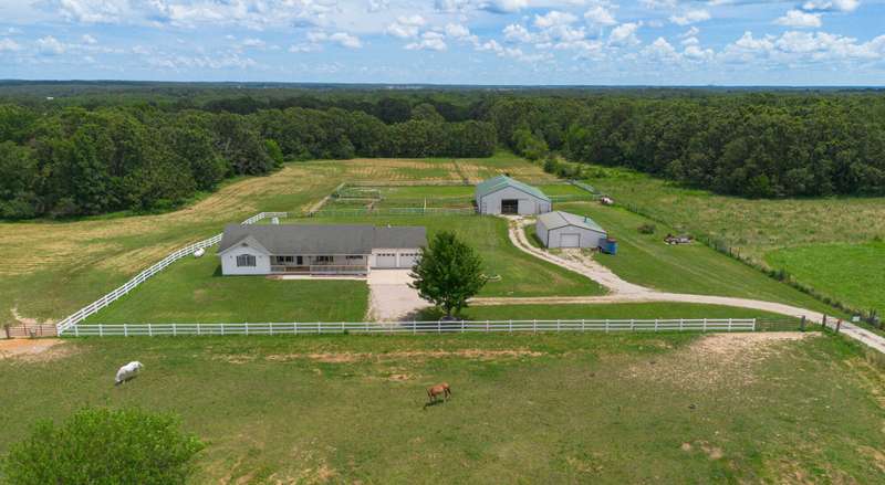 Stunning10 Acre Equestrian Estate with Remodeled Home, Stables & PondThis beautiful equestrian estate is a rare opportunity you don't want to miss--and it won't last! Nestled on 10 serene, park-like acres with a peaceful pond, this meticulously maintained property offers the perfect blend of luxury living and functional equestrian amenities.The newly remodeled home boasts just under 3,400 square feet, featuring 4 bedrooms and 3 bathrooms, all finished with high-end touches. You'll find granite countertops throughout, wide-plank hardwood floors, custom light fixtures, and automated blinds in every room. Expansive picture windows fill the home with natural light and offer breathtaking views from every room.The huge master suite overlooks the pastures and includes a spacious walk-in closet with a built-in gun safe. Enjoy your morning coffee on the covered back deck or patio as the sun rises, and wind down with spectacular sunset views from the covered front porch.The fully finished walk-out basement includes tile flooring throughout, two large bedrooms, a full bath, wood-burning fireplace, and five enormous closets, making it perfect for guests, family, or entertaining.Equestrian features include:6-stall barn, fully remodeled just 6 years agoCedar-lined tack room in excellent conditionLighted riding arenaThree fenced paddocksTwo separately fenced pasturesAutomatic waterersDedicated clean-up baySturdy, recently serviced fencing throughoutAdditional amenities:40x23 shop with garage door, electricity, and wood-burning stoveLean-to structure for hay storage or additional outdoor entertaining spaceThis property is perfect for horse lovers, hobby farmers, or anyone seeking privacy, comfort, and functionality in a truly idyllic setting. 2 neighboring child listings of 10 acres each are available for purchase as well.