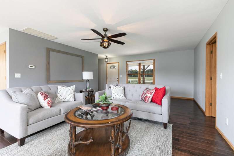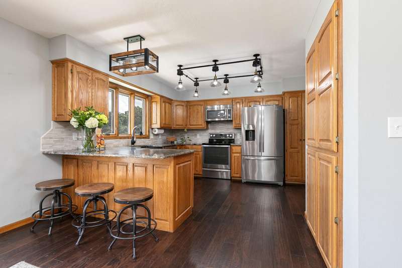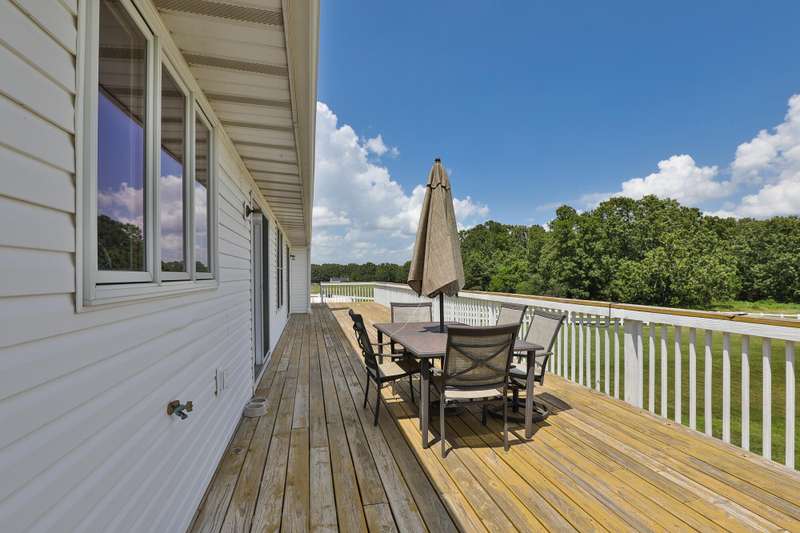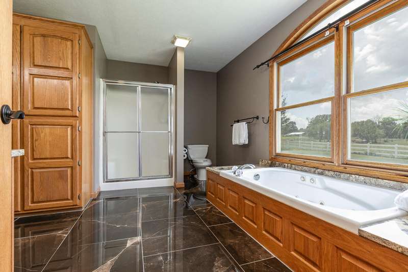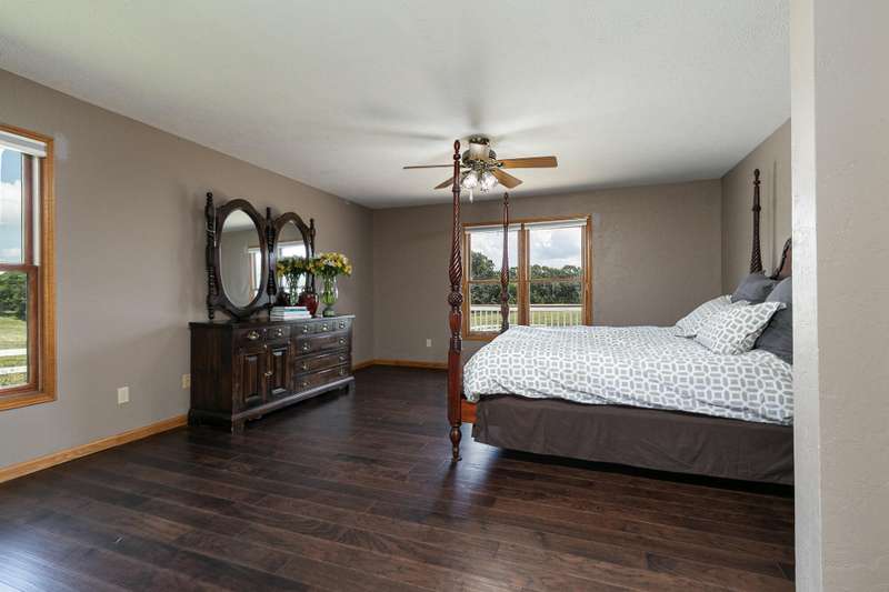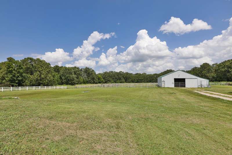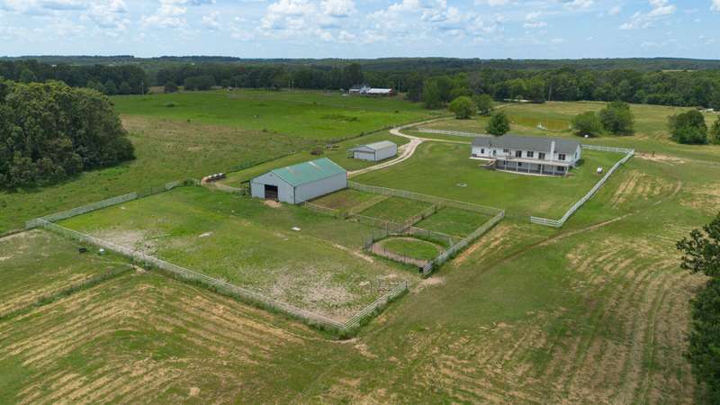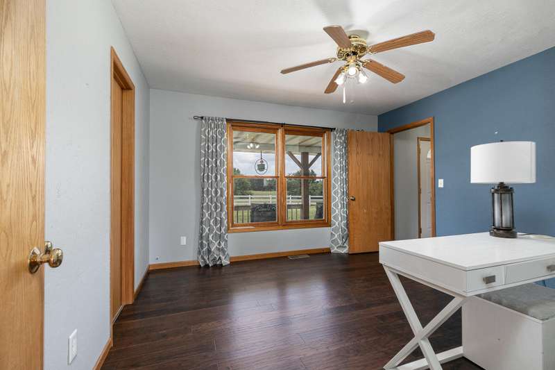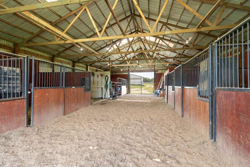 Stunning10 Acre Equestrian Estate with Remodeled Home, Stables & PondThis beautiful equestrian estate is a rare opportunity you don't want to miss--and it won't last! Nestled on 10 serene, park-like acres with a peaceful pond, this meticulously maintained property offers the perfect blend of luxury living and functional equestrian amenities.The newly remodeled home boasts just under 3,400 square feet, featuring 4 bedrooms and 3 bathrooms, all finished with high-end touches. You'll find granite countertops throughout, wide-plank hardwood floors, custom light fixtures, and automated blinds in every room. Expansive picture windows fill the home with natural light and offer breathtaking views from every room.The huge master suite overlooks the pastures and includes a spacious walk-in closet with a built-in gun safe. Enjoy your morning coffee on the covered back deck or patio as the sun rises, and wind down with spectacular sunset views from the covered front porch.The fully finished walk-out basement includes tile flooring throughout, two large bedrooms, a full bath, wood-burning fireplace, and five enormous closets, making it perfect for guests, family, or entertaining.Equestrian features include:6-stall barn, fully remodeled just 6 years agoCedar-lined tack room in excellent conditionLighted riding arenaThree fenced paddocksTwo separately fenced pasturesAutomatic waterersDedicated clean-up baySturdy, recently serviced fencing throughoutAdditional amenities:40x23 shop with garage door, electricity, and wood-burning stoveLean-to structure for hay storage or additional outdoor entertaining spaceThis property is perfect for horse lovers, hobby farmers, or anyone seeking privacy, comfort, and functionality in a truly idyllic setting. 2 neighboring child listings of 10 acres each are available for purchase as well.