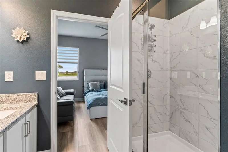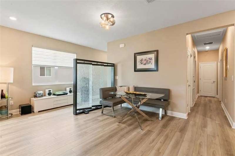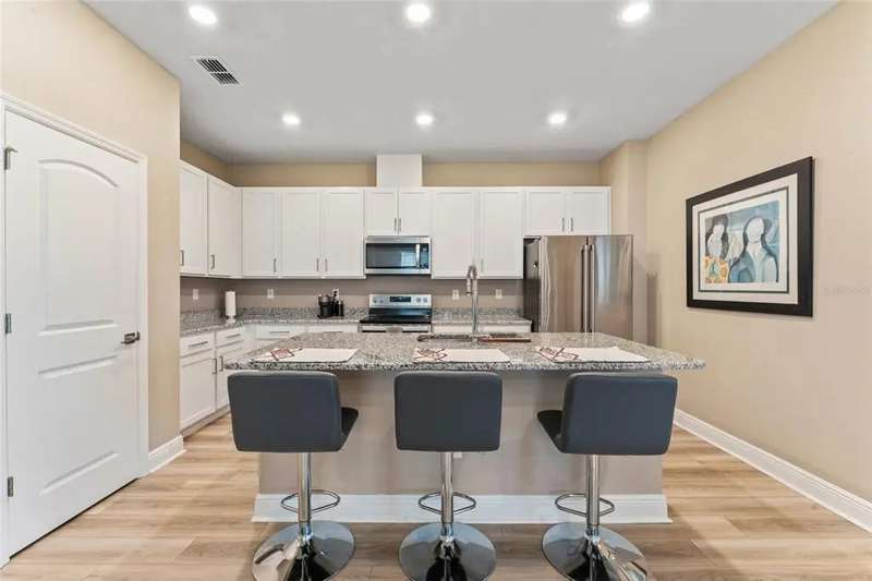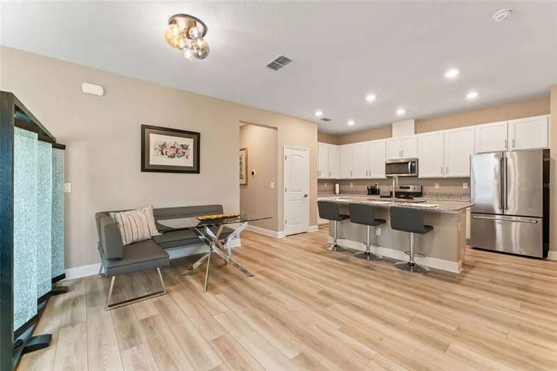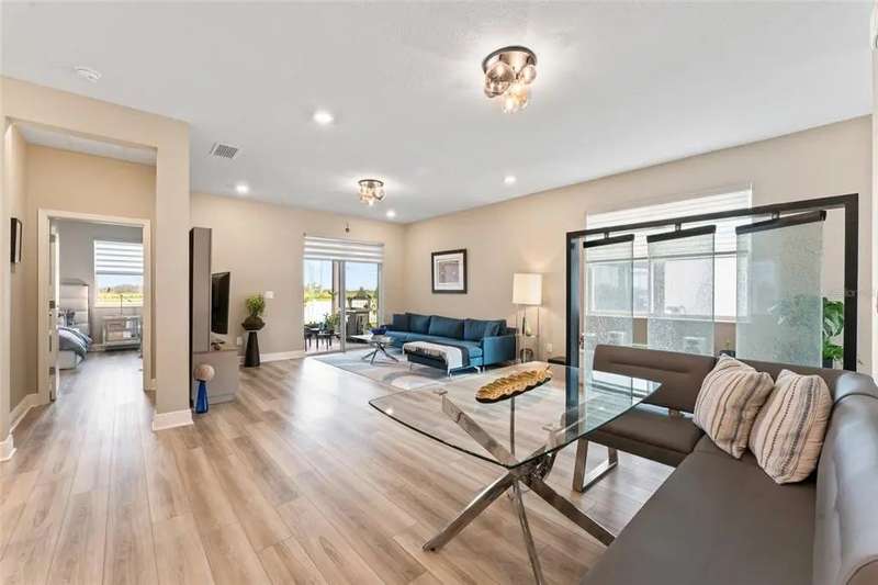 Seller is MOTIVATED!! Sawgrass Lakes features this beautiful 3-bedroom, 2-bathroom home with a stunning pond view. Luxury vinyl plank flooring runs throughout the entire residence. The kitchen boasts 42-inch white cabinets, granite countertops, and stainless steel appliances, and it overlooks the dining and living areas. The split-bedroom layout provides privacy for both guests and family. The primary suite includes a walk-in closet and a spacious en-suite bathroom. The secondary bedrooms also have walk-in closets. Relax and enjoy the pond view from the screened lanai with epoxy flooring. Additional upgrades include an epoxy garage floor, a vinyl-fenced yard, upgraded appliances, including a washer and dryer, knobs & handles on cabinets and drawers, custom lighting fixtures, upgraded paint, and enhanced landscaping throughout the exterior, pavered driveway and sidewalk.