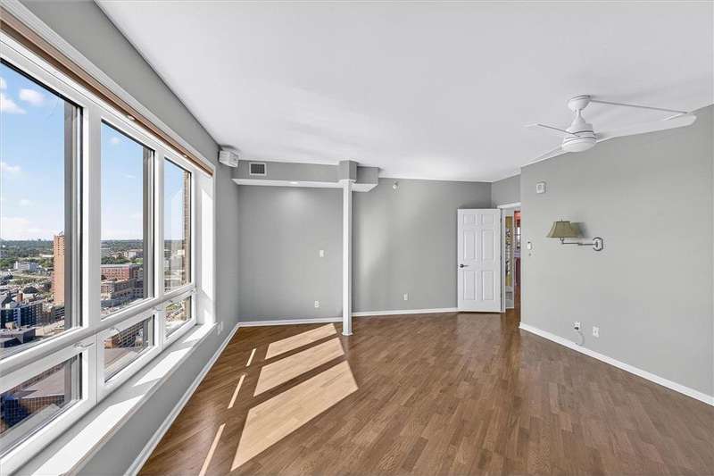 Immerse yourself in unique, panoramic views stretching from the Mississippi River to downtown St. Paul, the Minneapolis skyline and the Minnesota State Capitol. This 35th floor gem has a perfect open floor plan for entertaining and soaking-up the views inside and out. Two private balconies, a spacious dining room and open, updated chef style kitchen, two bedrooms, plus a separate office that could easily convert to a third bedroom and spacious laundry room welcome you. A fabulous wall of windows stretches across the living room. All new hardwood flooring and carpet in 2024 and freshly painted in 2025, plus many custom touches. The owner's suite has a LARGE walk-in closet, full bath with separate shower and jacuzzi soaking tub plus long views upstream on the Mississippi River to welcome you each day. The office has white oak built-in cabinetry and its own private balcony. The 2nd bedroom also has custom built-in bookshelves that also convert to a Murphy bed and a full bath. On-site management, double storage units and 2 assigned stalls in the heated garage. Located close to charming Mears Park and a short walk to the Mississippi River and CHS Field. You will be surrounded by restaurants, entertainment and nature.
