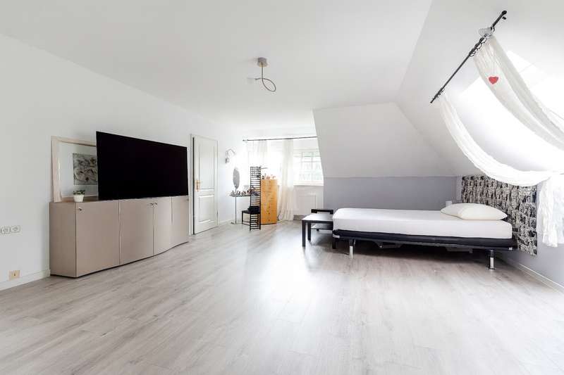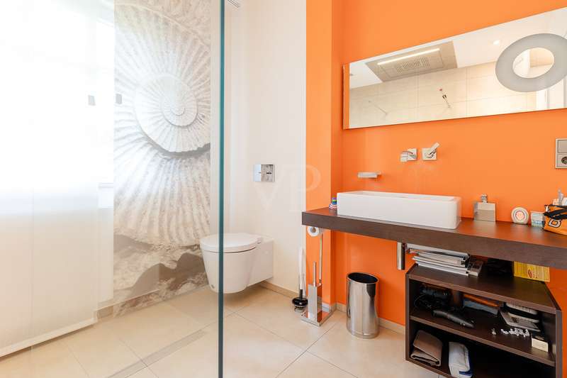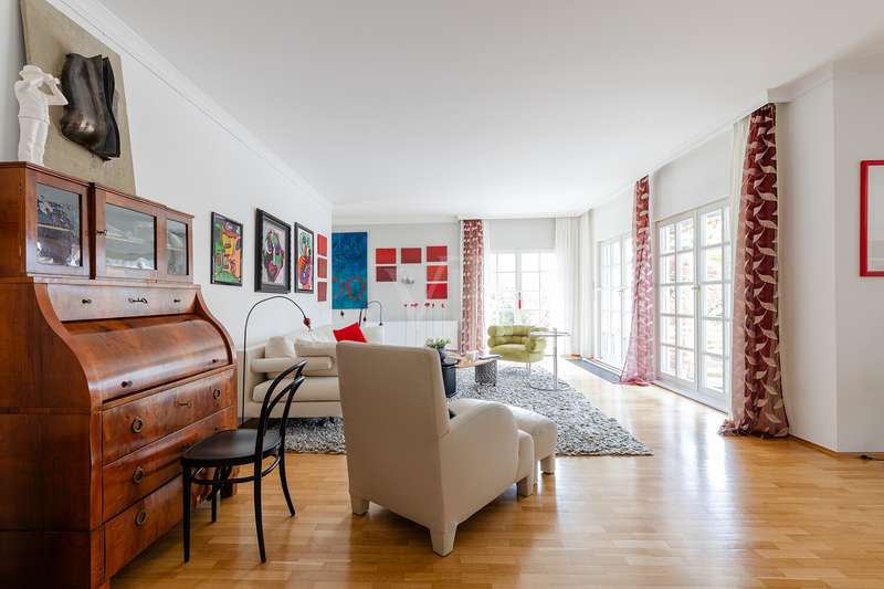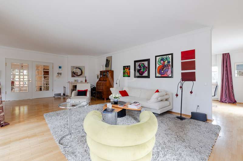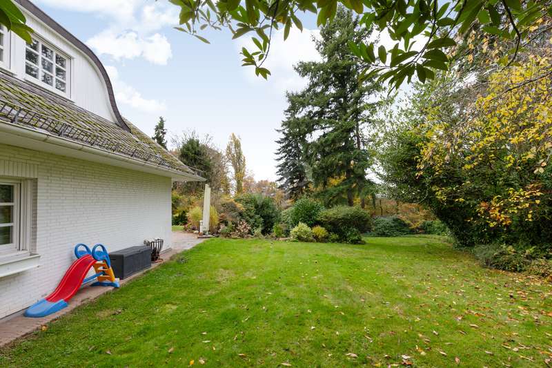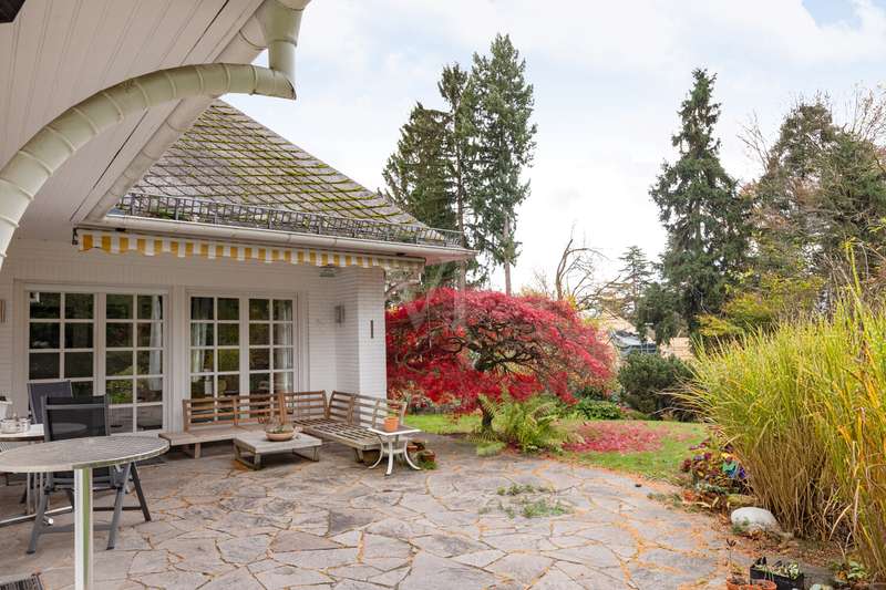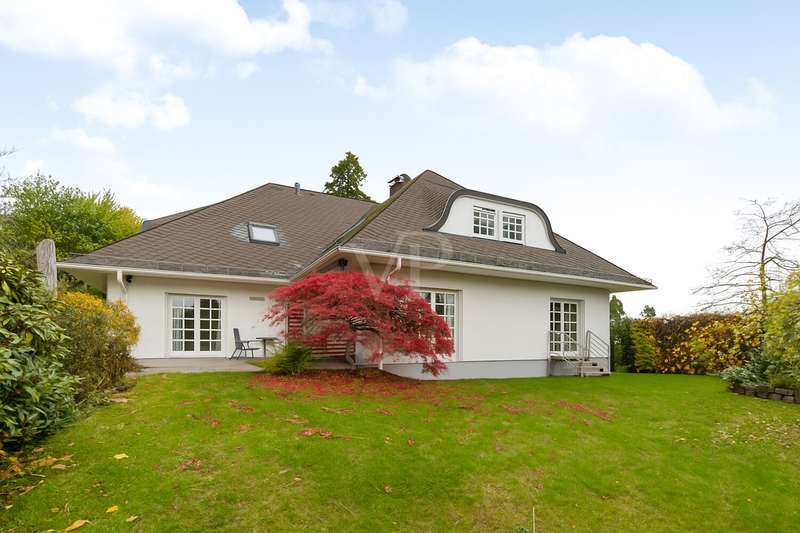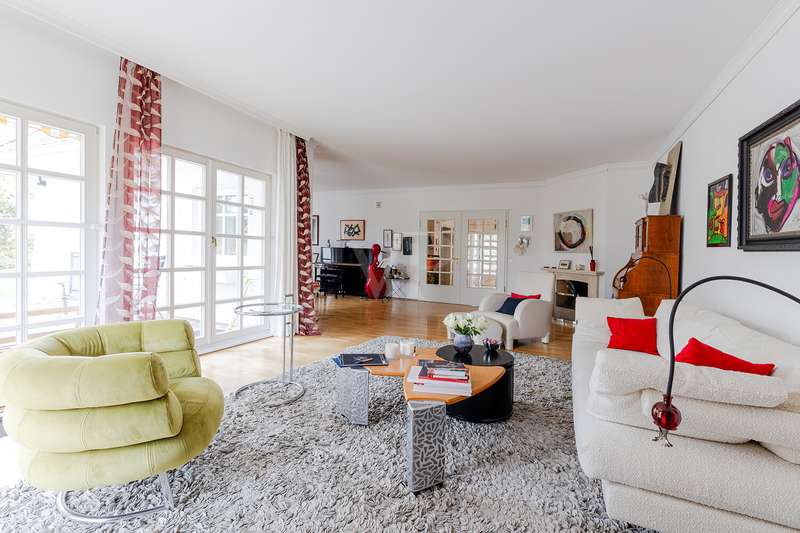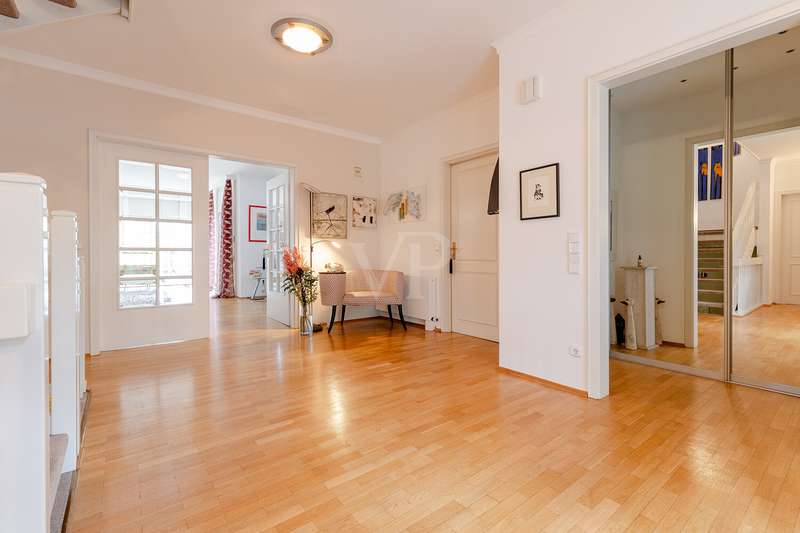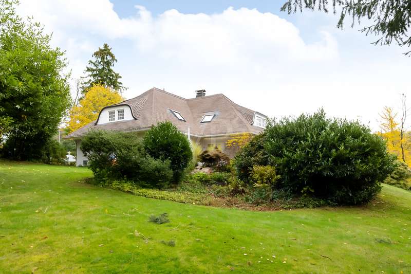 A prestigious home combines a classic ambience with modern functionality - this detached villa in a central yet quiet location in Königstein offers versatile living space and the highest level of living comfort on approx. 356 m² of living space. The property is set on a generous plot of around 1,868 m² and is in very good condition. Built in 1989, the property impresses with its timelessly elegant architecture and interior design. High-quality materials, excellent workmanship and carefully coordinated details can be felt in all areas of the house. Even the fascinating entrance area with its stylish staircase conveys generosity and special value. The floor plan unfolds into a light-flooded living and dining area with floor-to-ceiling windows that create a friendly, inviting atmosphere. The generously dimensioned double door opens up access to this central living area and enables a harmonious transition. High ceilings, ornate ceiling stucco on the first floor and the open fireplace as well as high-quality parquet flooring contribute to the exclusivity of the interior. The custom-made fitted kitchen sets the tone with a large cooking island, modern appliances and enough space for an additional dining table - the ideal meeting place for the family. You can receive your guests in the spacious dining room. Separate utility and technical rooms also ensure convenience and functionality in everyday life, offering optimal storage space and organization. The space on offer extends over seven rooms, including five bedrooms, which can be used flexibly as retreats or for other purposes. Four renovated and modern daylight bathrooms - some en suite - are equipped to a high standard and offer individual privacy. Custom-made built-in wardrobes provide storage space and ensure a tidy ambience. The private wellness area with sauna, shower and WC rounds off the offer. There is also a separately located garden shed with sauna option for relaxing hours in your own garden. The approx. 40 m² sun terrace invites you to linger and socialize and offers a wonderful view of the park-like garden with its ideal south-facing orientation. The comprehensive security concept meets the highest standards: Alarm system and burglar-resistant, bullet-proof wooden transom windows combine classic charm with state-of-the-art technology. Pre-fitted curtains, exclusive fittings and thoughtful details throughout underline the harmonious overall picture. The central heating, which was renewed in 2014, ensures pleasant living comfort all year round. The offer is rounded off by a spacious double garage with direct access to the house. This property combines high-quality fittings, well thought-out architecture and a location that makes life in Königstein special. Feel free to arrange a viewing - discover the potential of this exceptional home.