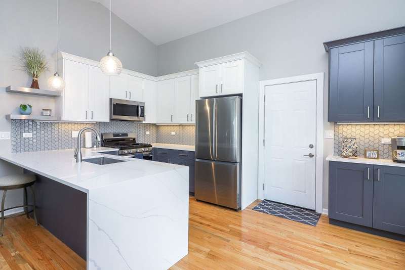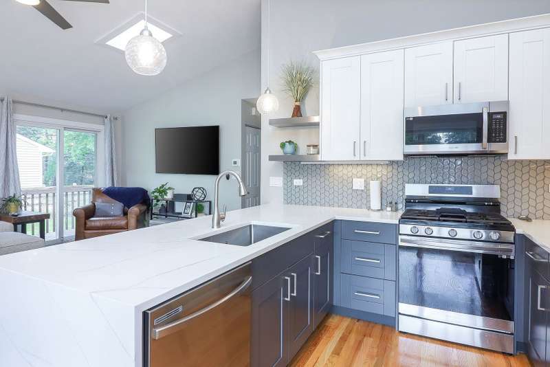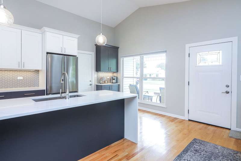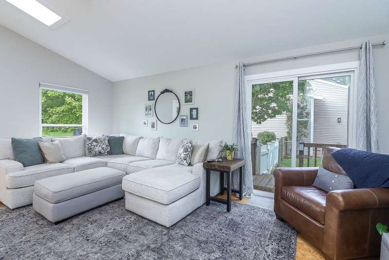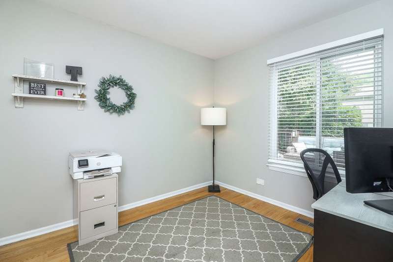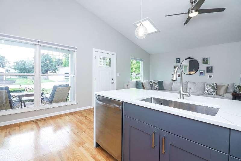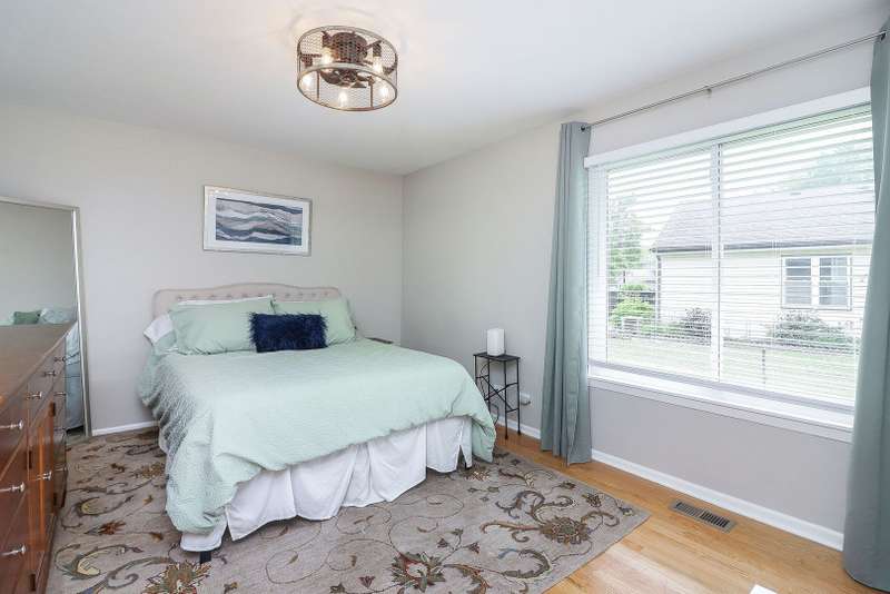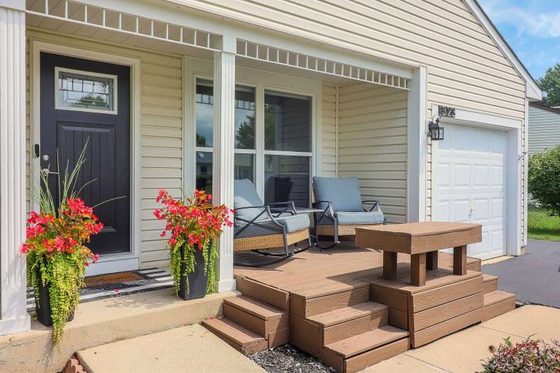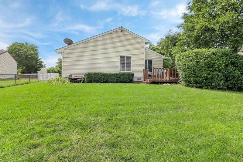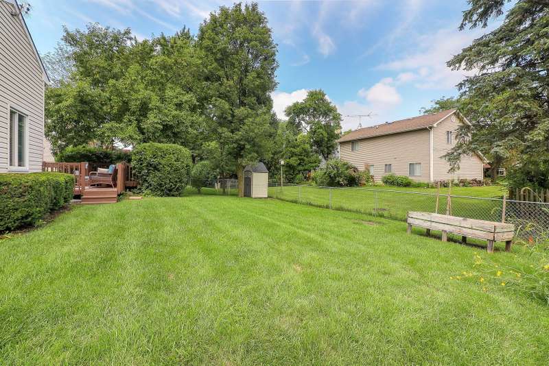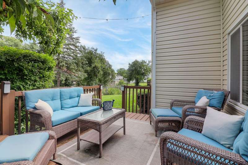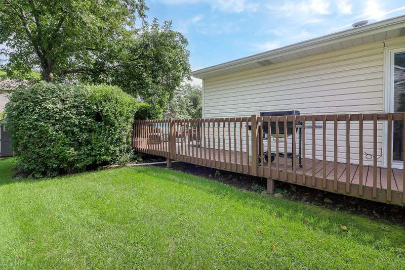 Welcome to this beautifully updated ranch-style home offering true one-floor living in a fantastic Naperville location! Step inside to an open floorplan filled with natural light from large windows and enhanced by updated lighting and hardwood floors throughout. The stunning kitchen features vaulted ceilings, quartz countertops with a waterfall edge, a glass tile backsplash, stainless steel appliances, and 42" custom soft-close shaker cabinets. The primary suite includes a private bath, and both bathrooms have been tastefully updated for modern comfort. A welcoming front porch sets the tone, while the fenced yard with a wraparound deck and composite shed provides the perfect space for entertaining or relaxing. Practical features include a two-car wide driveway, extra-deep garage, and excellent storage space. All this plus LOW TAXES, top-rated District 203 schools and easy access to shopping, dining, and miles of trails at nearby DuPage forest preserves including Whelan Lake and Knoch Knolls. This home is the perfect combination of style, convenience, and value-don't miss it!