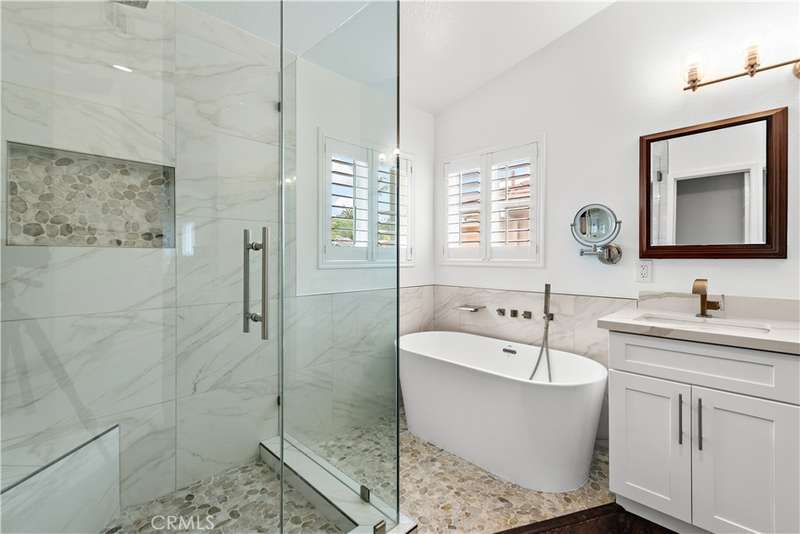 Welcome to 24 Drover--where timeless design meets modern comfort on one of Trabuco Canyon's most coveted streets. This beautifully renovated 4-bedroom residence offers exceptional livability with a highly sought-after downstairs room and bath, perfect for guests, multi-generational living, or a private office. Meticulously maintained and move-in ready, the home features updated finishes throughout and a thoughtfully designed floor plan that maximizes space and natural light. The living room includes vaulted ceilings and warm natural light all year round. The kitchen has been tastefully and thoughtfully upgraded with quartz kitchen island, gleaming white cabinets and stunning backsplash tile. Step outside to your private patio that includes a spa--an ideal retreat with elevated views overlooking the neighborhood, creating the perfect setting for morning coffee or evening relaxation. Experience pride of ownership and the rare blend of elegance, comfort, and location.