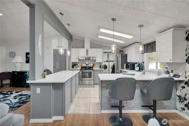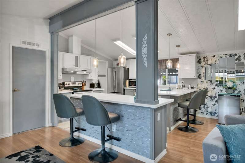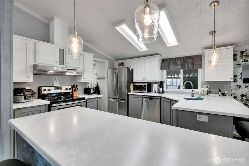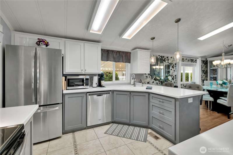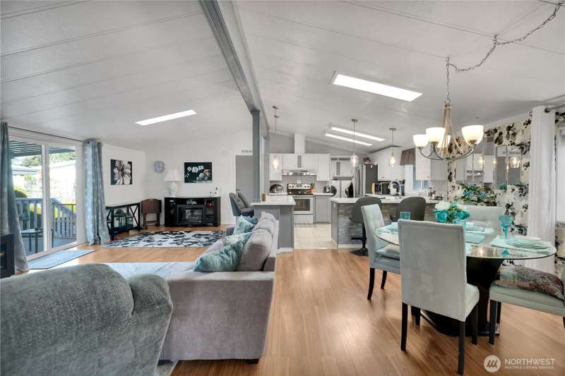 Move-in ready home in Pantera Lago Estates, a desirable 55+ community! This beautifully maintained manufactured home features a tastefully updated kitchen that opens to the spacious living area, perfect for everyday comfort and entertaining. The bathroom(s) have been refreshed, complementing the open-concept layout. Enjoy a newer covered side porch, a brand-new carport, and a generous storage area for added convenience. Just steps from the community clubhouse offering a swimming pool, hot tub, picnic area, and meeting room with a full kitchen. Ideally located near shopping, dining, freeways, Kent Station, and the Sounder train station. Ownership transfer must be approved by park management. Make this your new home.