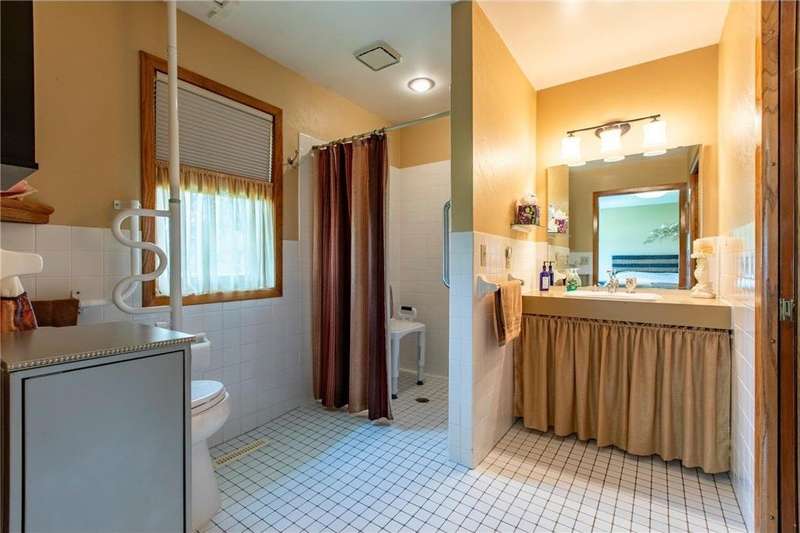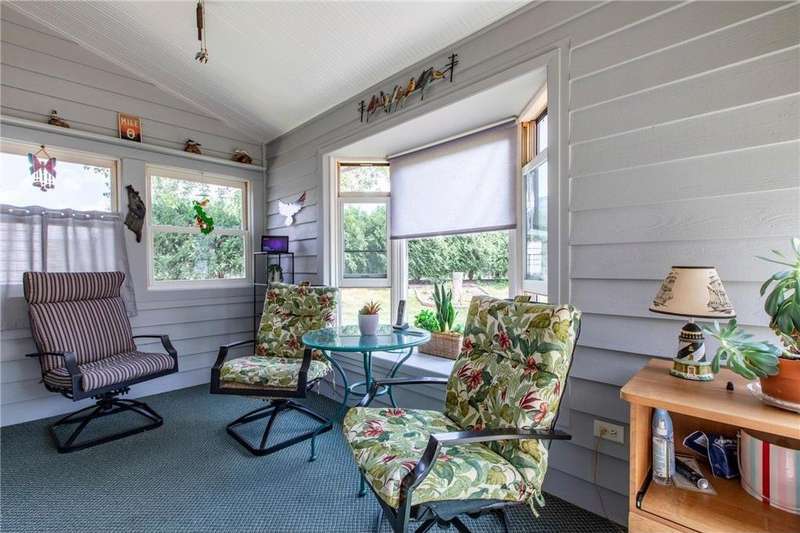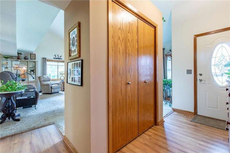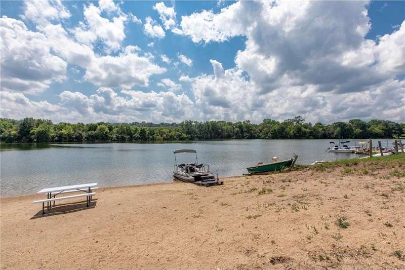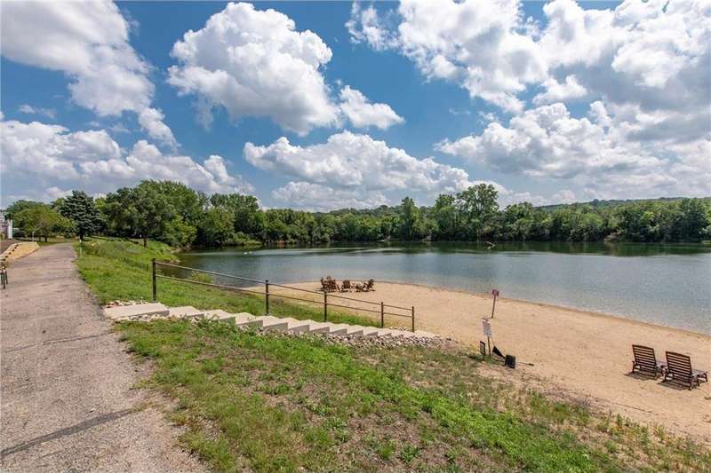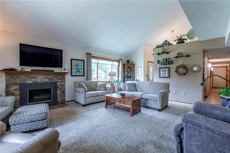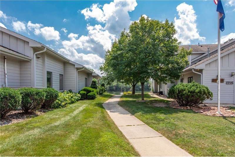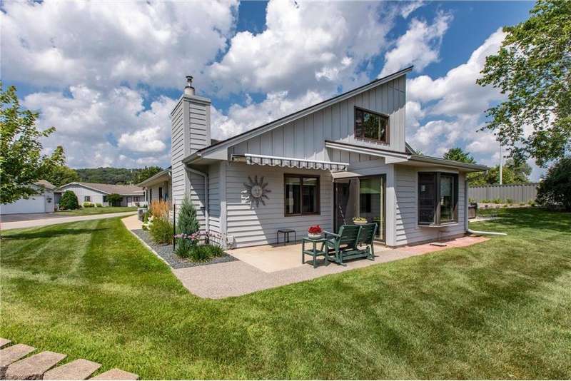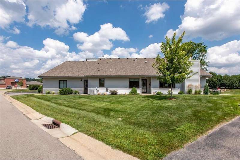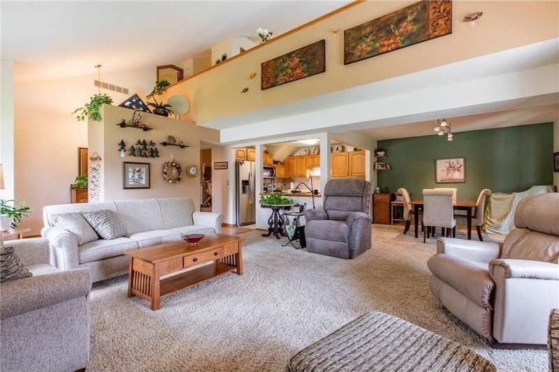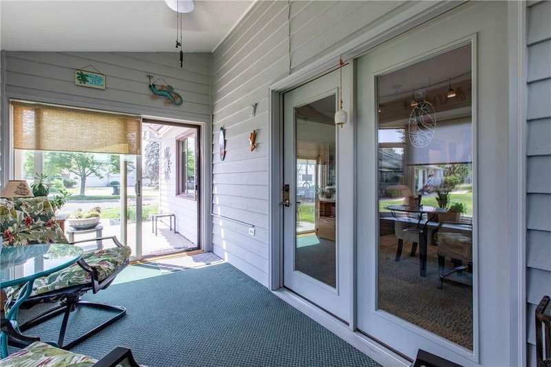 Welcome to this beautiful pre-inspected one level living townhome with full access to the lake, dock, fishing, and private walking paths. Built handicap accessible with 3ft doorways. Main floor master bedroom and bathroom with a roll-in shower and grab bars. Open kitchen, gas range, vaulted ceilings, gas fireplace with stacked rock surround, main floor office/den. Main floor laundry. Spacious upper-level loft bedroom with its own ¾ bath, extra closet space and solar lighting. Enjoy the views from your sunroom or walkout to your patio with an electric awning. The garage has a wall organizer and plenty of extra room for a future workbench. Pull down attic access. Shingles were replaced in 2022.