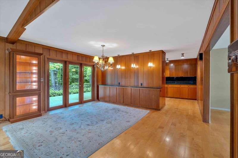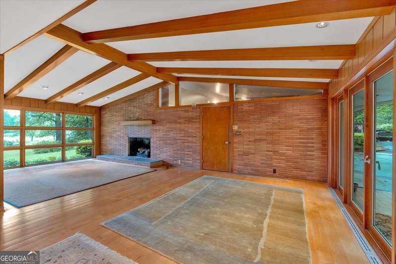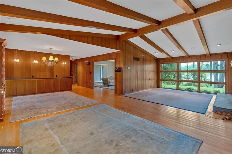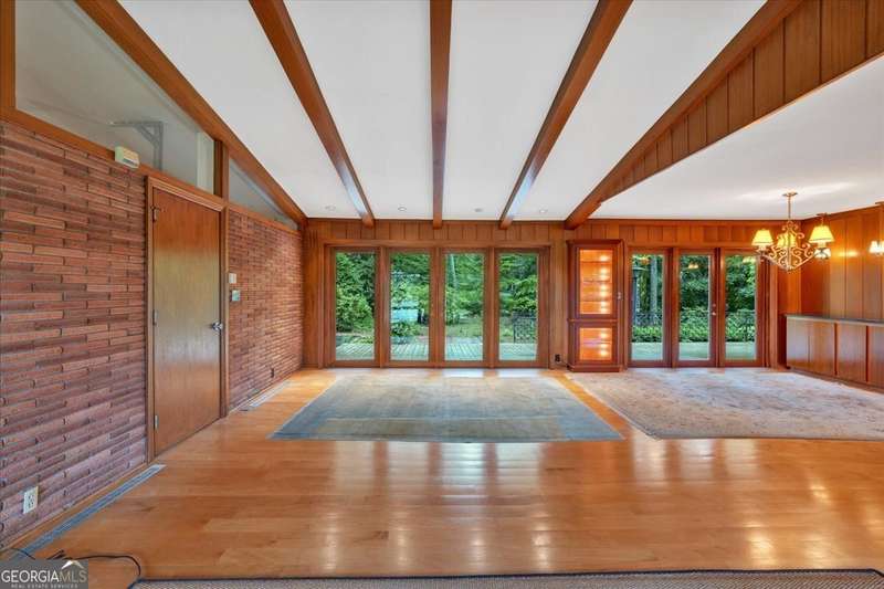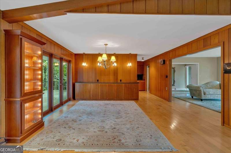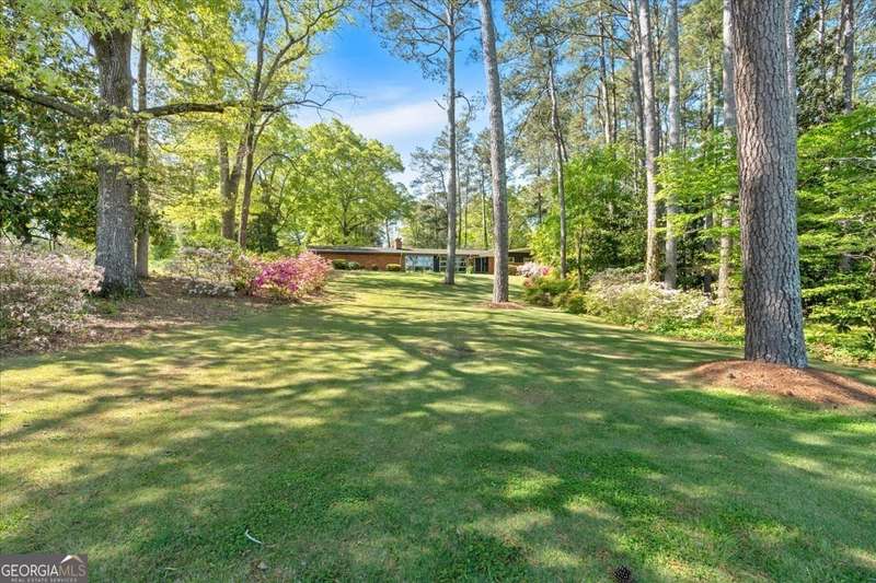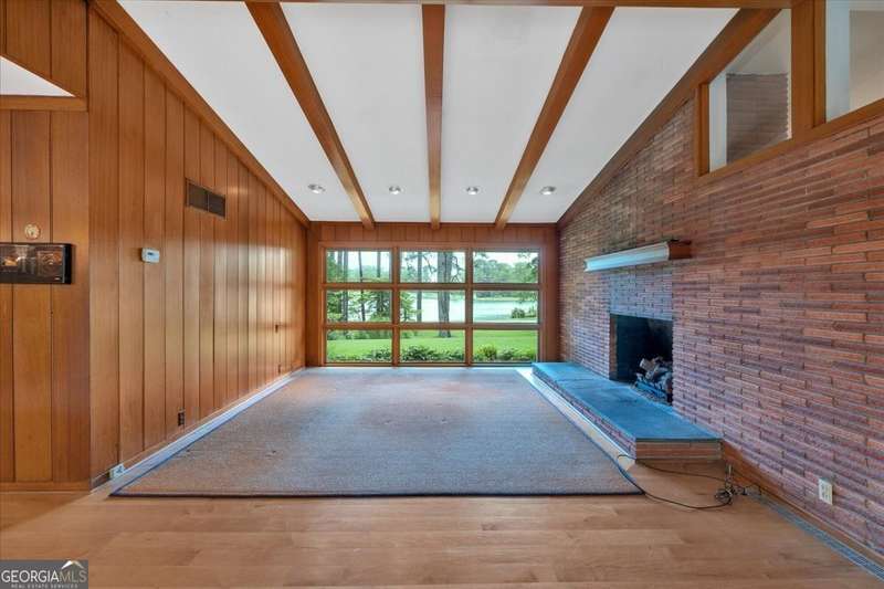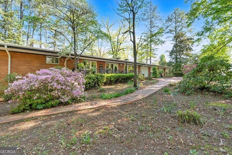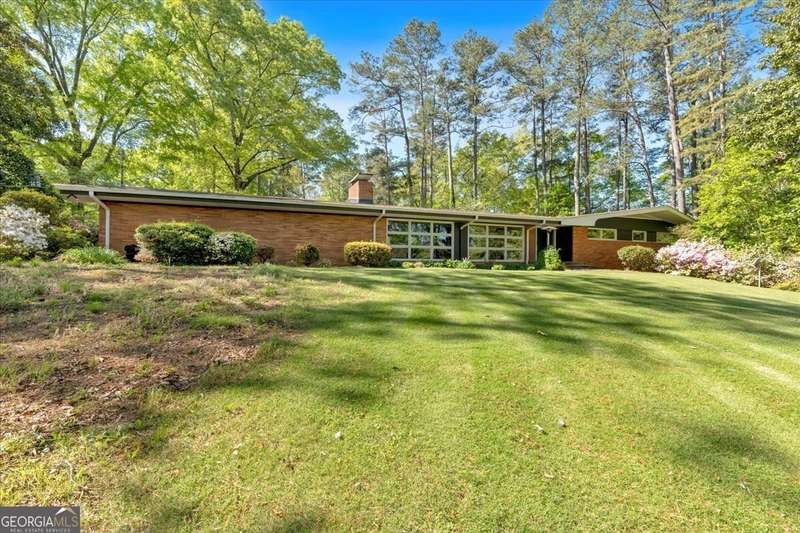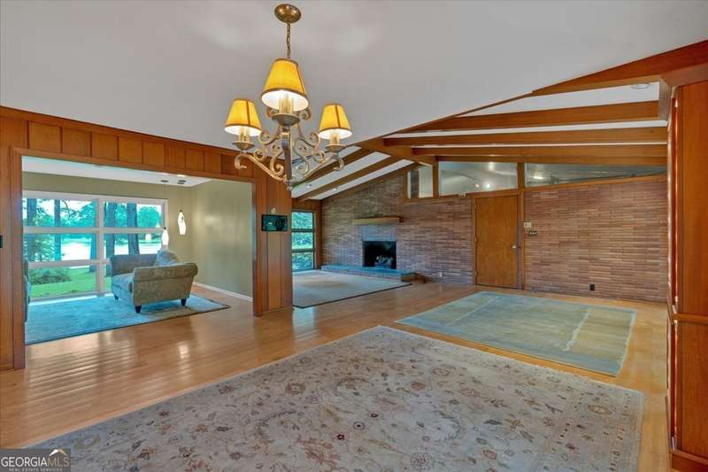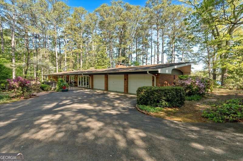 If you are looking for a "mid century" home, this one will check off all the boxes. With only two loving owners, this beautiful home was built in the late 1950's to a higher standard than most at that time or even now. Much of the home is original, you walk in with the same feelings the first owners felt back in the day. Entering in from the garage to the great room is a beamed ceiling, fire place, and a windowed wall overlooking a picture perfect lawn to Springdale Lake. Open living room and dining room design make you want to be entertaining year round. Kitchen with door to patio will mean steaks on the grill all year. Two large bedrooms on the front of the house are separated with a Jack and Jill bath. Huge primary bedroom on back side of the home with private bath has large walk in closet with laundry shoot. Finished basement has large bedroom, great room, and full bathroom. With it's own private entrance, it would make a perfect in-law suite. Beautiful landscaping all over the yard with a large building to store lawn equipment. Very close to shopping but a sense of privacy like being miles away. With this home comes the ability to join a private lake club to use Springdale lake for fishing.