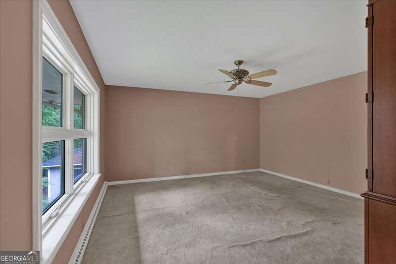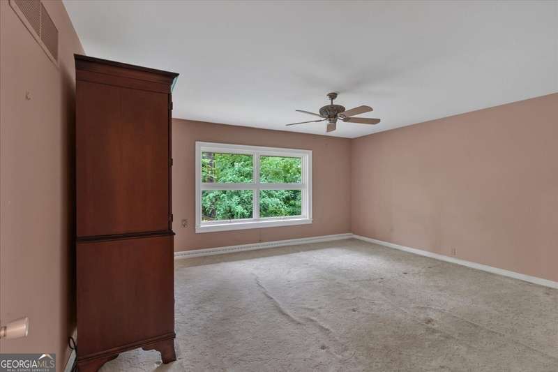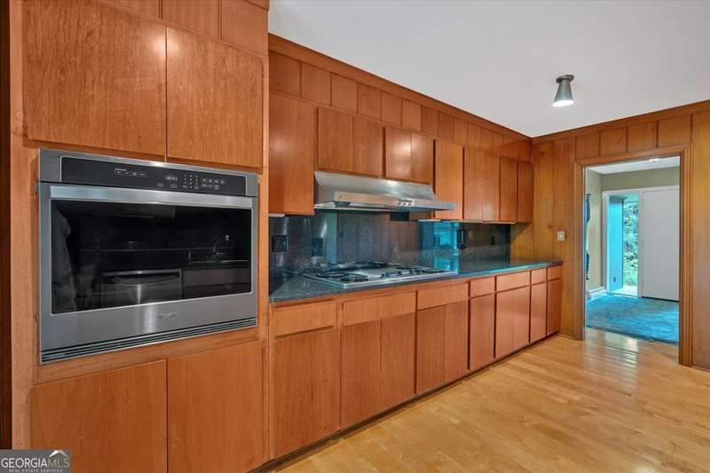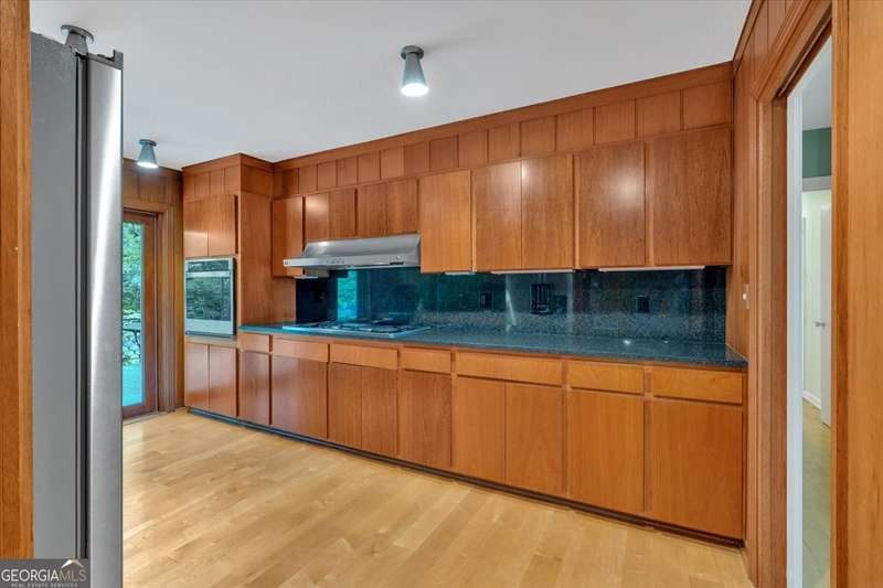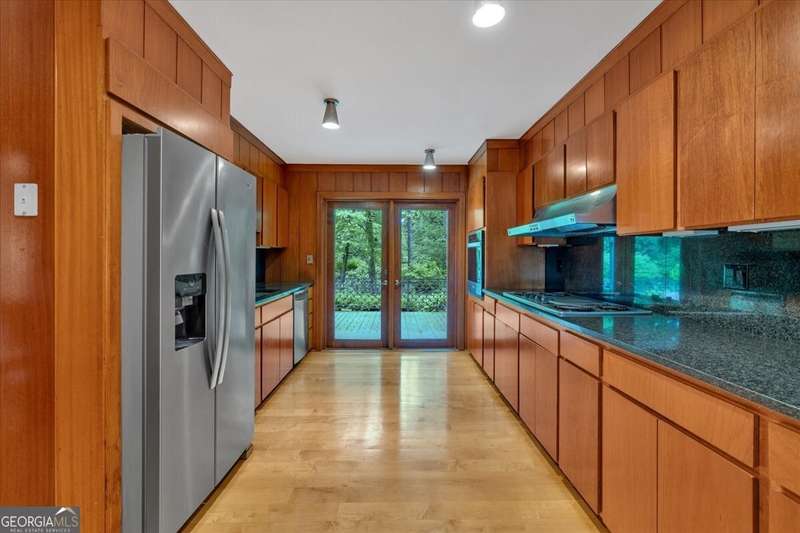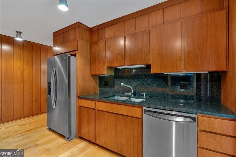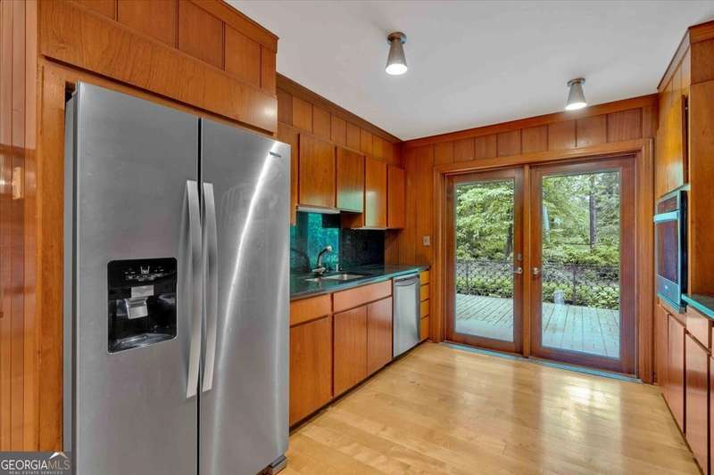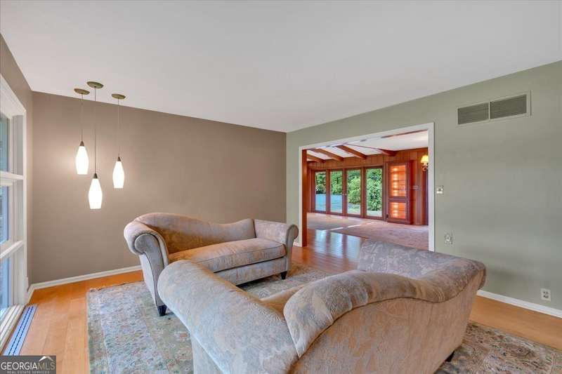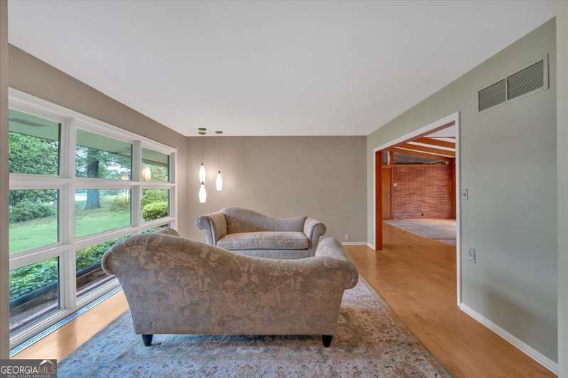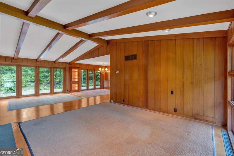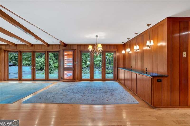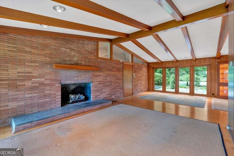 If you are looking for a "mid century" home, this one will check off all the boxes. With only two loving owners, this beautiful home was built in the late 1950's to a higher standard than most at that time or even now. Much of the home is original, you walk in with the same feelings the first owners felt back in the day. Entering in from the garage to the great room is a beamed ceiling, fire place, and a windowed wall overlooking a picture perfect lawn to Springdale Lake. Open living room and dining room design make you want to be entertaining year round. Kitchen with door to patio will mean steaks on the grill all year. Two large bedrooms on the front of the house are separated with a Jack and Jill bath. Huge primary bedroom on back side of the home with private bath has large walk in closet with laundry shoot. Finished basement has large bedroom, great room, and full bathroom. With it's own private entrance, it would make a perfect in-law suite. Beautiful landscaping all over the yard with a large building to store lawn equipment. Very close to shopping but a sense of privacy like being miles away. With this home comes the ability to join a private lake club to use Springdale lake for fishing.